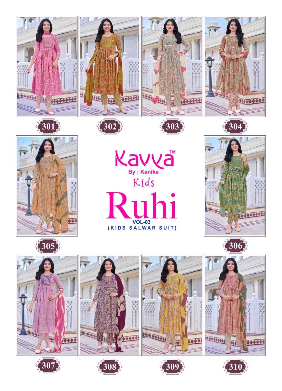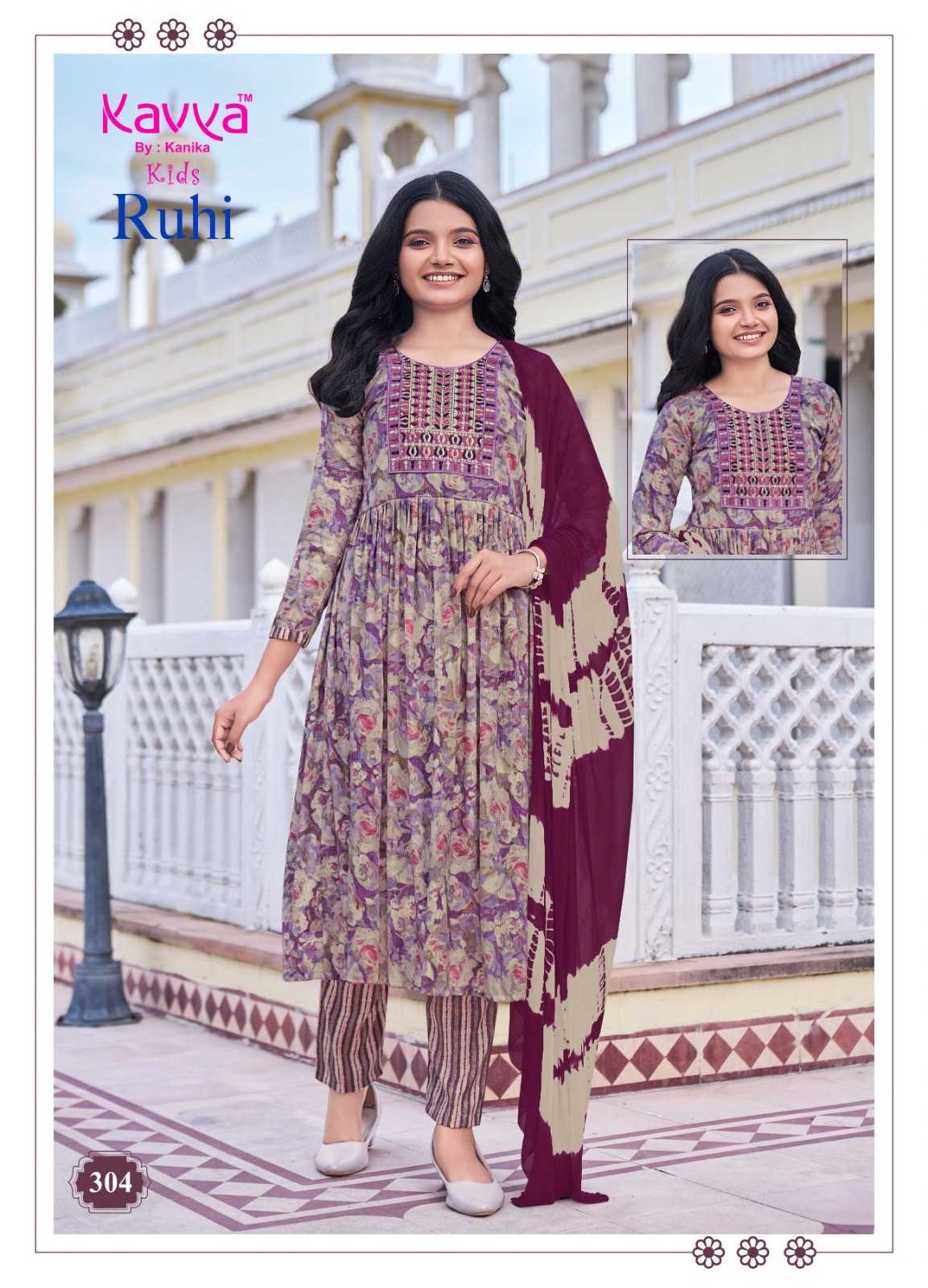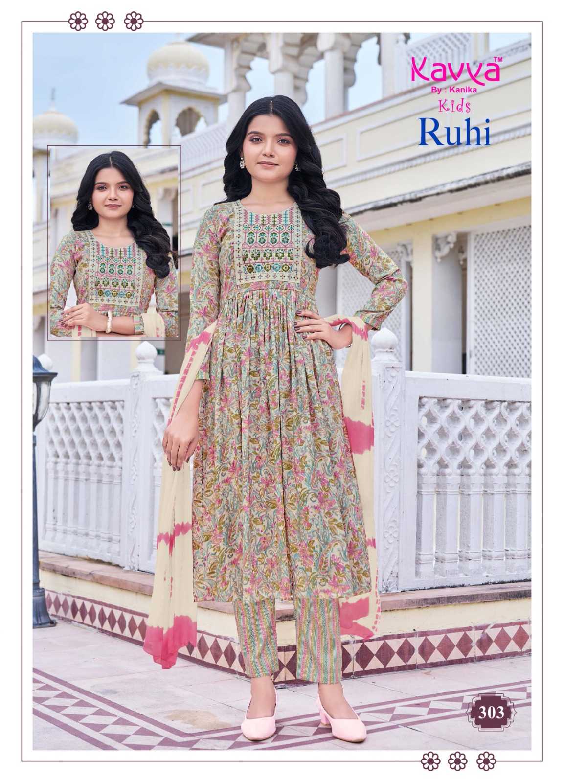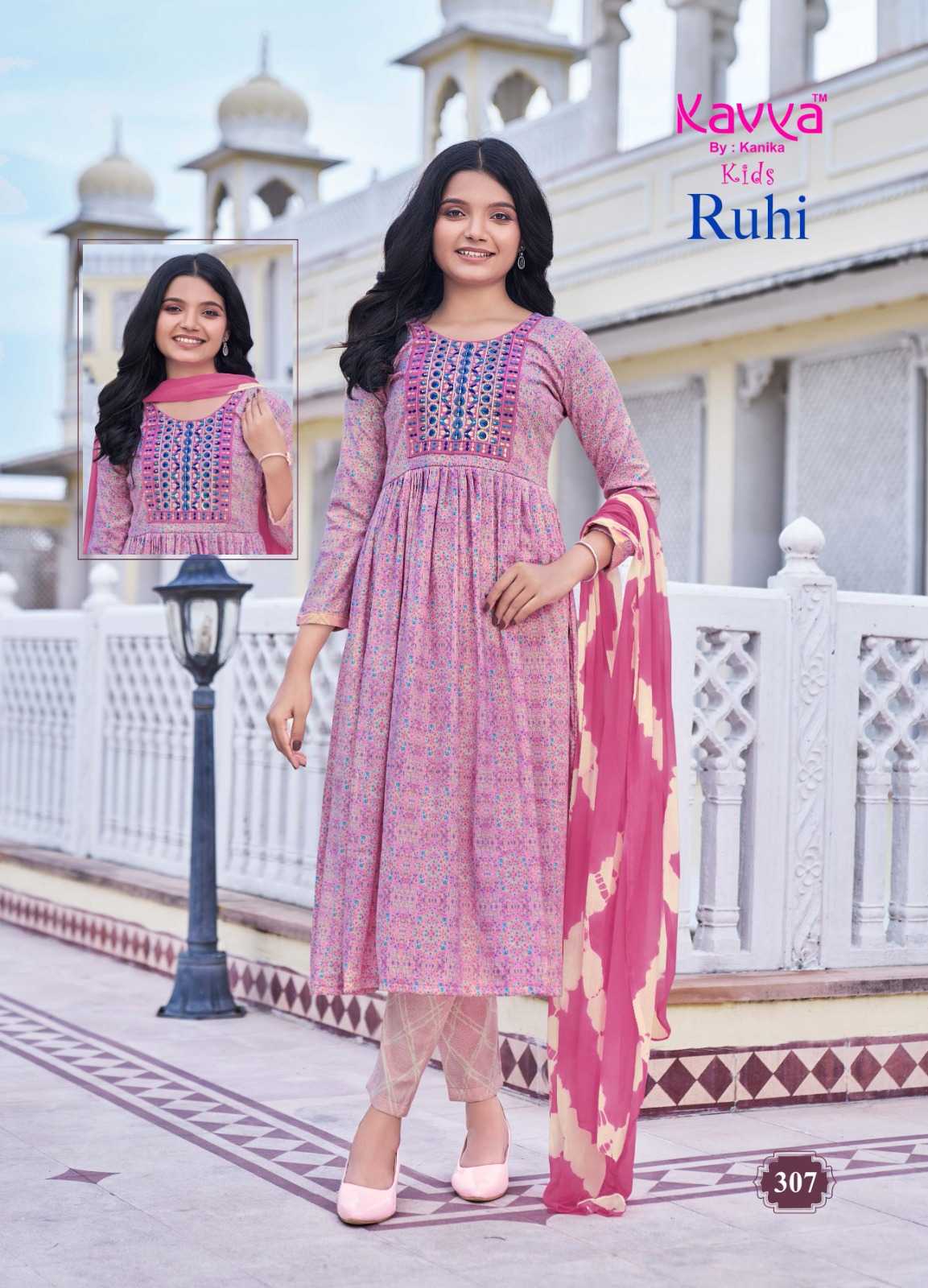 kavya ruhi vol 3 capsule foil print full stitch umbrella cut casual kids salwar kameez