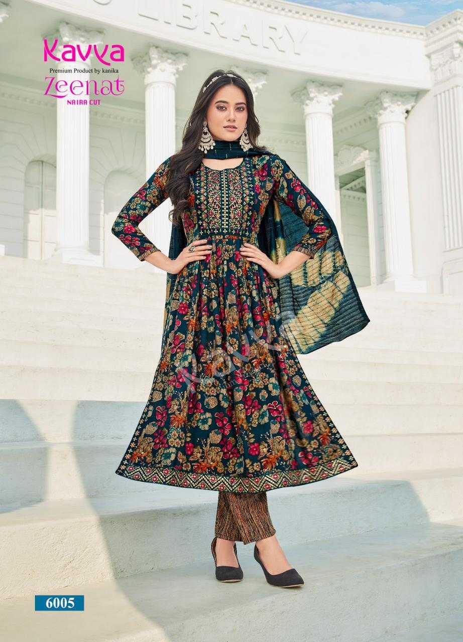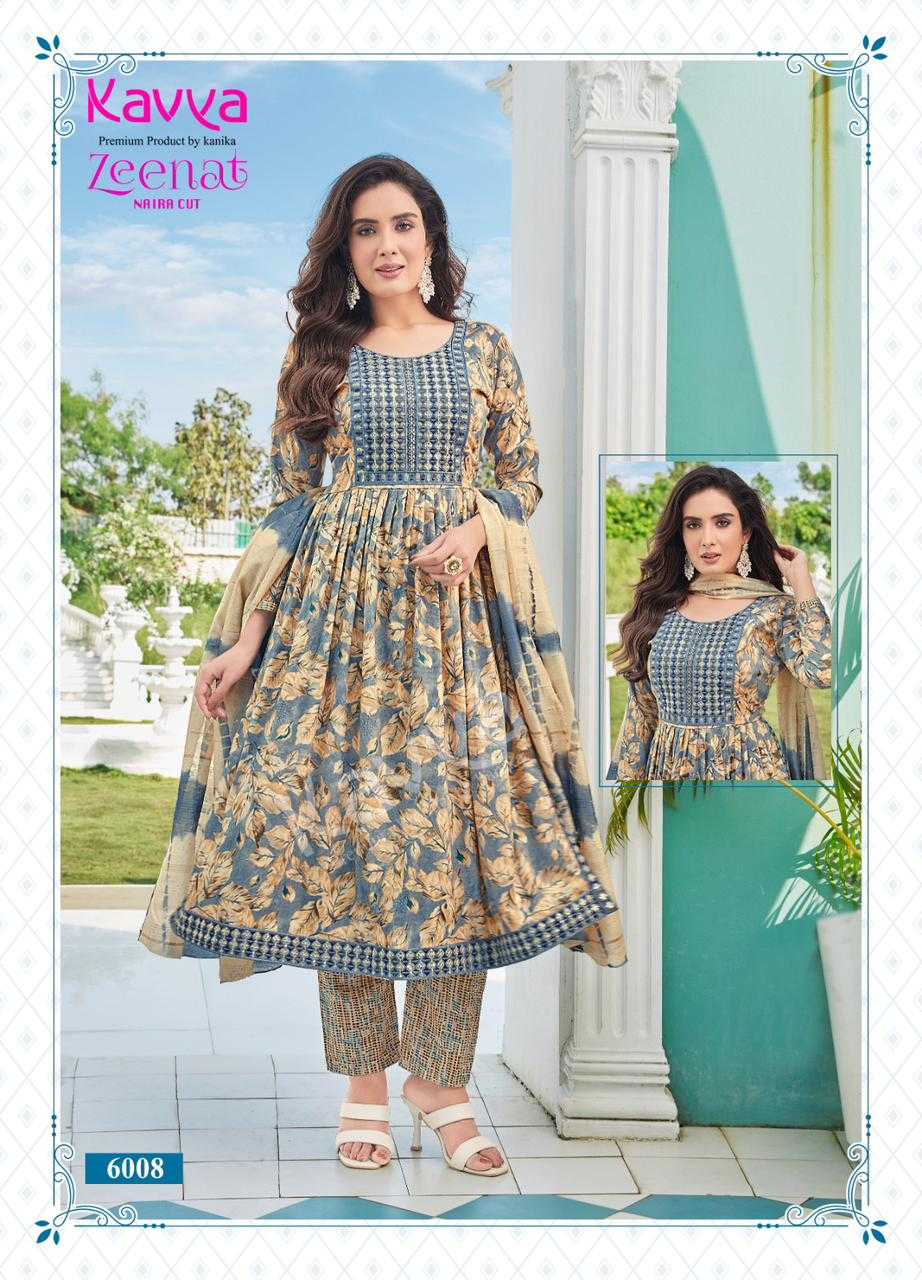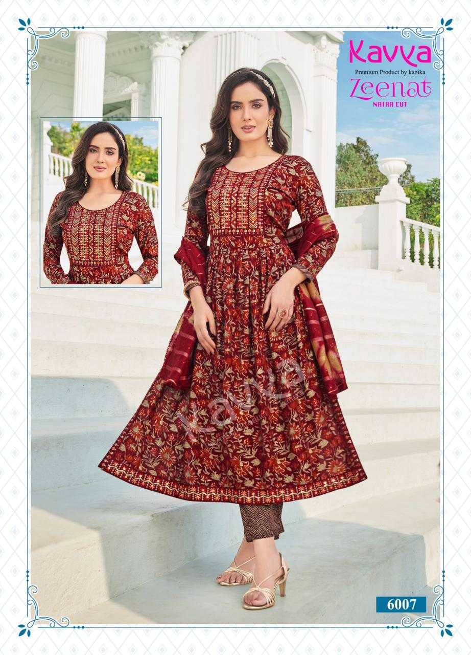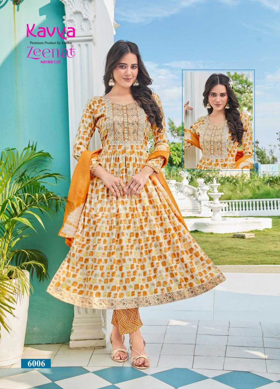 kavya zeenat vol 6 readymade fancy nayra cut kurti bottom with chanderi dupatta