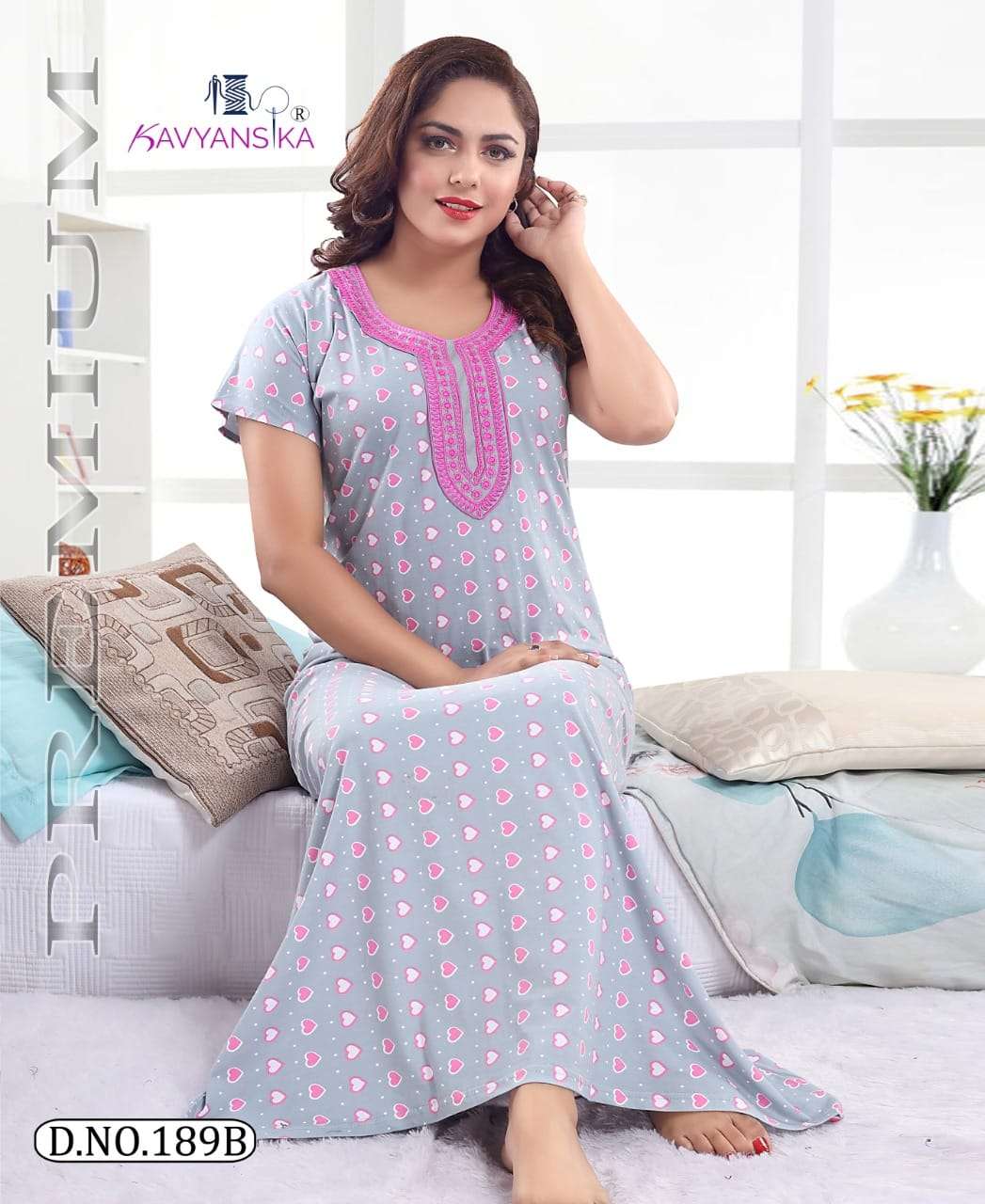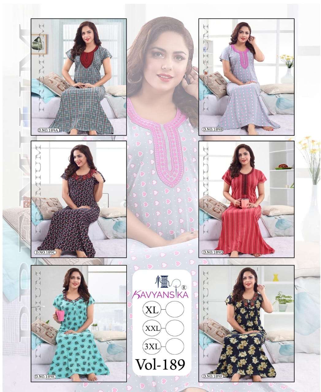 Catalog Name: Long Nighty 189 Brand name: Kavyansika Type: Women Long Nighty Fabric Detail: Cotton Hosiery Size: XL XXL 3XL Rate:Â XL 400 XXL 420 3XL 450 No of pcs: 6 Gst: 5 % Set to set |