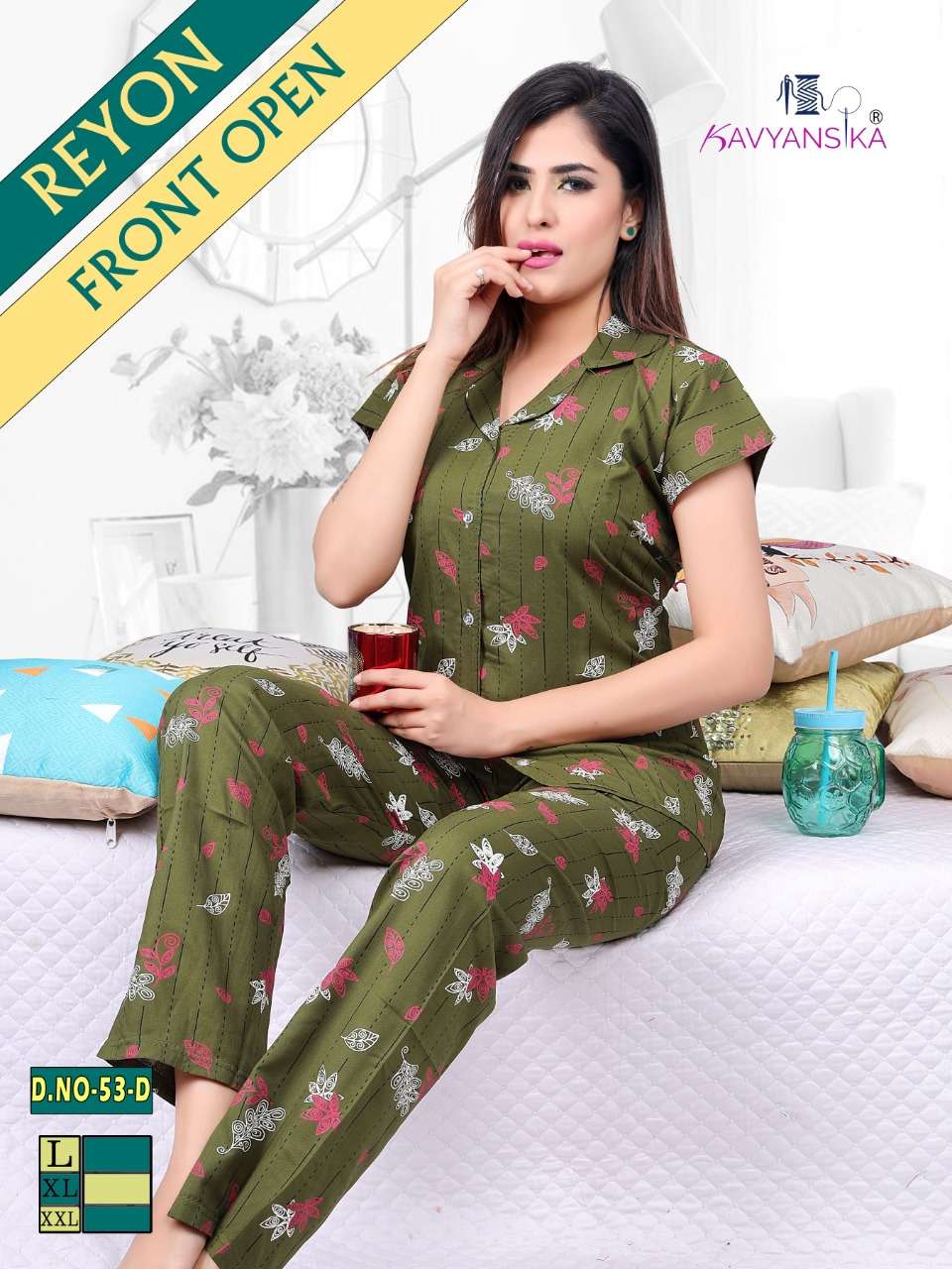 kavyansika collar night suit vol 53 rayon shirt night suit for women