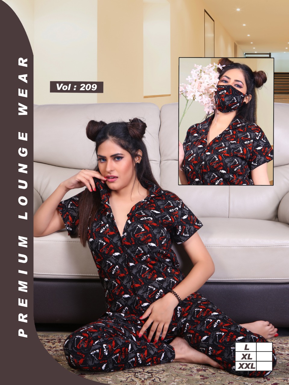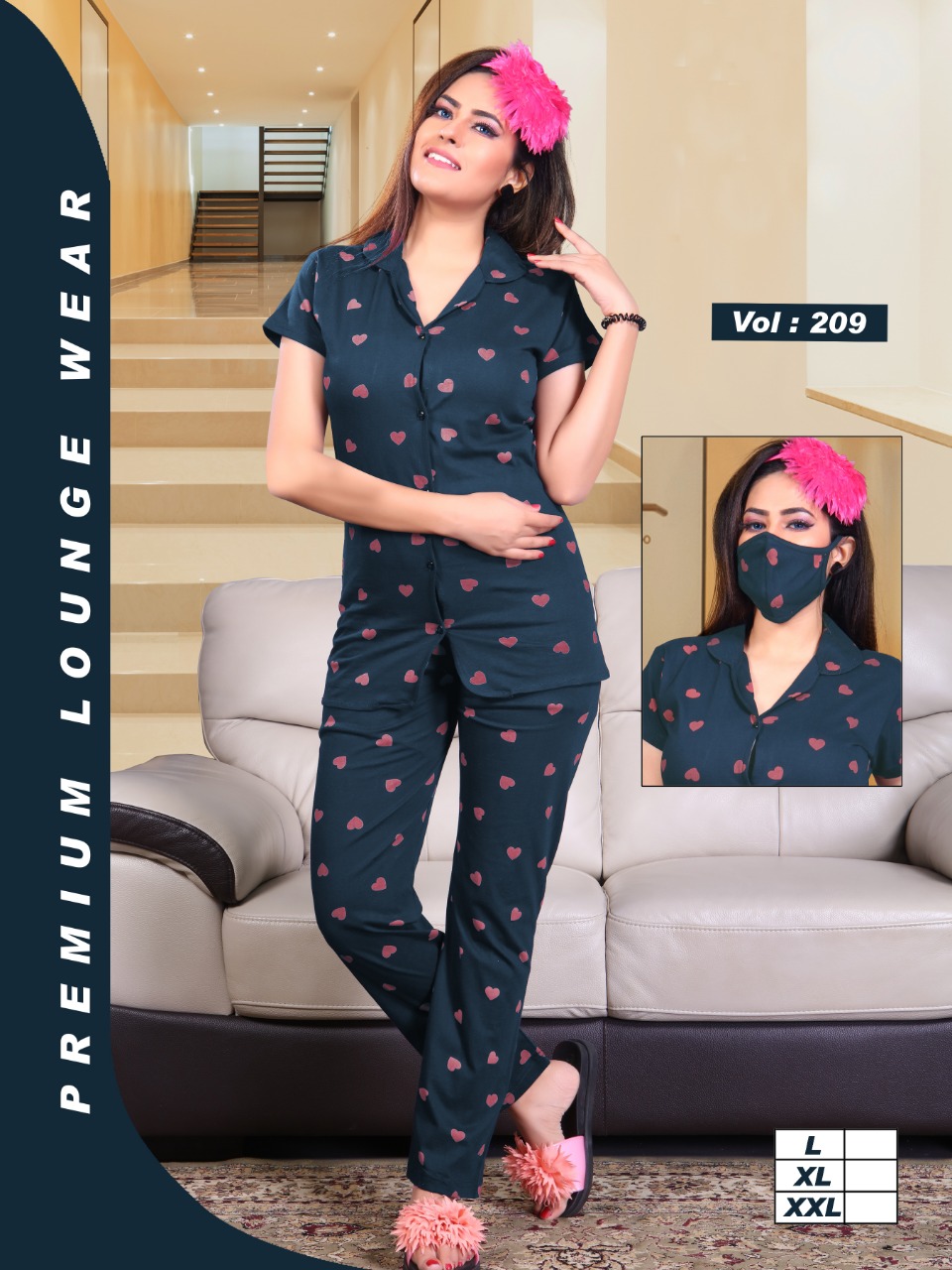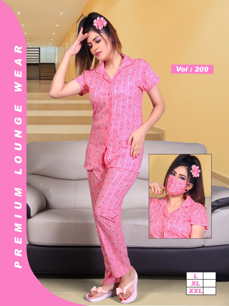 Kavyansika Present Collar Mask Vol 209 Premium Hosiery Women Night Suits With Mask