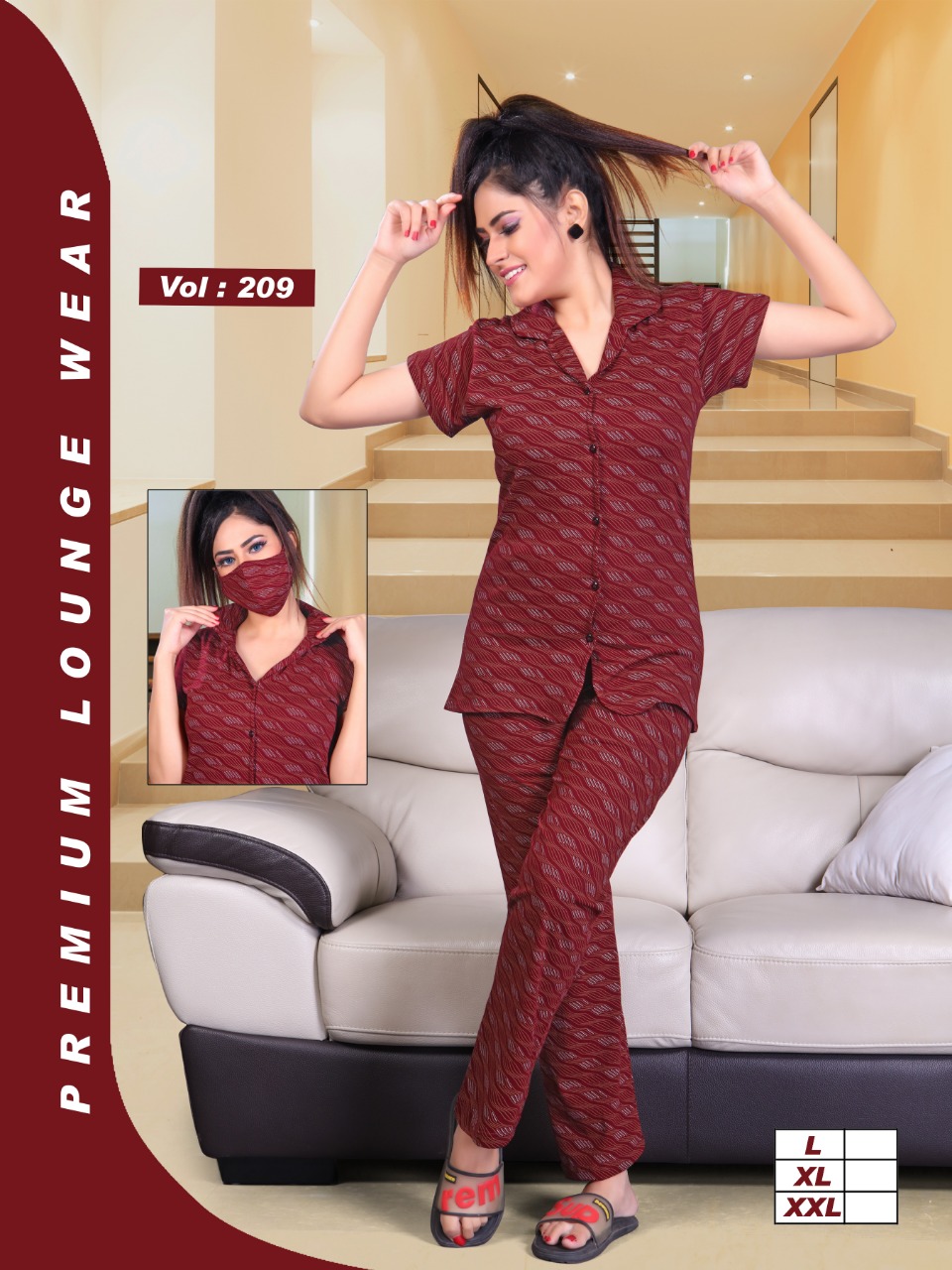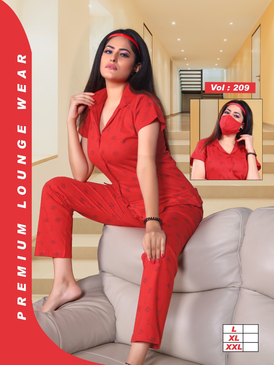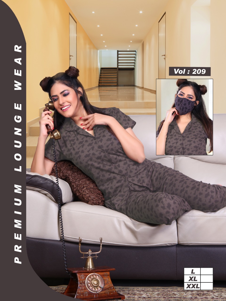 Kavyansika Present Collar Mask Vol 209 Premium Hosiery Women Night Suits With Mask