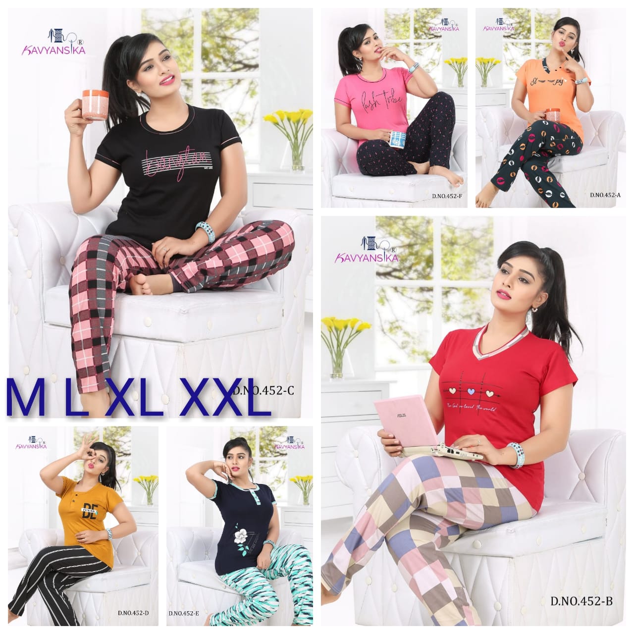 Premium Night suit Collection♦ Kavyansika Night suit Vol 452 Premium hosiery fabric NIGHT suit SIZES IN THIS VOLUME: M L XL XXL 6 COLOUR SET RATES M 360 L 375 XL 390 XXL 405 Set to set . GST 5 Percent Extra BOOKING STARTED. DISPATCH IN 4 DAYS |