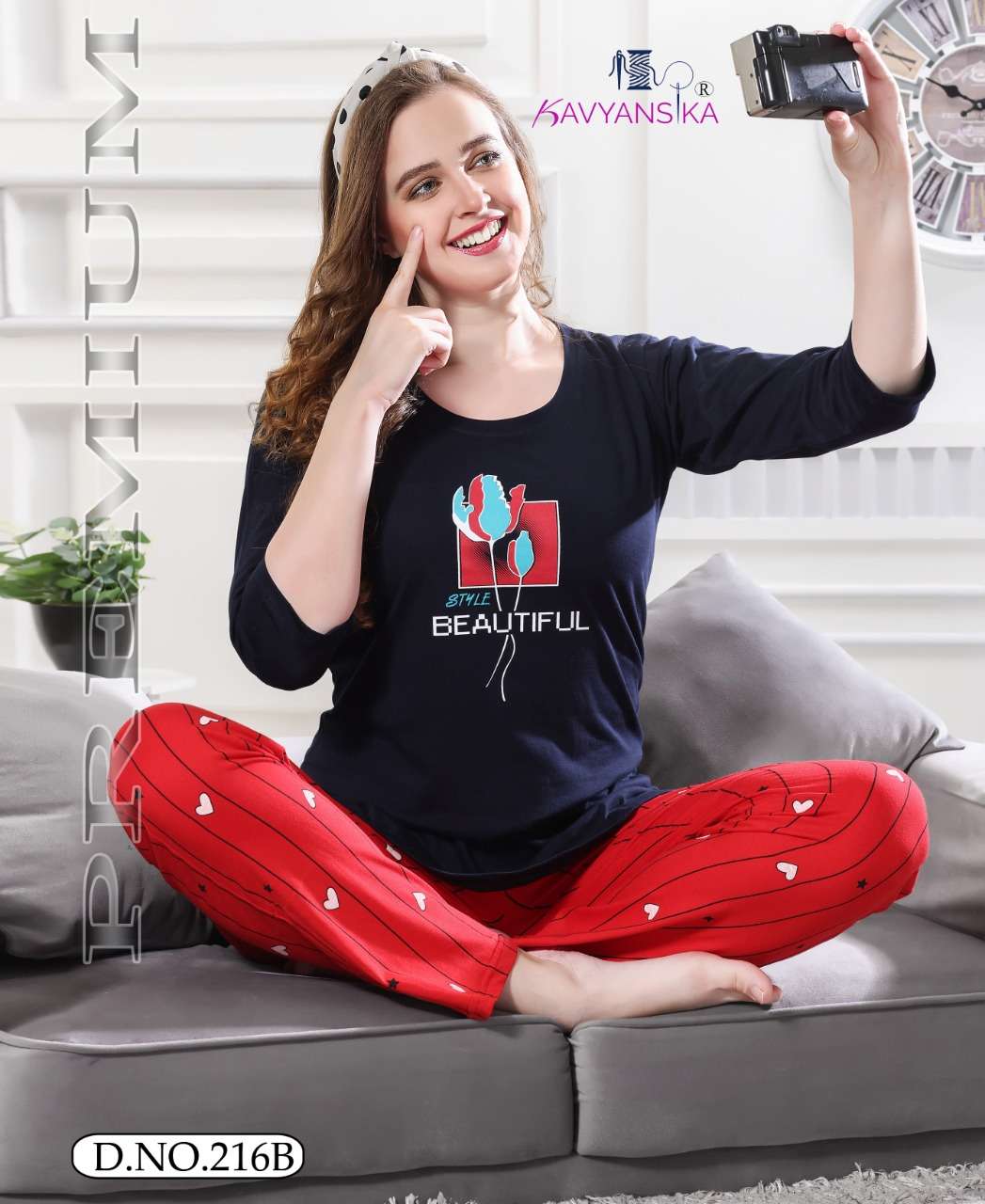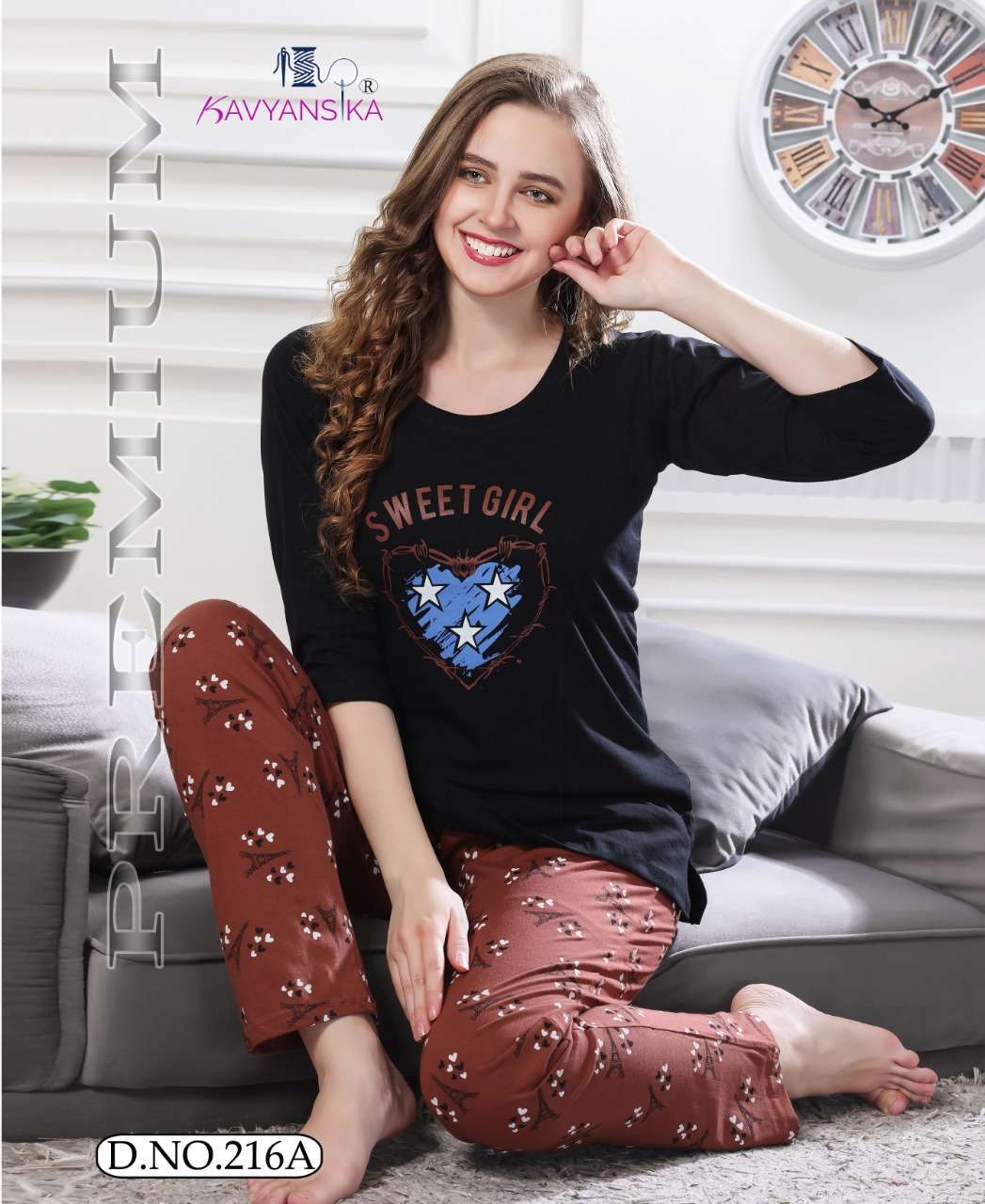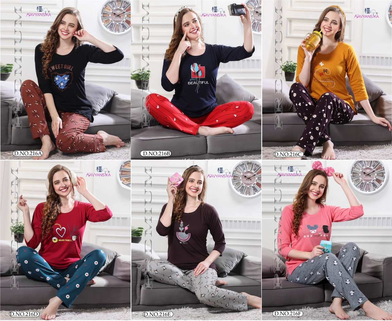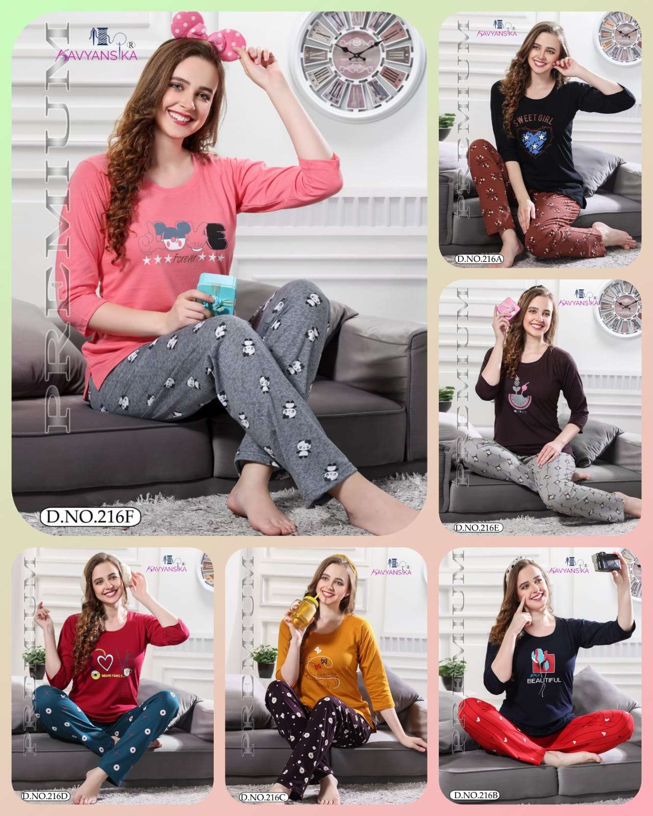 Catalog Name: Winter vol 216 Brand name: Kavyansika Type: Women Full sleeve Night suit Fabric Detail: Cotton Hosiery Size: M L XL XXL 3XL Rate: No of pcs: 6 |