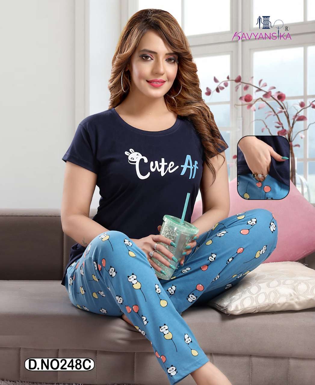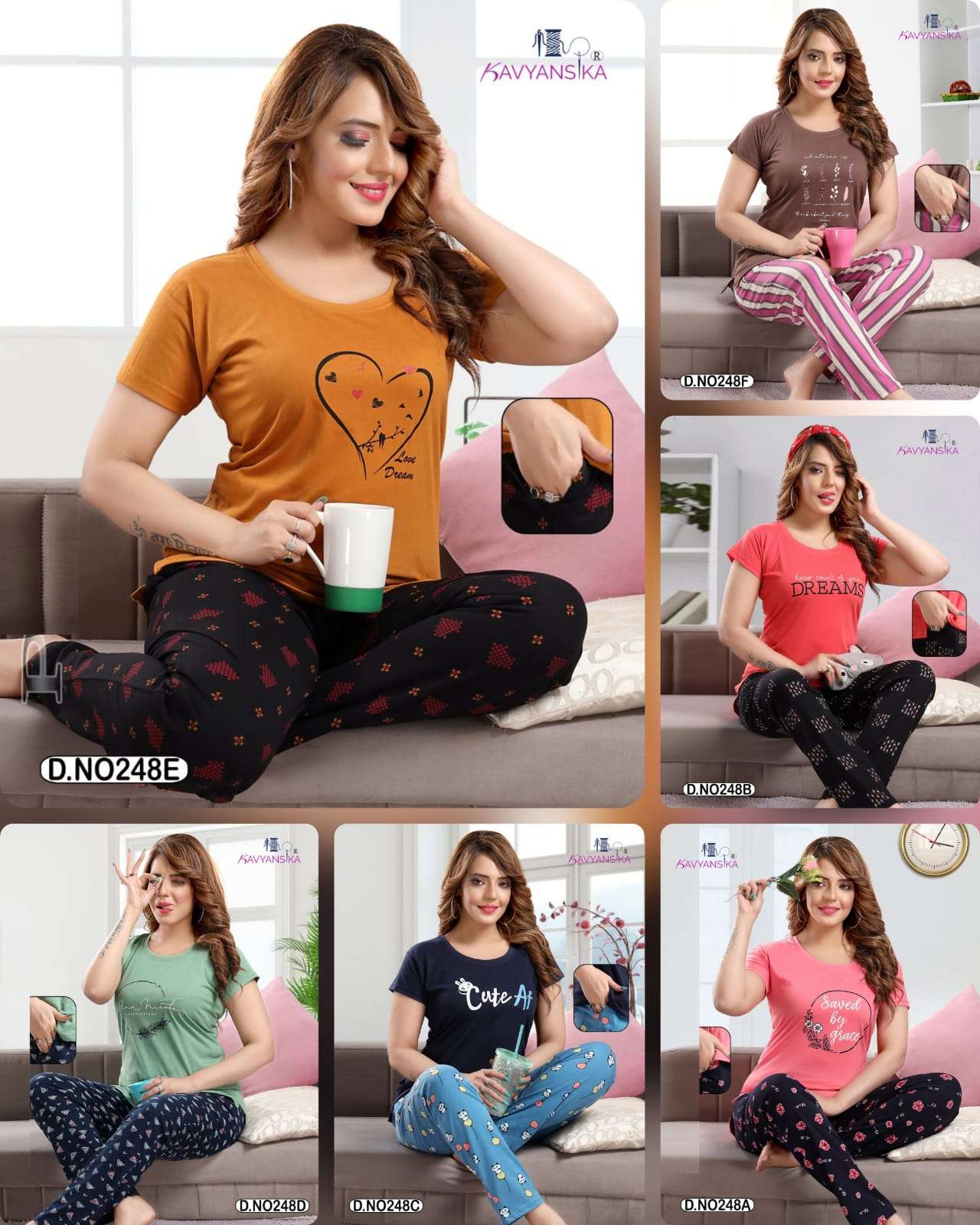 Catalog Name: Full pyjama vol 248 Type: Women Pyjama Night suit Fabric Detail: Cotton Hosiery Size: XXL 3XL 4XL Rate: No of pcs: 6 Gst: 5 % |