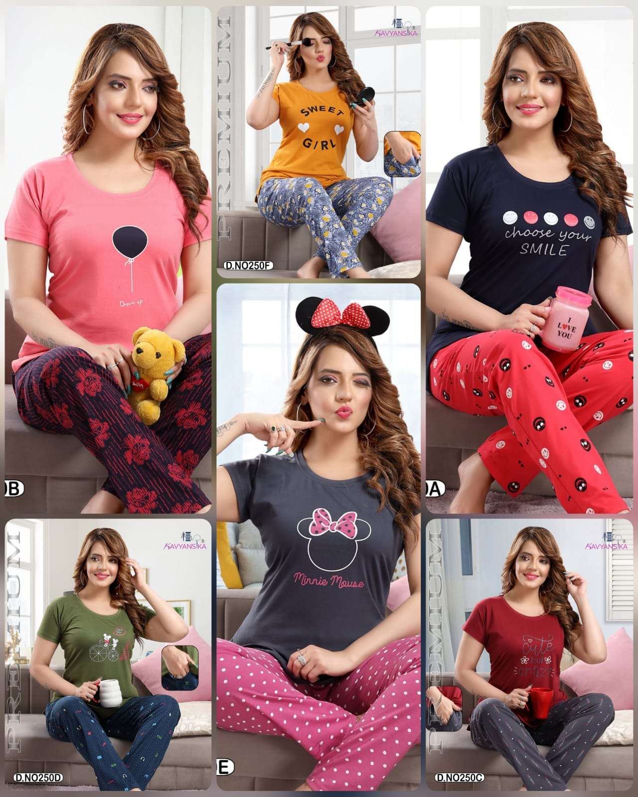 Catalog Name: Full pyjama vol 250 Type: Women Pyjama Night suit Fabric Detail: Cotton Hosiery Size: XXL 3XL 4XL Rate: No of pcs: 6 Gst: 5 % |