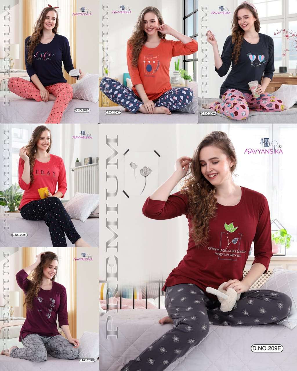 Catalog Name: Winter vol 209 Type: Women Full sleeve Night suit Fabric Detail: Cotton Hosiery Size: M L XL XXL Rate: No of pcs: 6 Gst: 5 % |