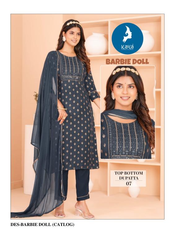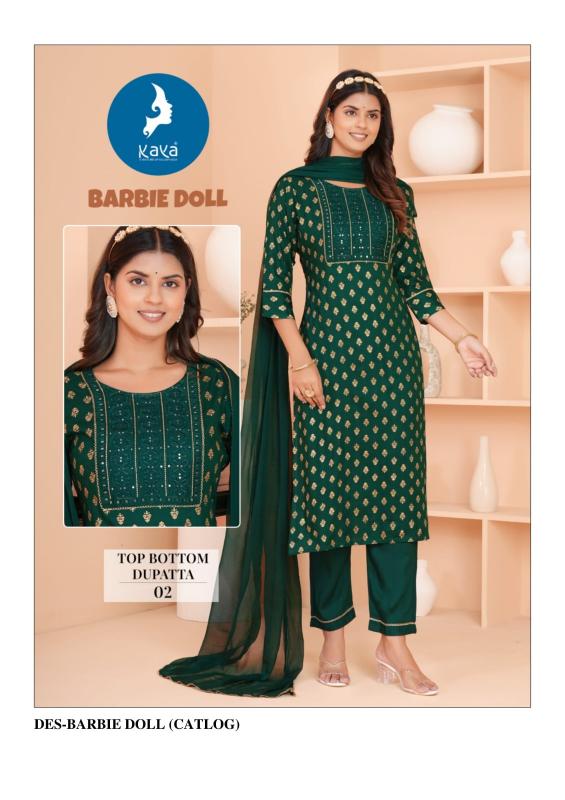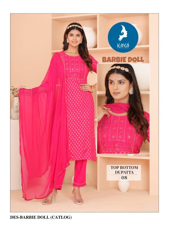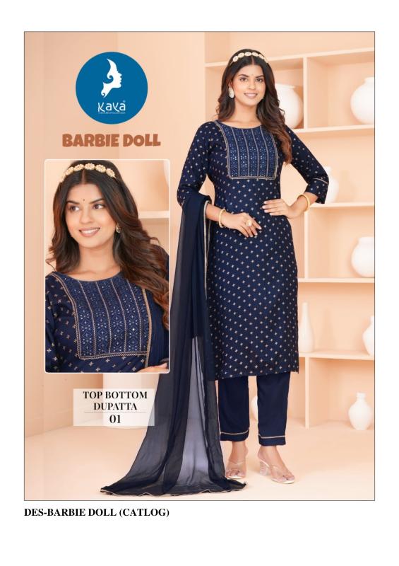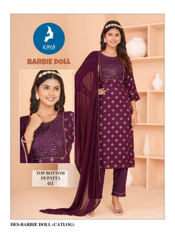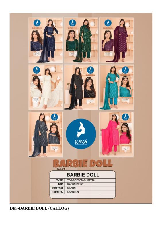 kaya barbie doll beautiful look rayon print readymade trendy suits