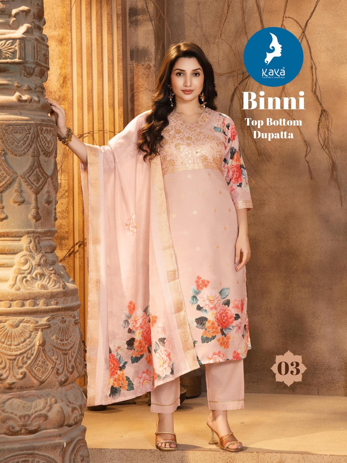 kaya binni pretty look full stitch chanderi jacquard big size 3pcs dress