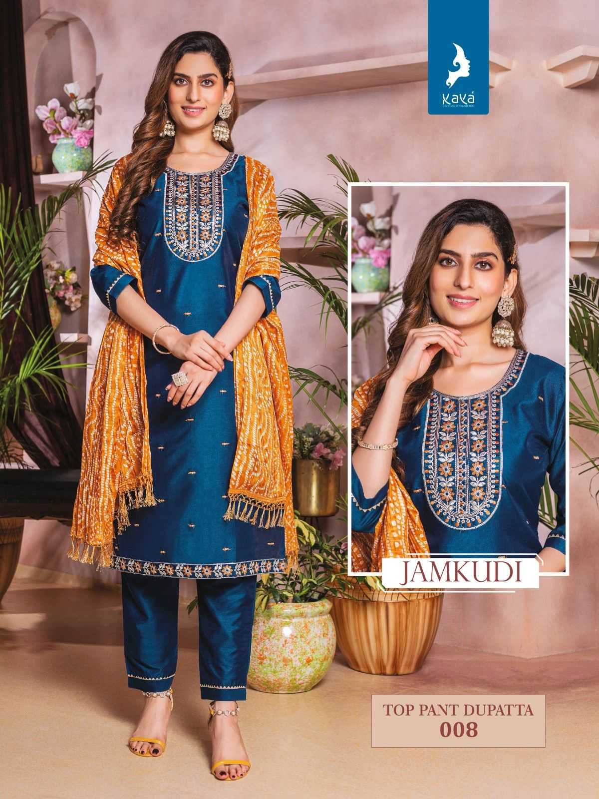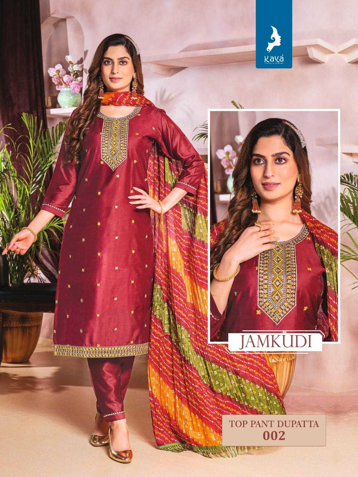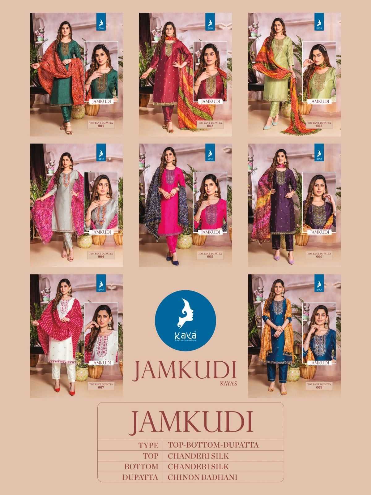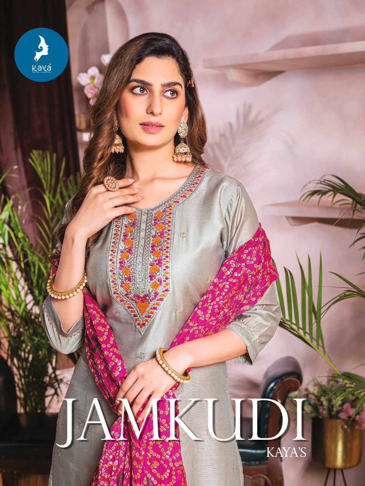 kaya jamkudi chanderi silk fully stitch stylish thread work suits online