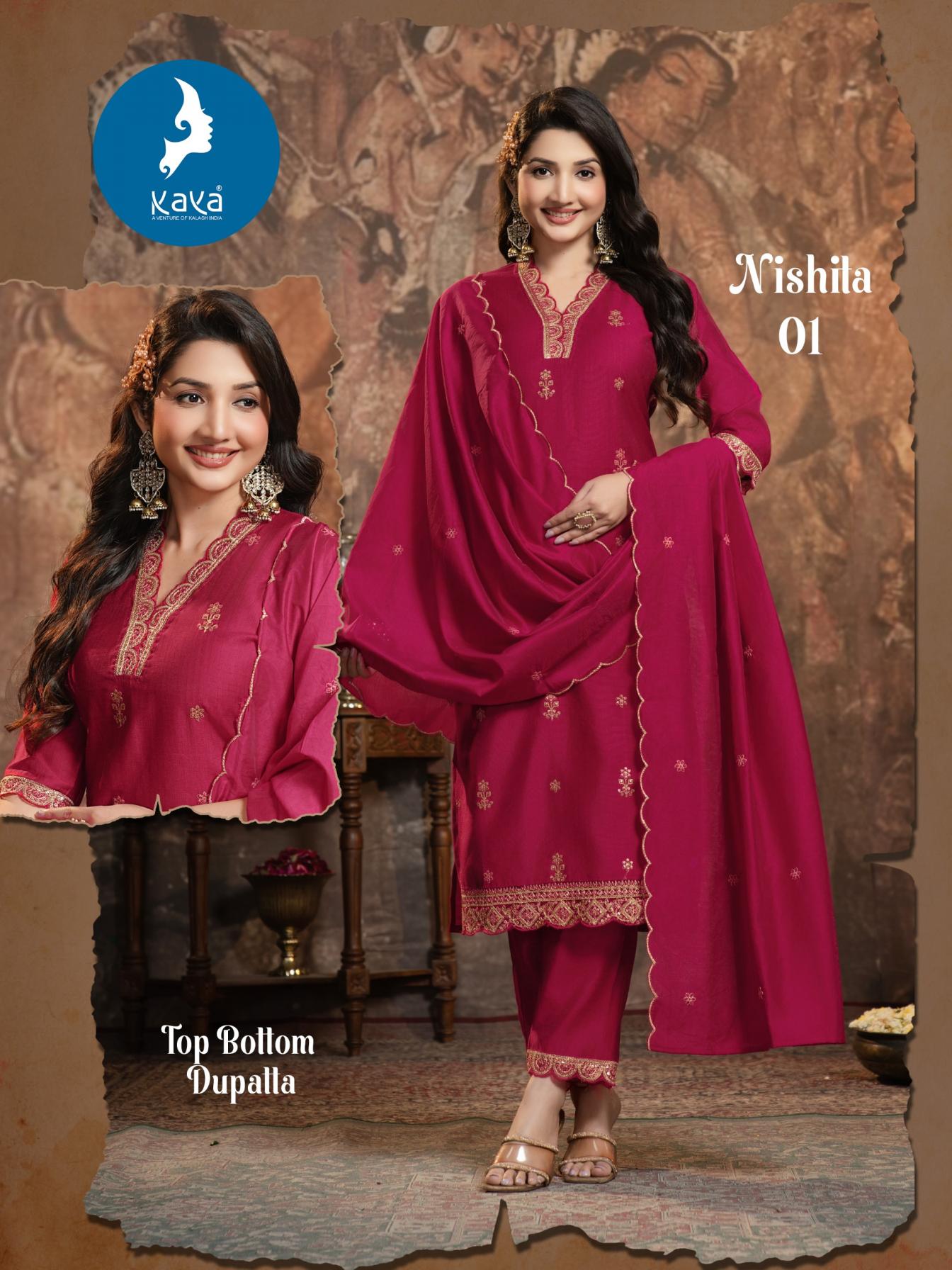 kaya launch nishita vertican fully stitch classic 3pcs dress