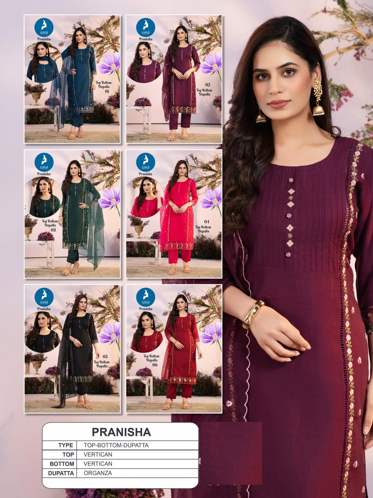 kaya pranisha vertican fully stitch unique 3pcs dress