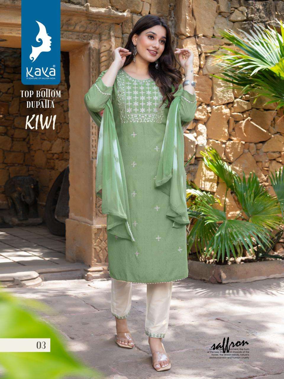 kaya present kiwi fancy 3pcs set best designs work kurti with pant and dupatta