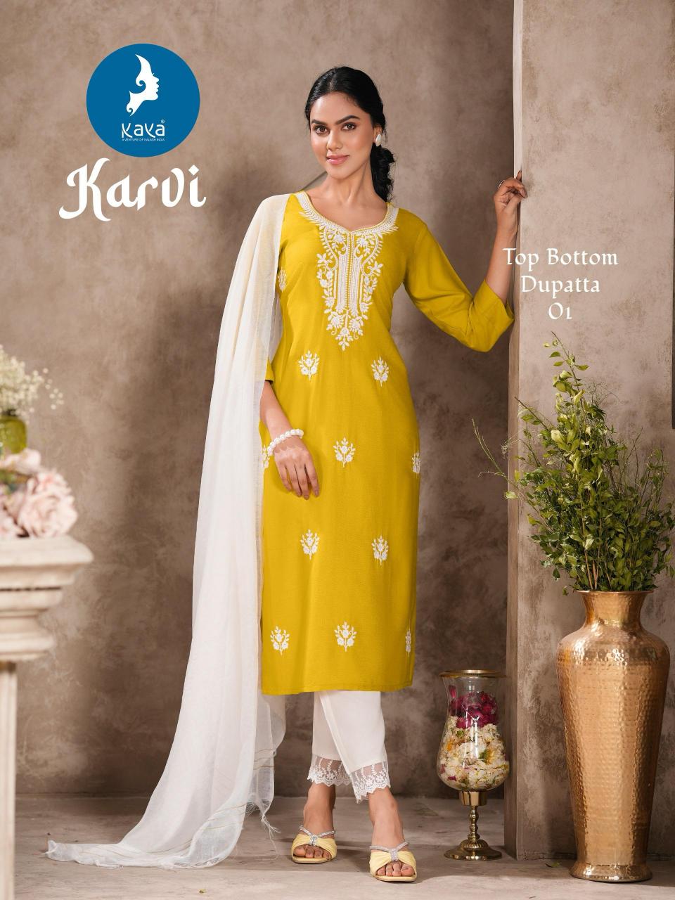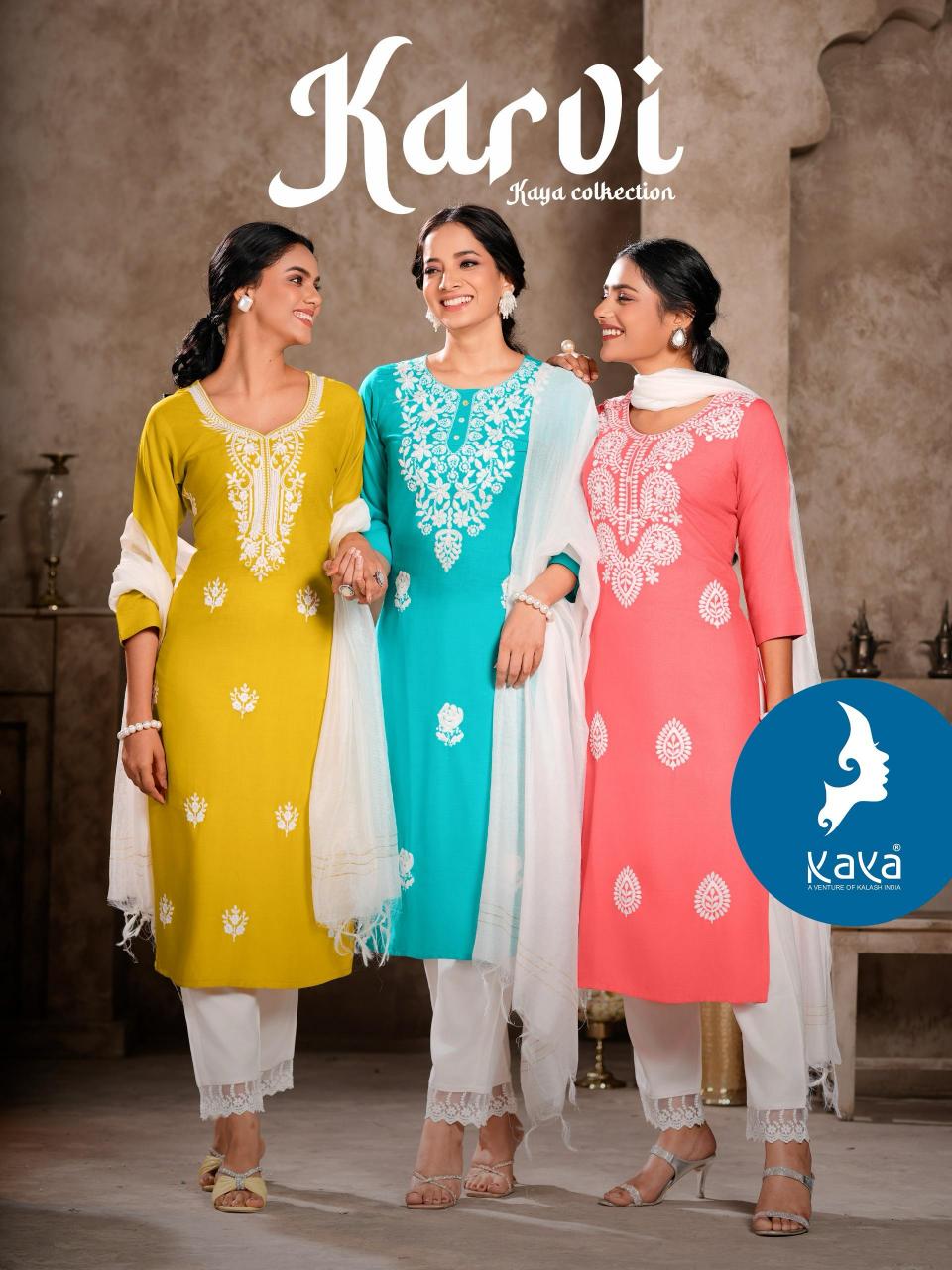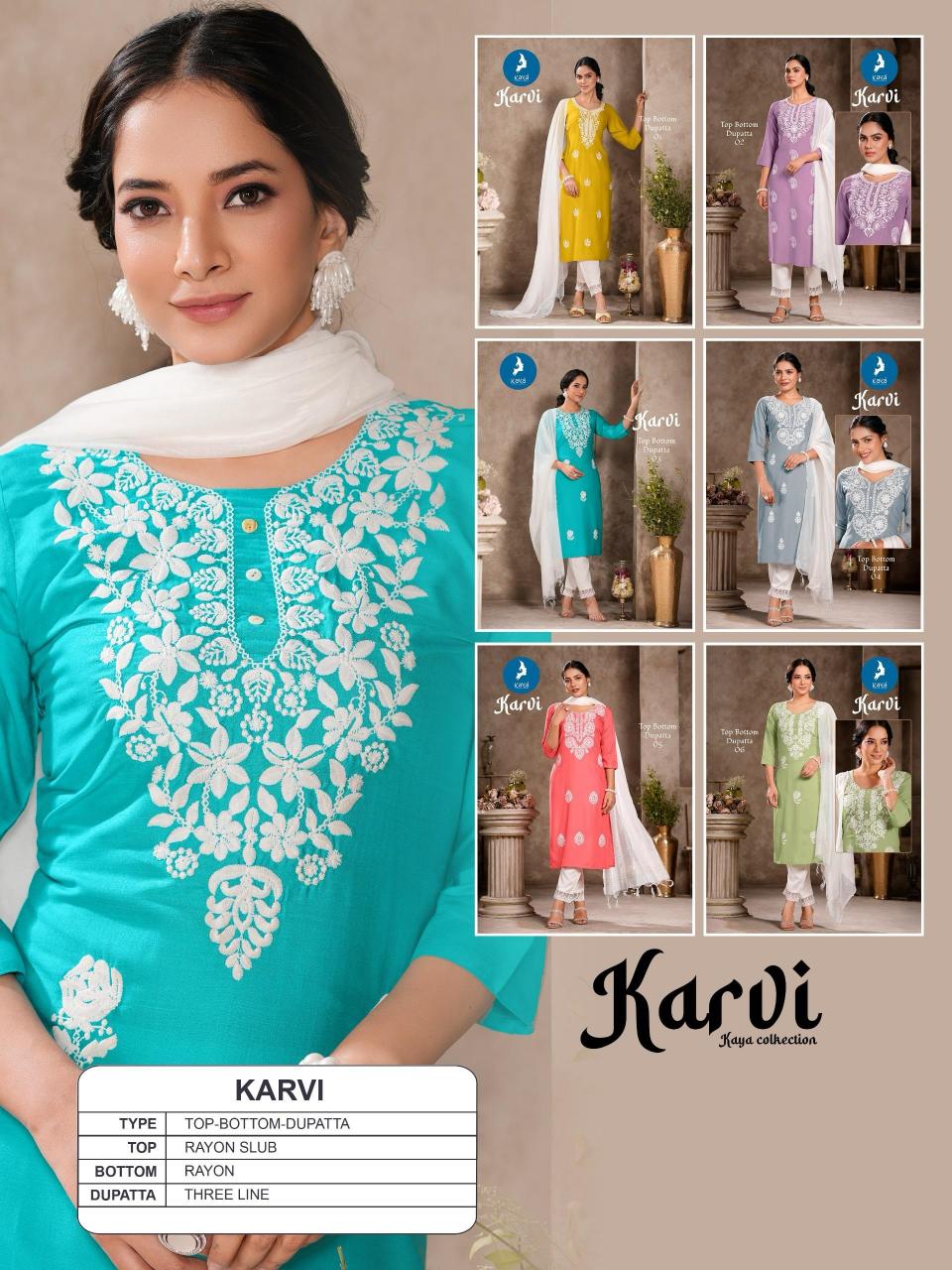 kaya presents karvi rayon readymade daily wear 3pcs dress