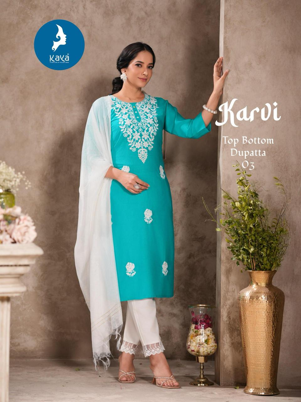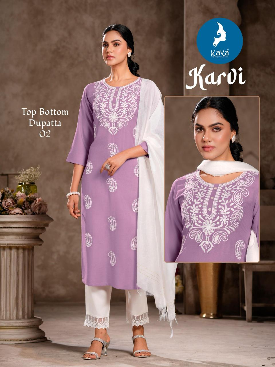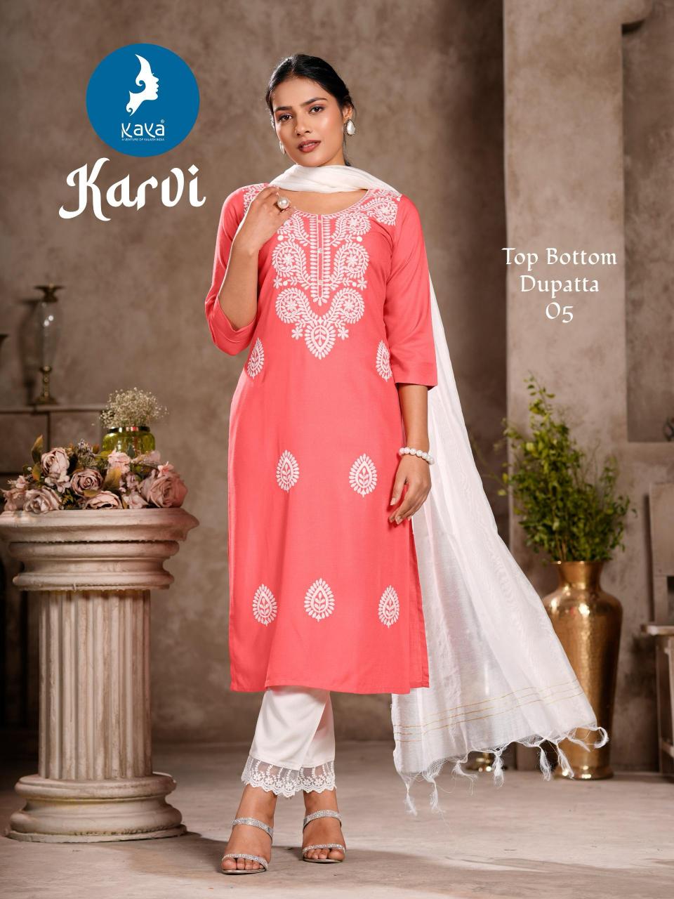 kaya presents karvi rayon readymade daily wear 3pcs dress