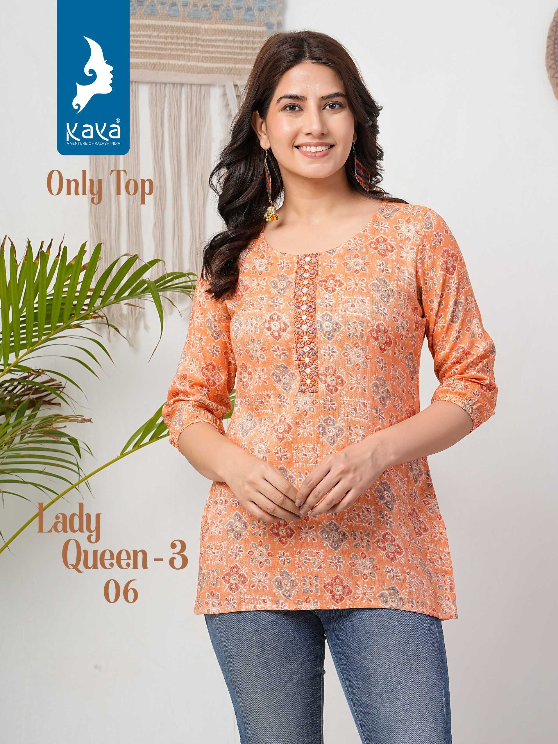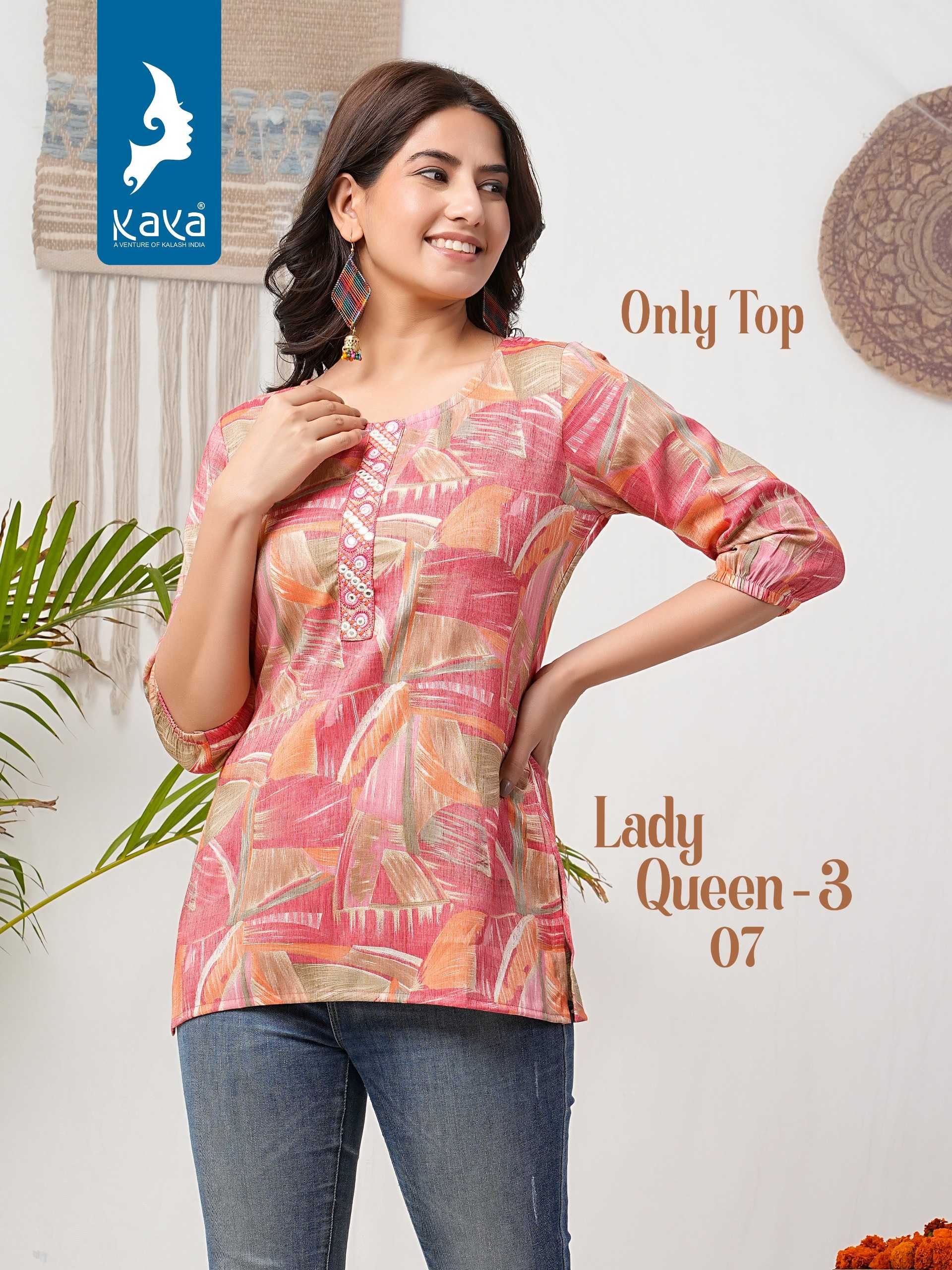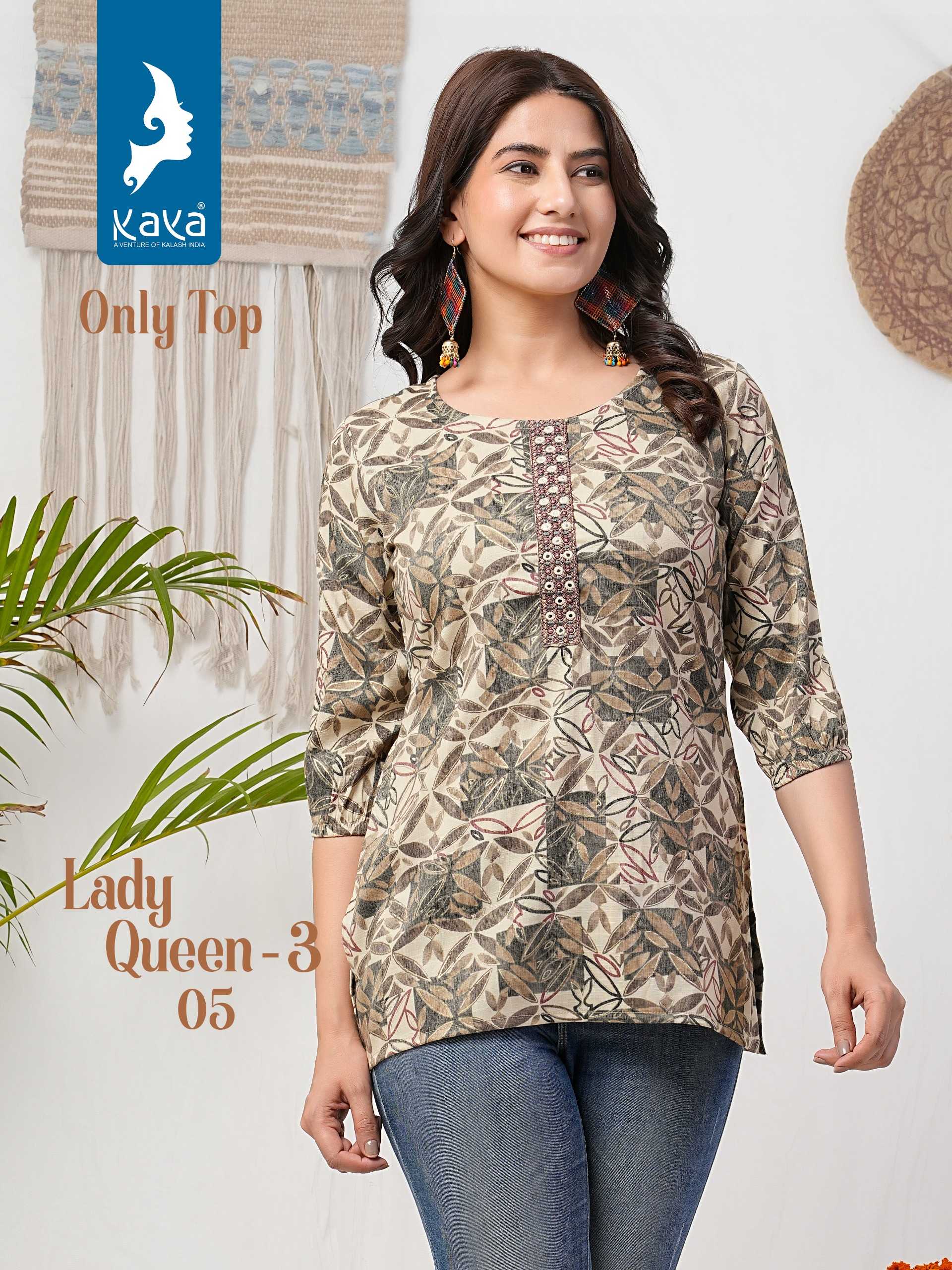 kaya presents lady queen 3 fancy regular use capsule print short kurti