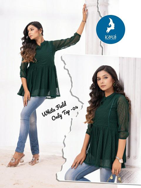 kaya white field readymade georgette butti girls short tops