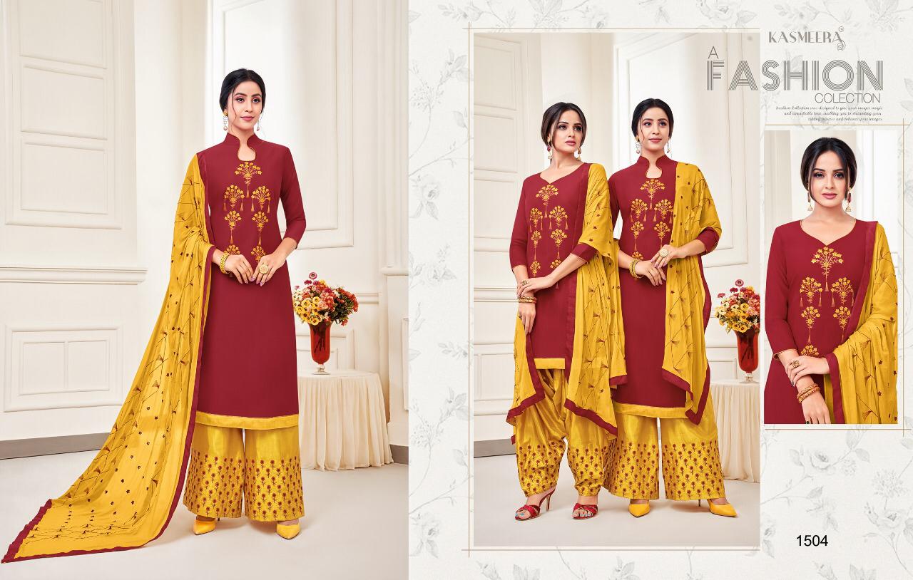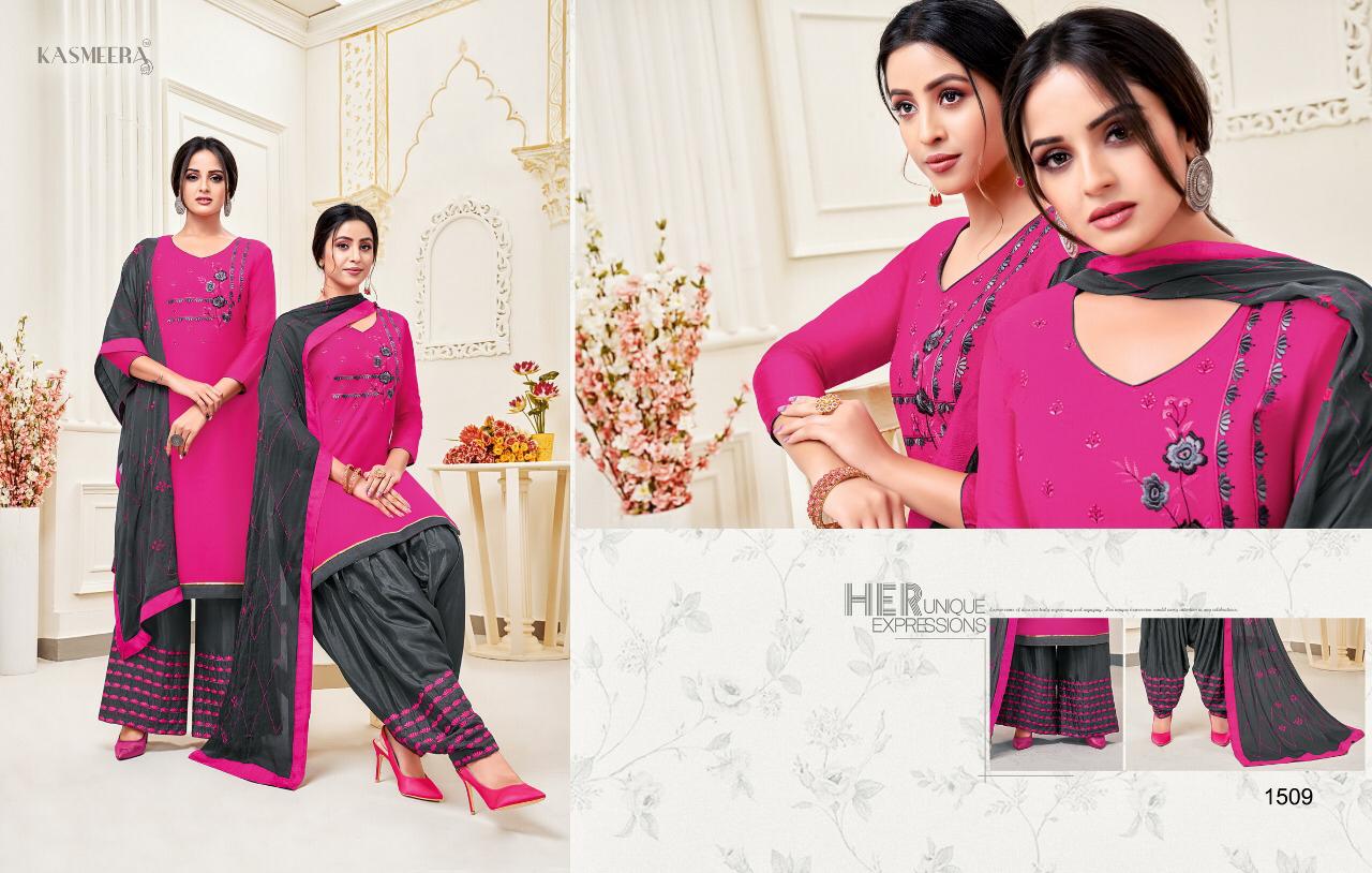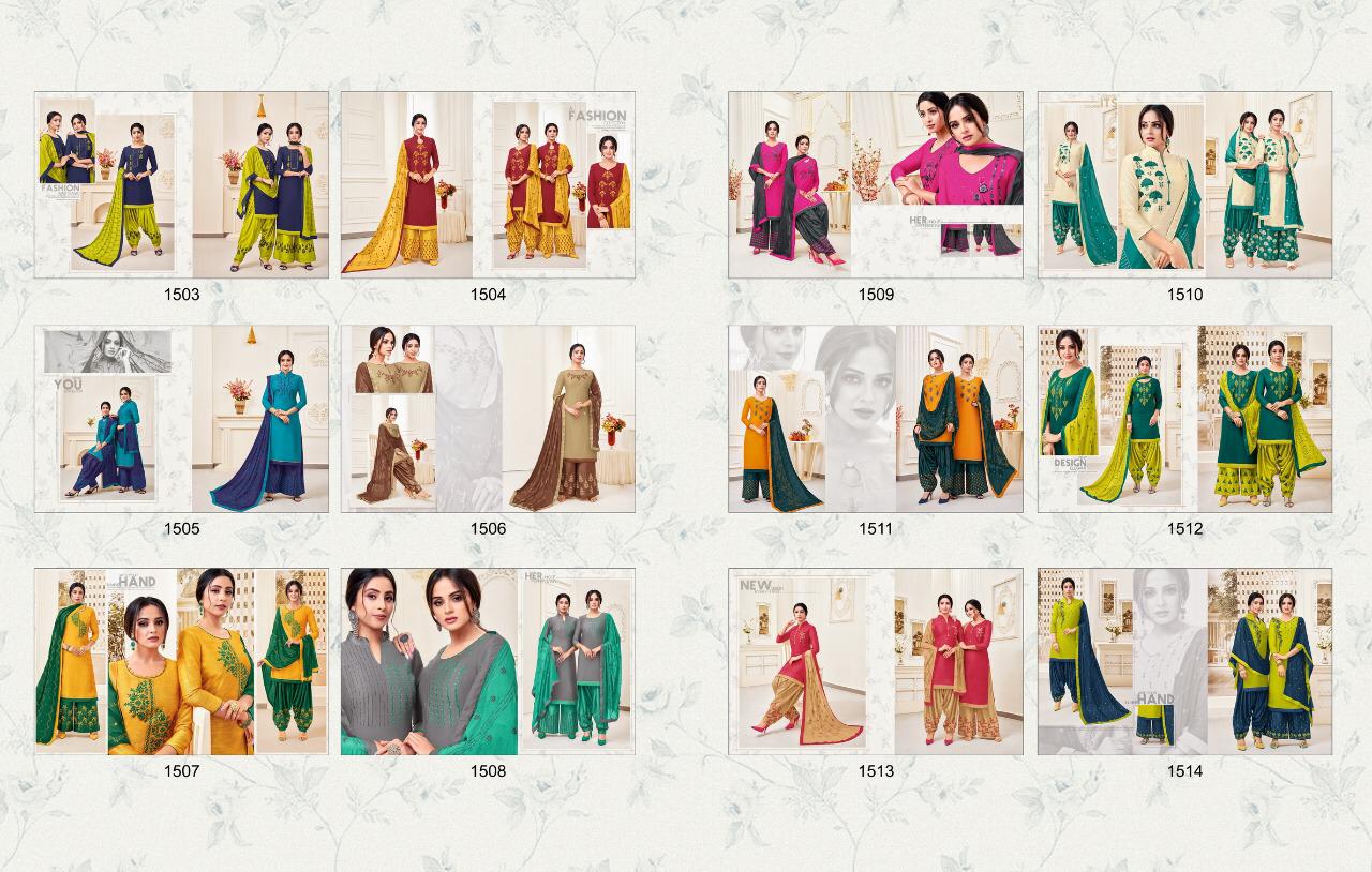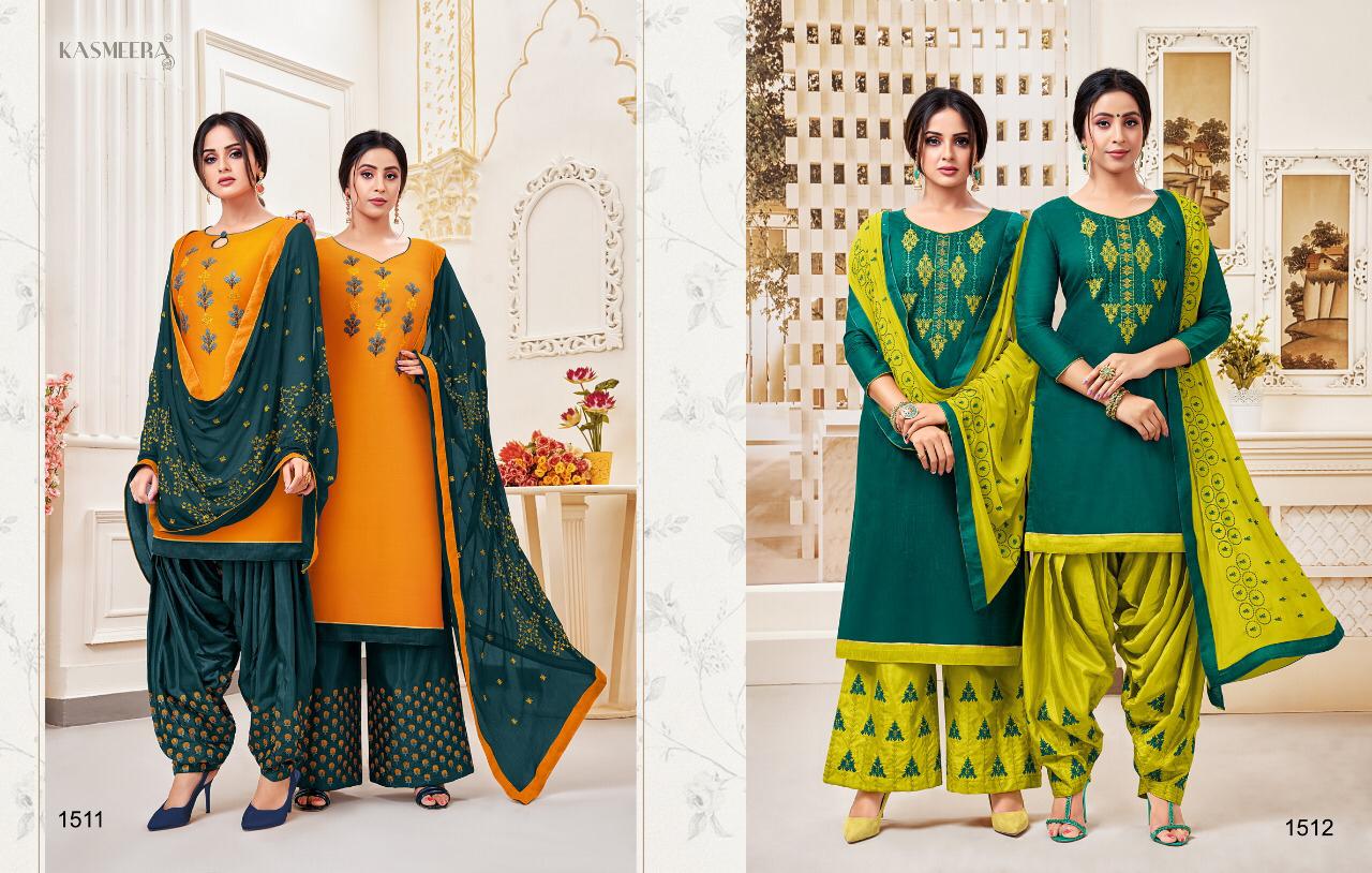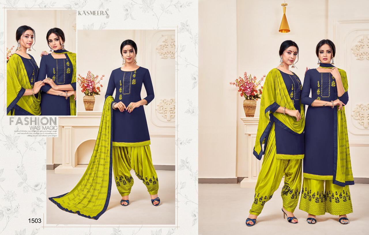 Kaycetrendz™(kasmeera) has launch - new catalog " Fashion of Patiyala Details :- Catalog Name :- MAHREEN PATIYALA VOL-3 Designs :- 12 pcs Rate-751/- Fabric :- Top :- pure cotton silk with work 2.00mtr Bottom :- santoon with work-2.50mtr Duppatta :- nazmin-2.25mtr |