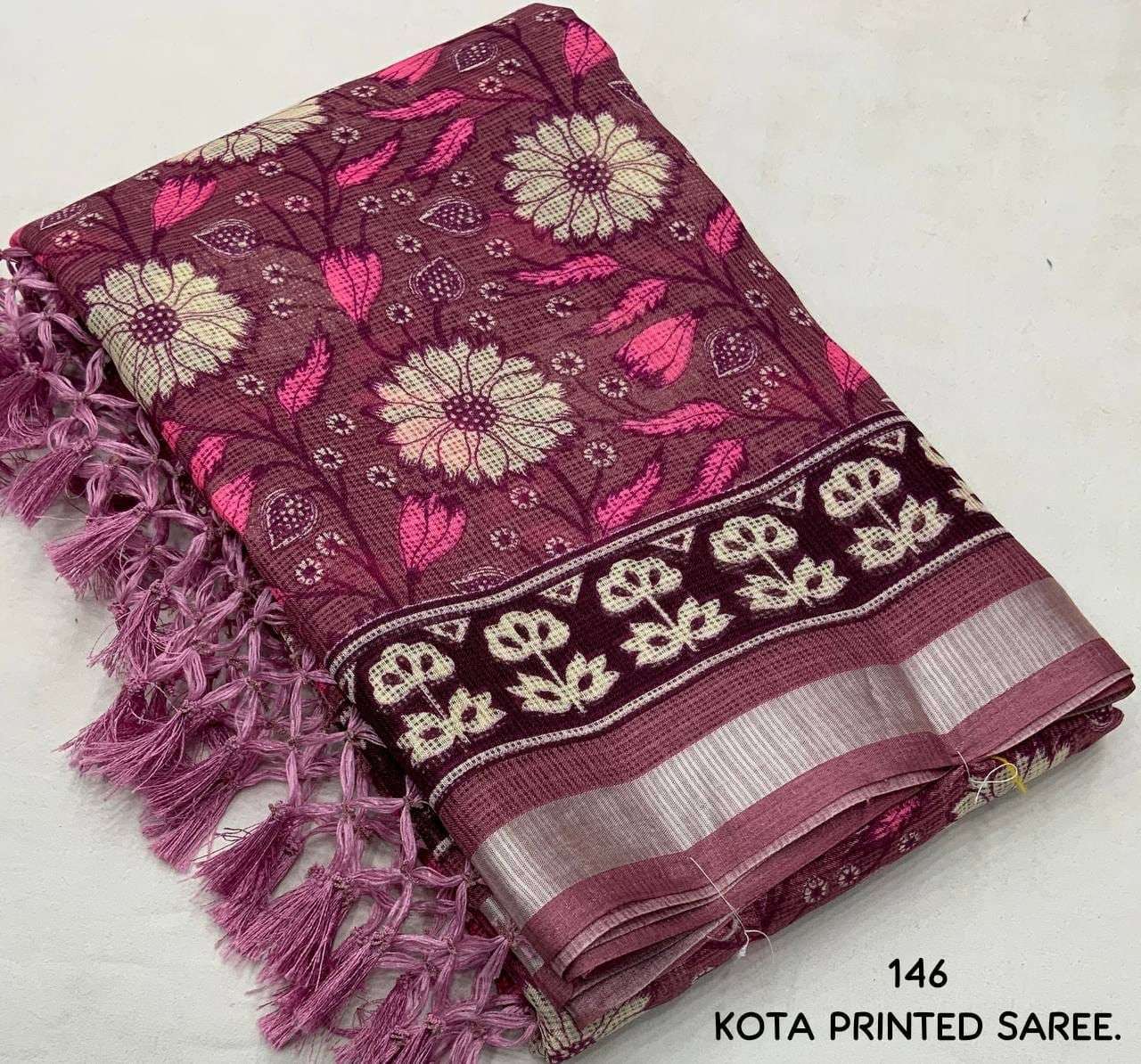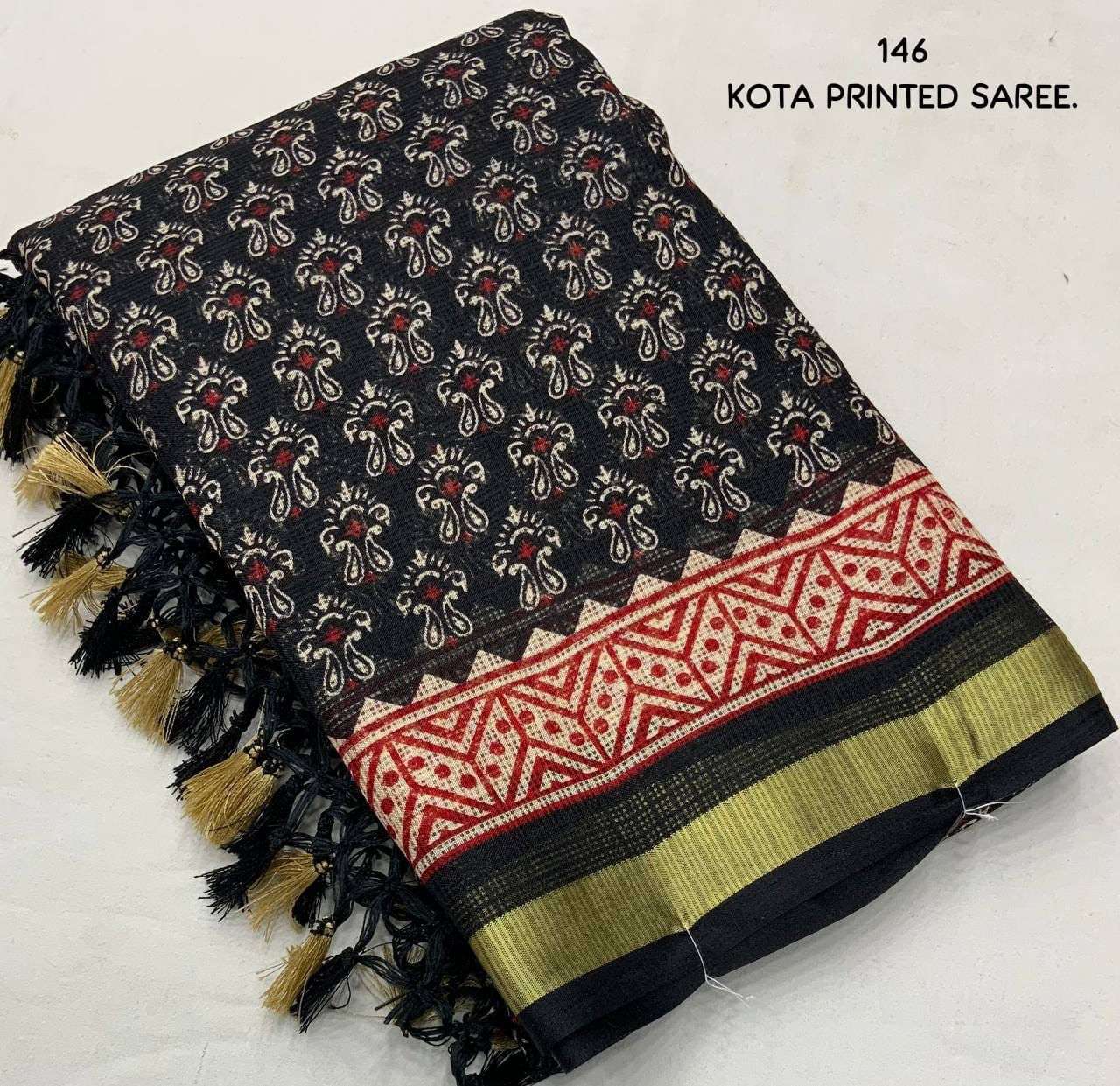 new arrivals New designs in our trendy clothing. KC 146 KC ajrakh kota Quality- soft kota doria saree with zari pattu border and tassels on pallu. Blouse- running kota silk blouse. Rate - 450+ship Top trusted quality |