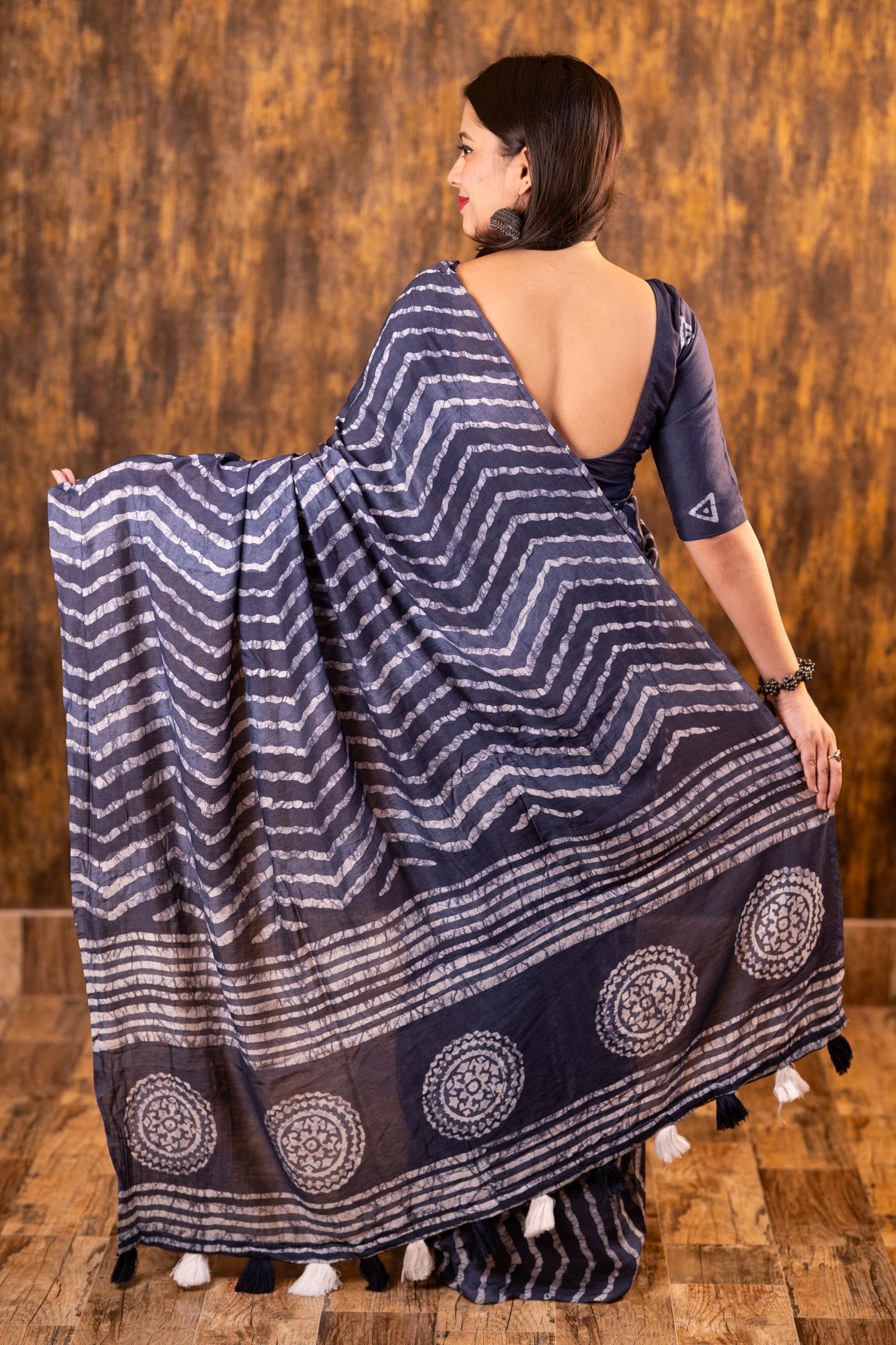 new arrivals New bagru prints magic cotton saree #magiccotton kc - 162 Magic bagru. Quality- soft chanderi cotton saree with bagru batik prints in zig zag pattern. Cotton tassles on pallu. Blouse- runing pure chanderi batik print blouse. Rate - 1250+ship Top trusted quality |