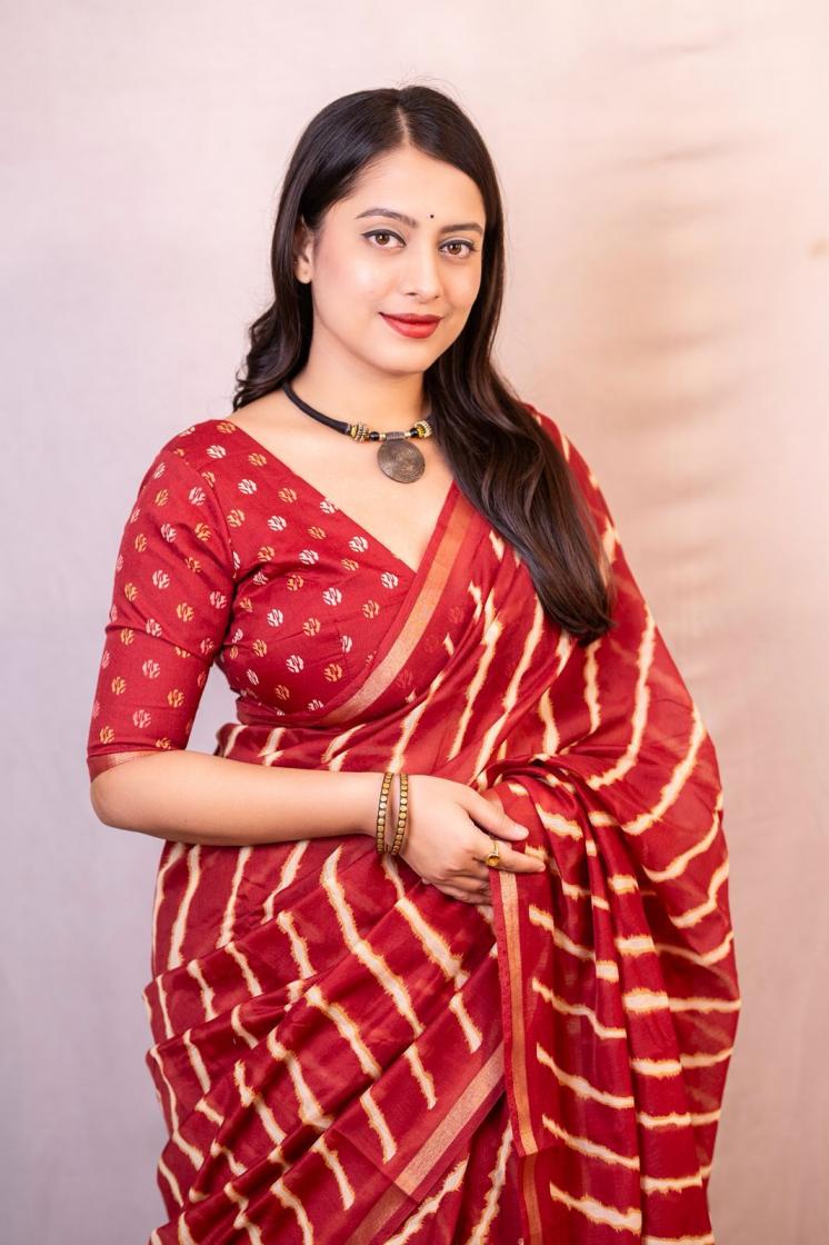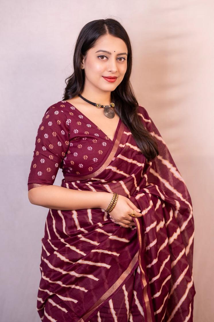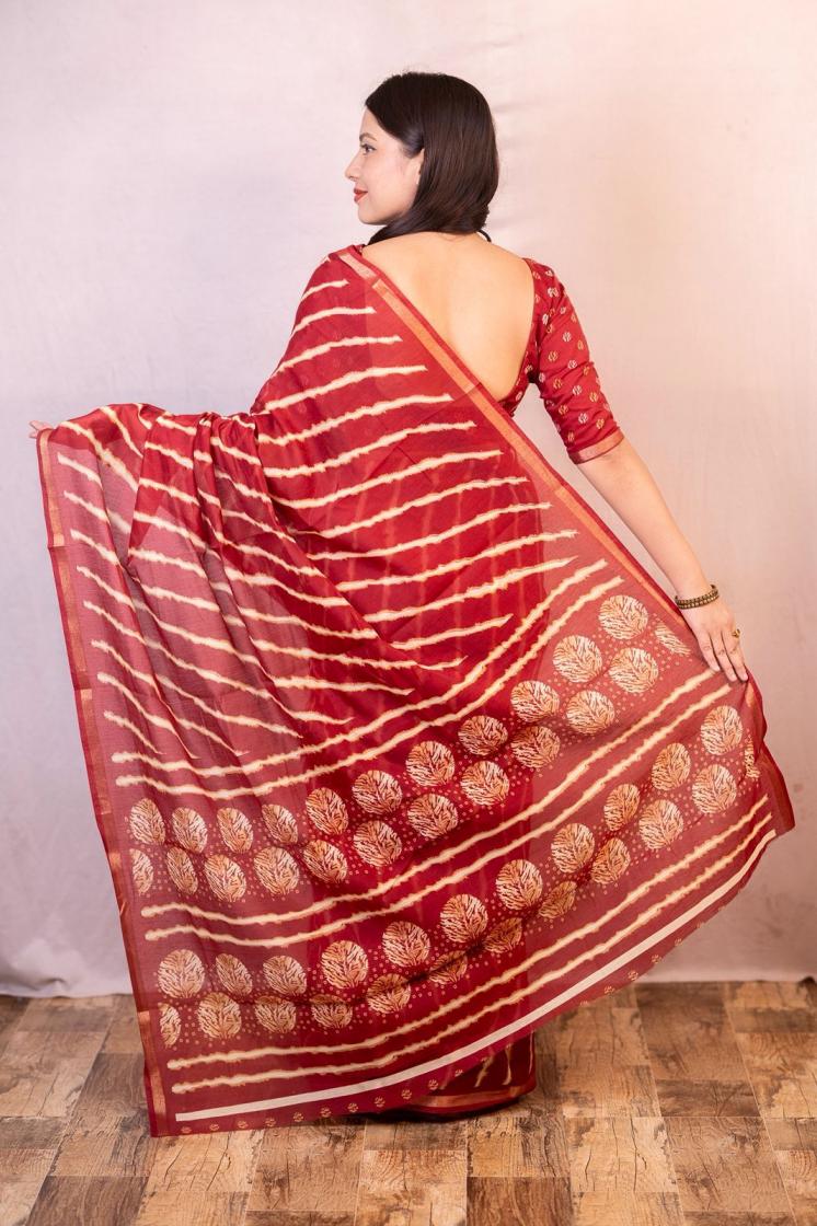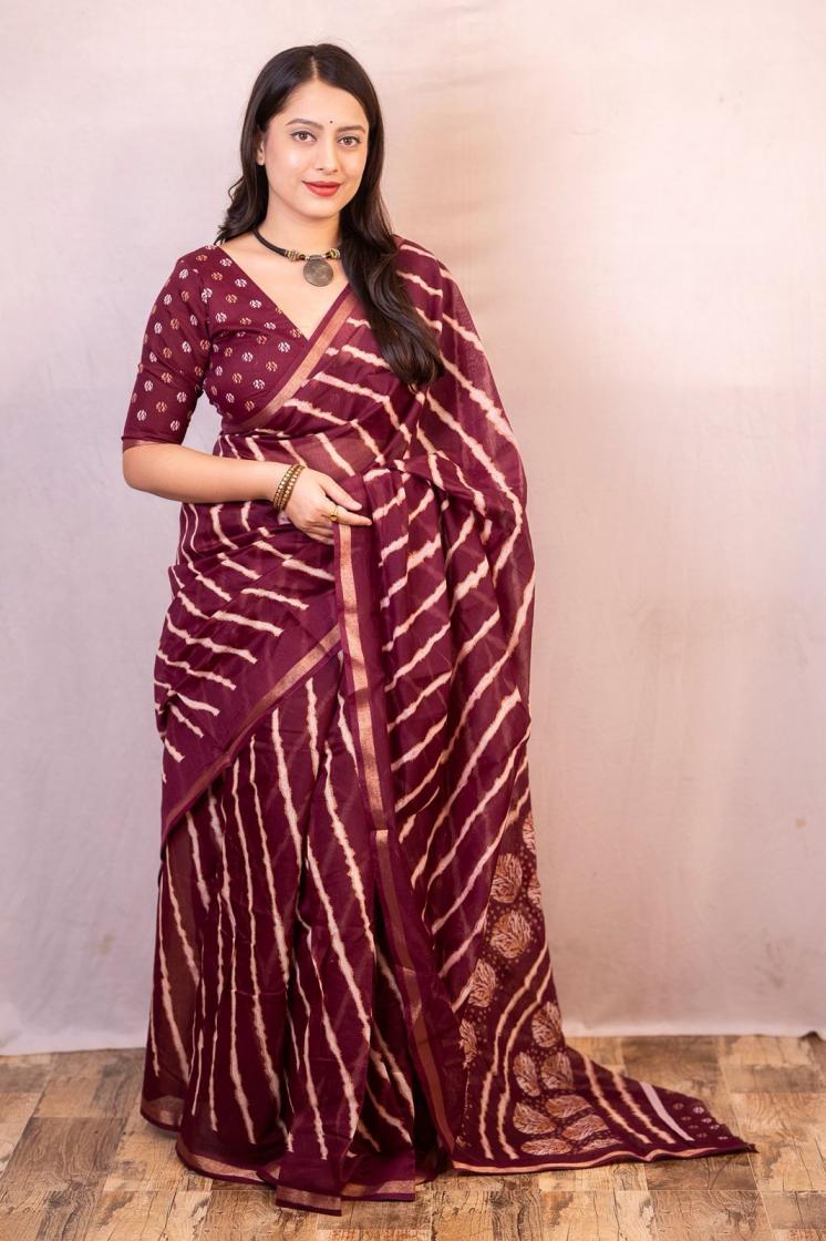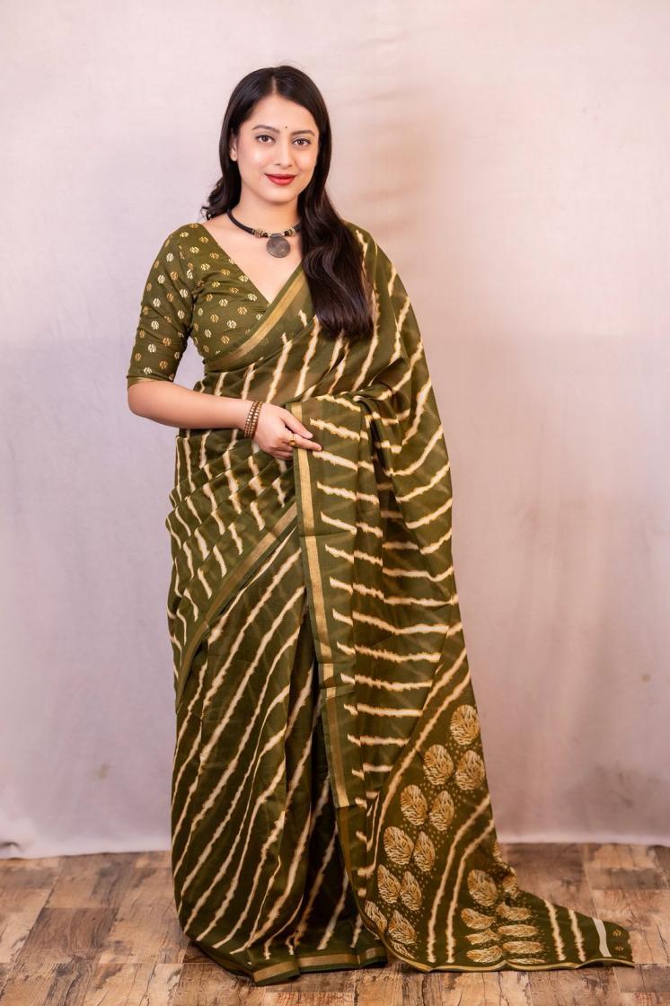 new arrivals New cotton style leheriya saree KC - 174 KC - crystal leheriya. Quality- soft cotton feel saree light weight with zari woven pattu. Leheriya prints. Blouse- seperately printed running blouse. Rate - 450+ahip Top trusted quality |