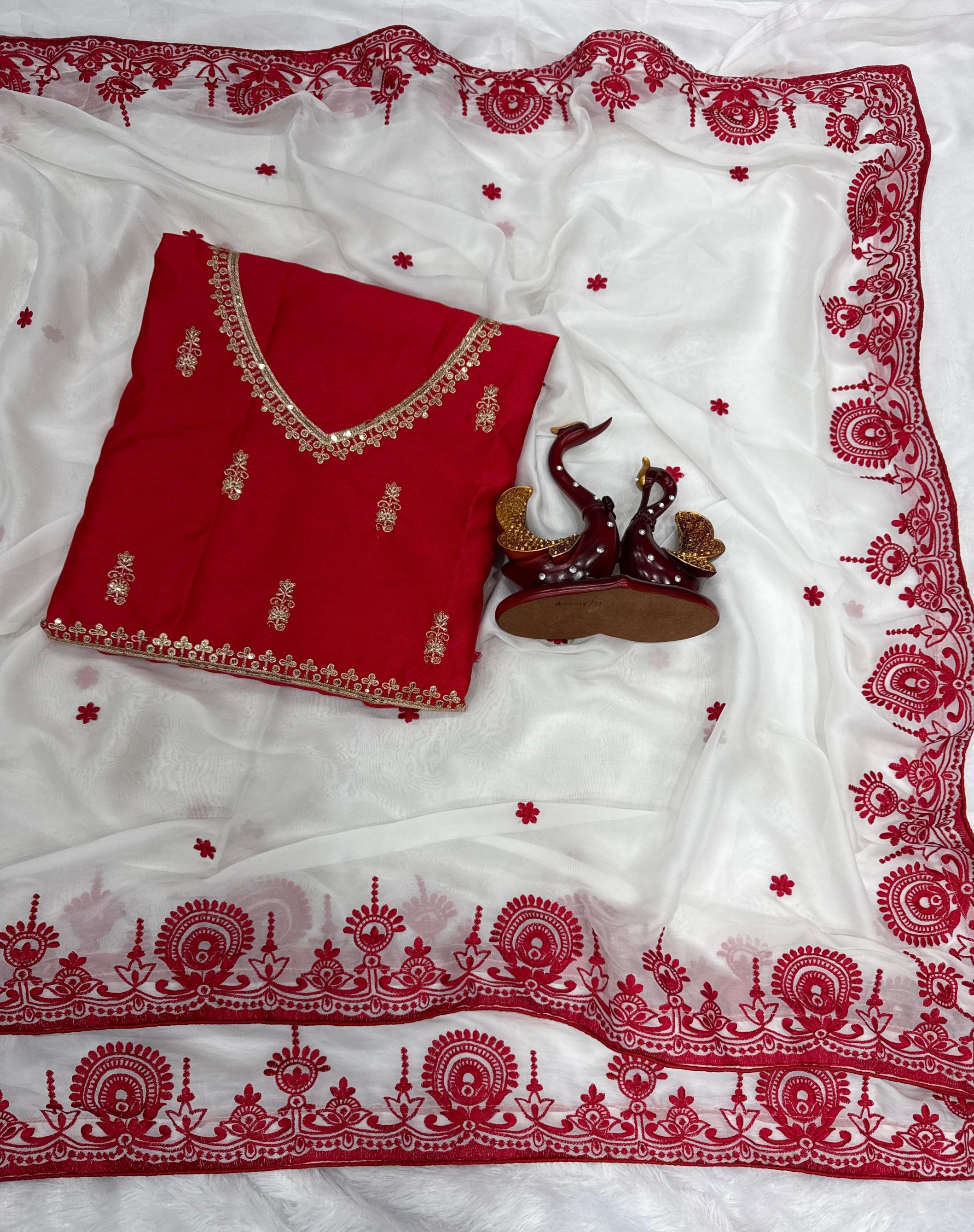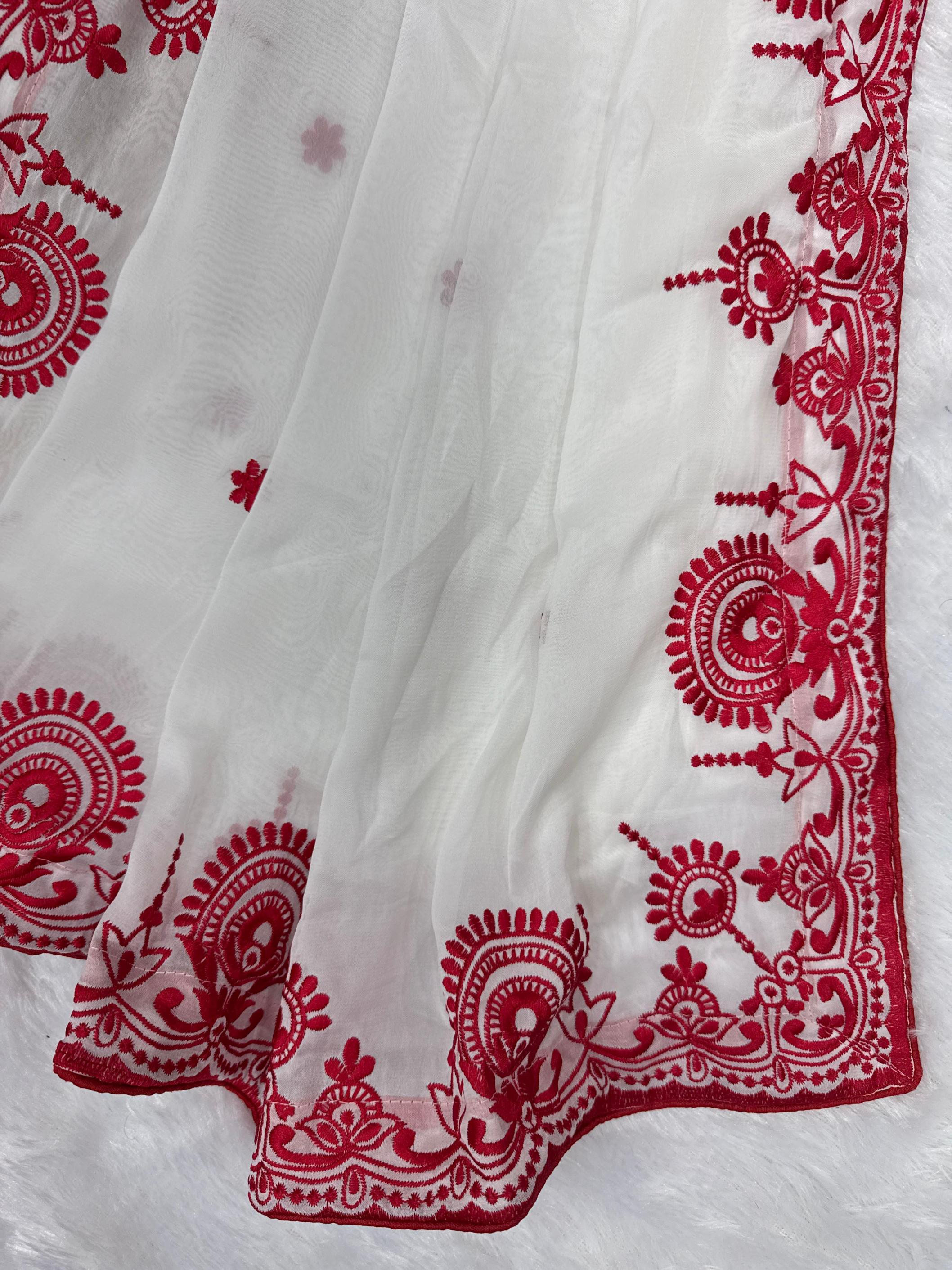 For this upcoming festival, present some special red&white saree collection 👇 PRODUCT DETAILS 👇 KC-2057 SAREE FAB. : Soft Catonic Rangoli Silk Exuding grace and sophistication, this thread work embroidered saree blends classic beauty with modern elegance. Each delicate petal in the design tells a story of timeless charm, making it the perfect choice for those who appreciate both tradition and contemporary style. 🤷♂️ JUST @ RS.1349/- |