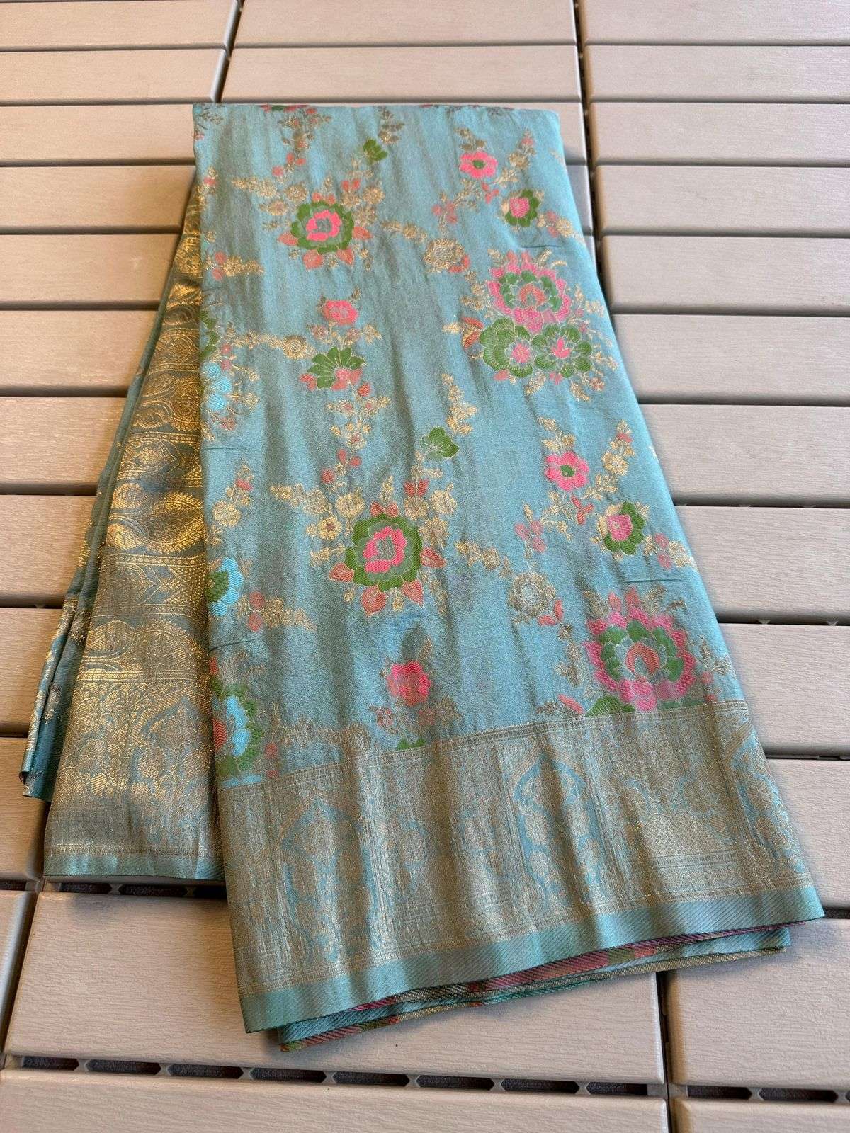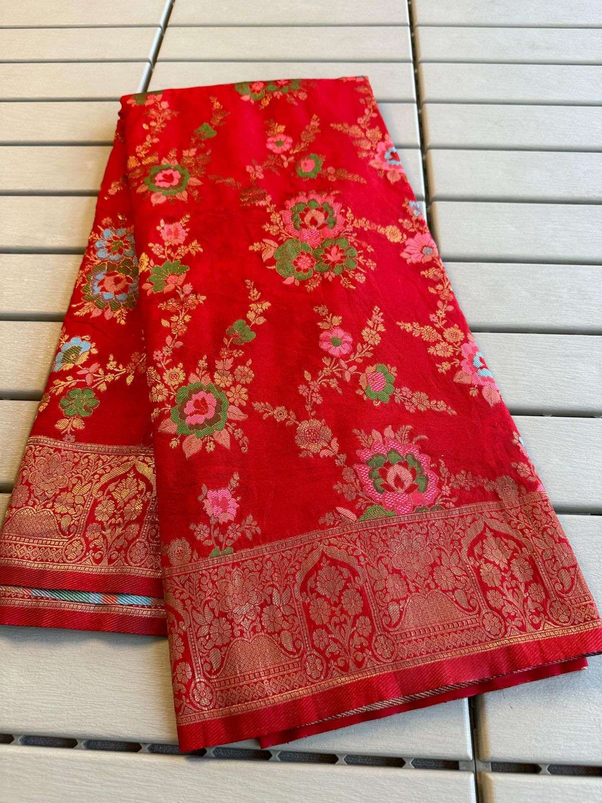 THE ONLY WORD THAT COMES IN OUR MIND IS WOW AFTER HAVING THIS NEW COLLECTION IN UR WARDROBE KC- 308 Pure Crepe Khadi Silk Saree With Finest Elegant Zari Wooven Pallu Having Fancy Tassels With Zari Wooven Border With Meenakari Weaving In Full Saree With Butti Blouse Which Comes With Hand Dyeing With Running Blouse Price ₹1599/- |