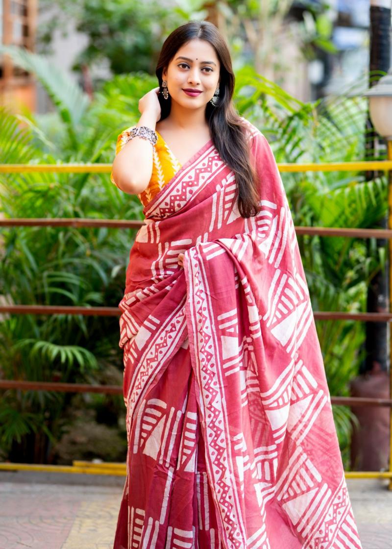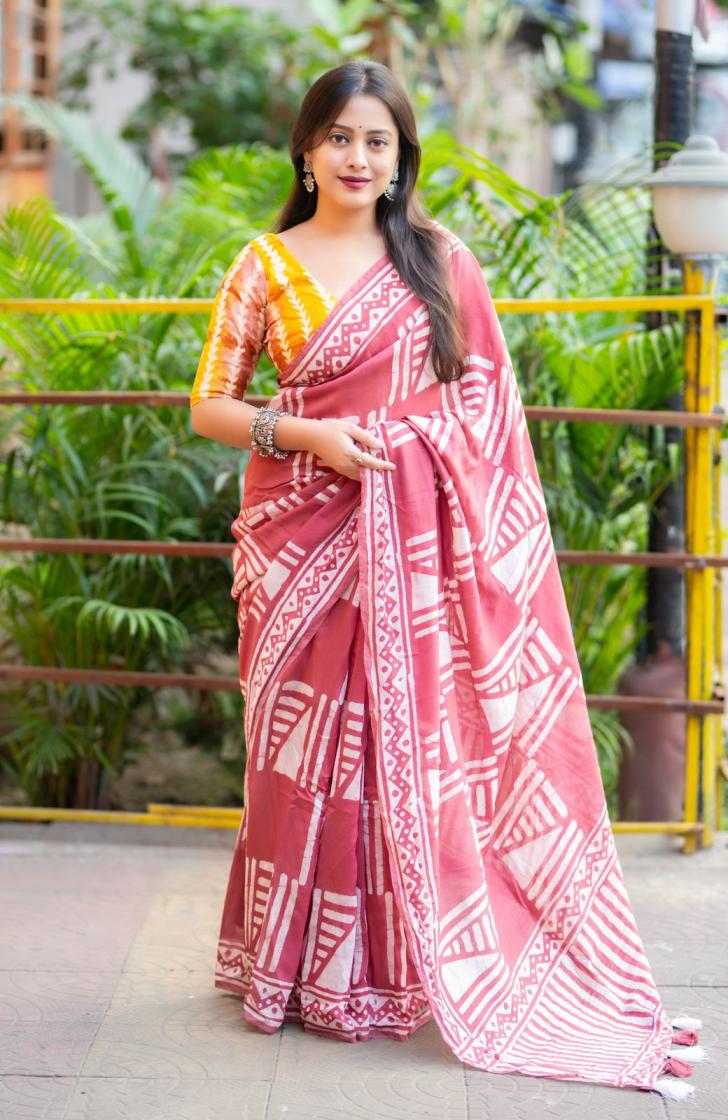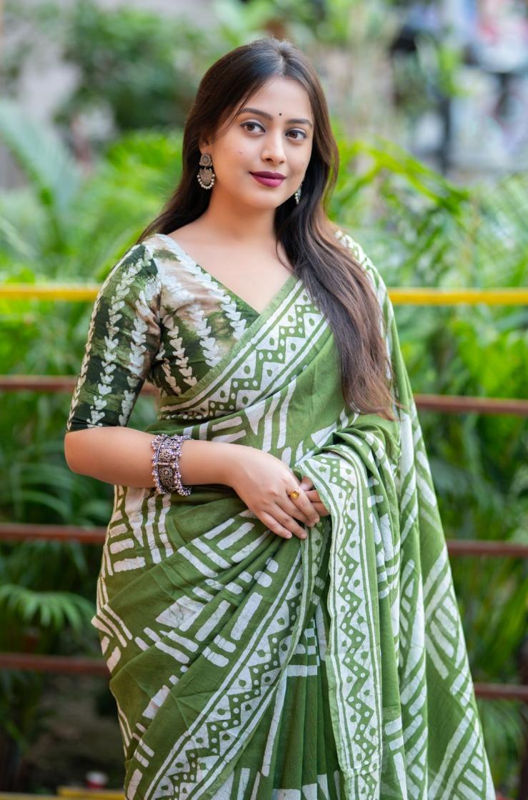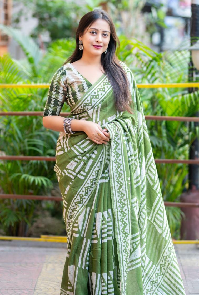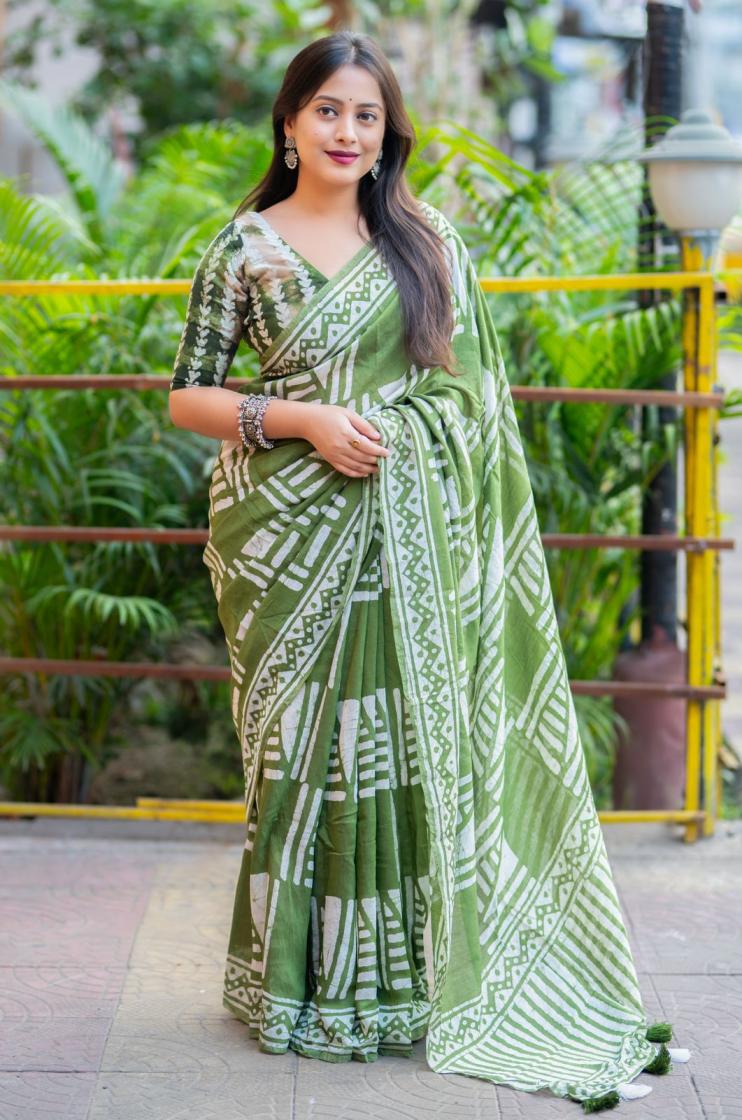 new arrivals New pure chanderi batik saree with designer blouse. #magiccotton KC - 309 magic cotton Pure chanderi cotton saree with hand block batik prints. Cotton tassels on paluu. Pure chanderi cotton blouse with spray style dying and ikkat style batik prints done on it. Rate- 1050/- +ship Top trusted quality |