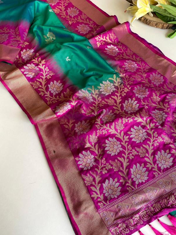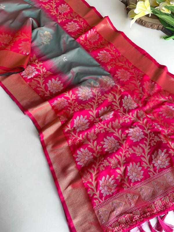 New Catalogue 😍 🥻 KC-3091 🥻👉🏻Description - Dual tone silk sarees with all over zari weaves, Contrast pallu and designer chaap border. 👉🏻 Blouse - as shown in videos. 😍. 👉🏻 RATE:-1599 🤩 |