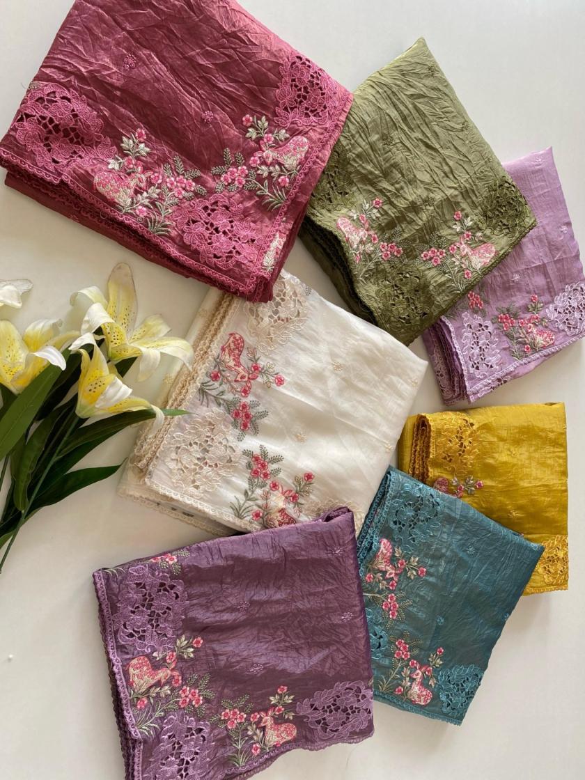 Premium collection saree. KC-4011 🥻👉🏻Description - Pure crush silk saree with all over embroidery design and cut work design. 👉🏻 Highlight - Intricate embroidery designed contrast pallu. 😍 👉🏻 _1499 |