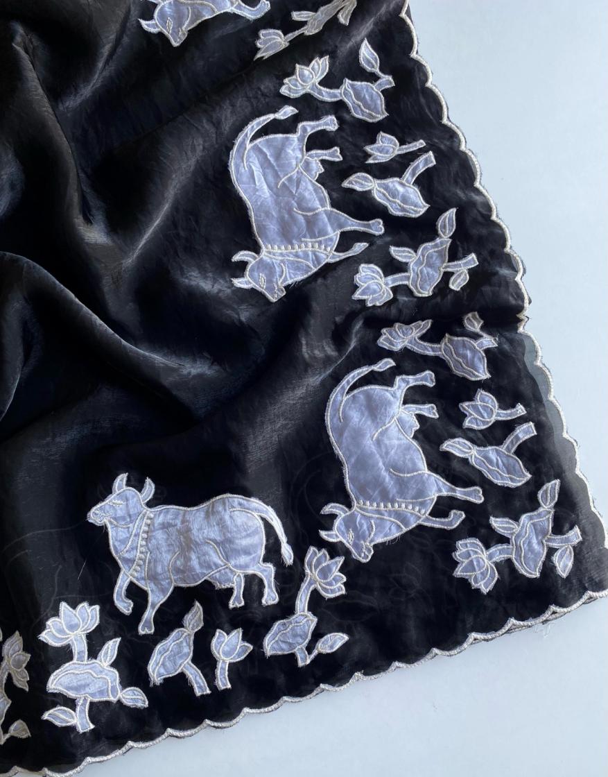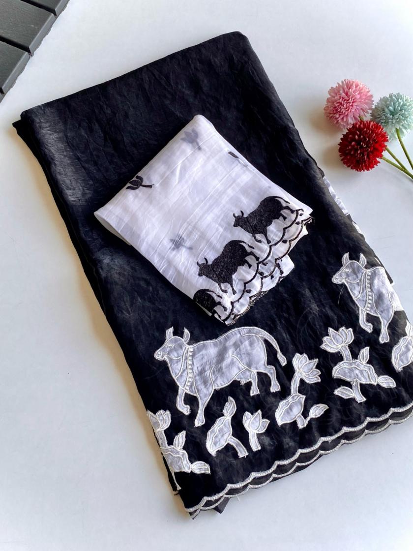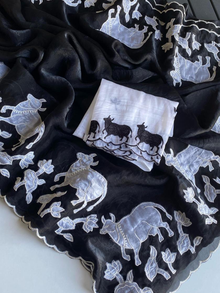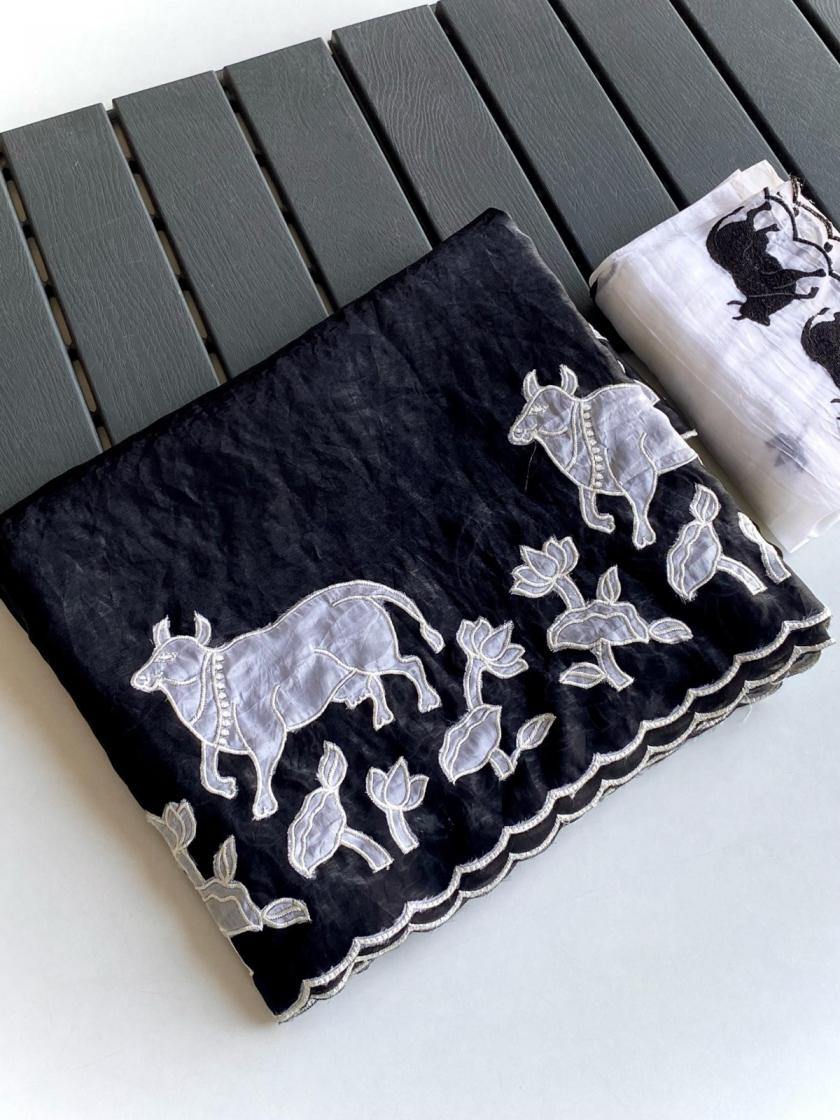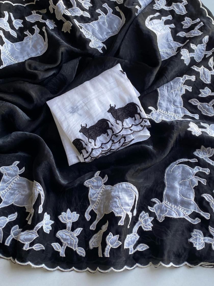 New Catalogue 😍 Applique embroidered saree Catalogue. 👉🏻 DESCRIPTION : PURE GLASS FENDI SAREE WITH ALL OVER DESIGNER APPLIQUE EMBROIDERED PALLU AND BORDER. PRICED AT 2199/- |