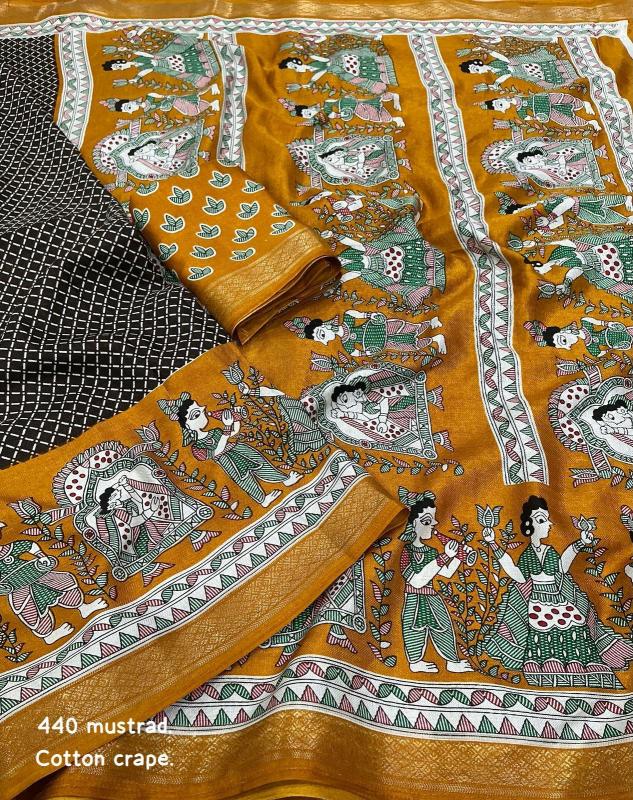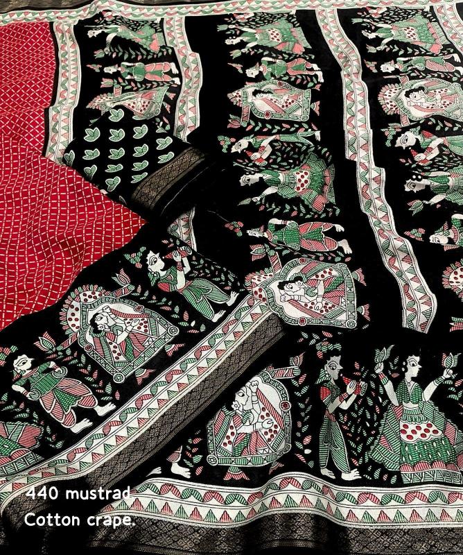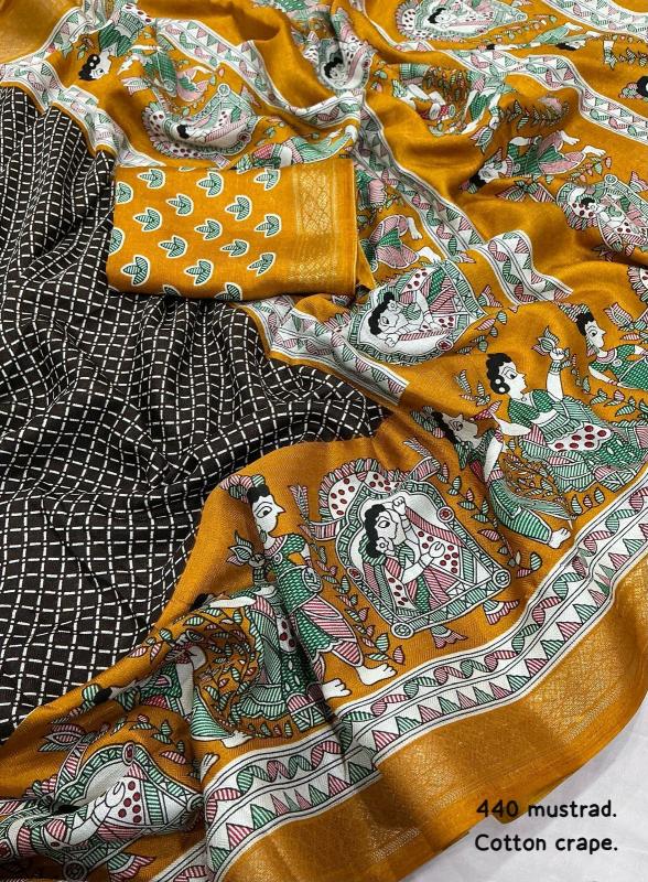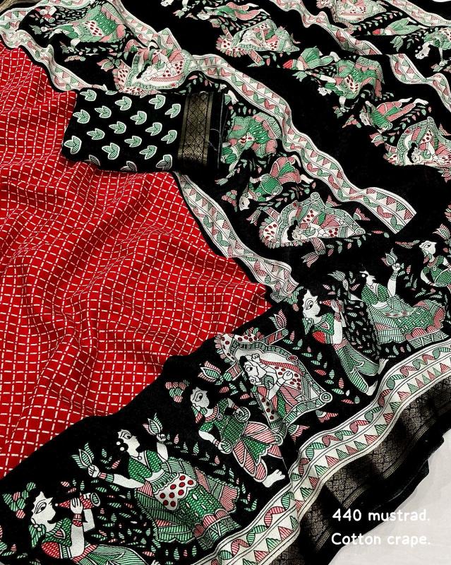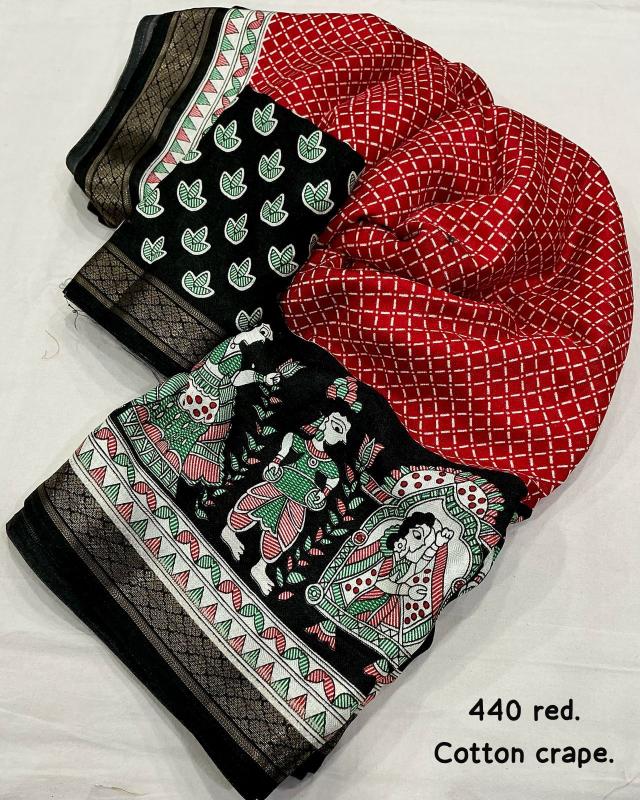 new arrivals New cotton crape saree KC - 440 cotton crape baarati. Soft pashmina saree with zari pattu woven border. Fancy figure prints, Perfectly marched running printed blouse. Rate- 570/-*+ship Top trusted quality |