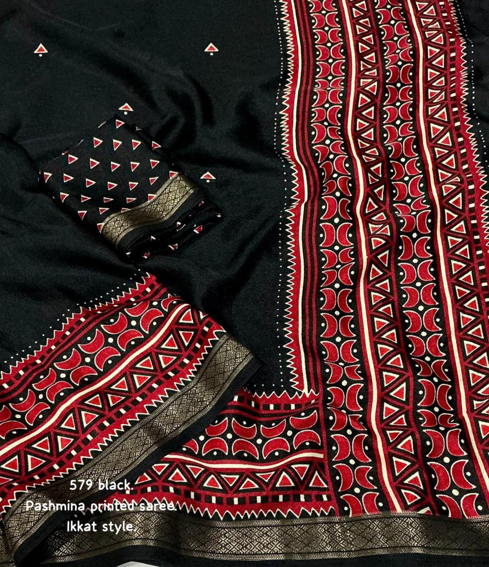 new arrivals New trending printed saree kc - 579 pashmina ikkat Soft pashmina silk saree with zari pattu woven border. Ikkat style prints. Running printed blouse. Rate- 550+ship. Top trusted quality |