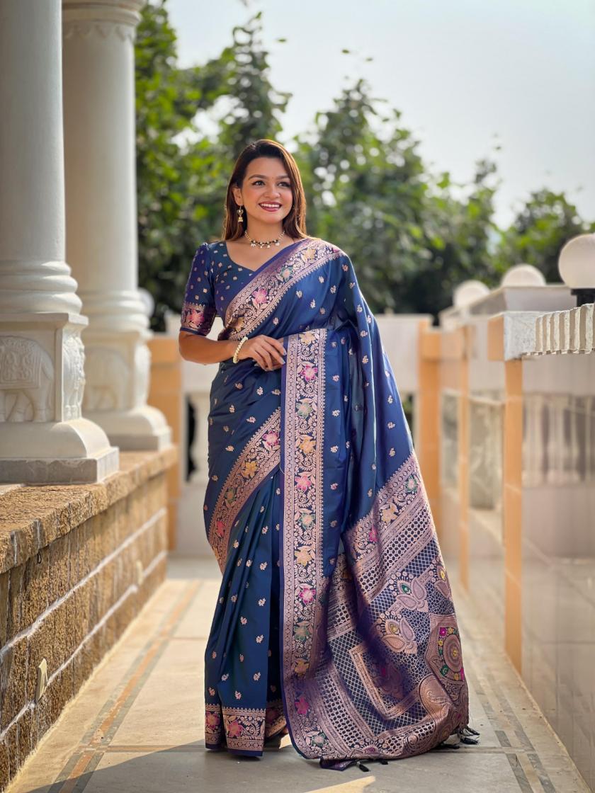 kc 7007 banarasi silk zari stylish weaving meenakari saree for ladies