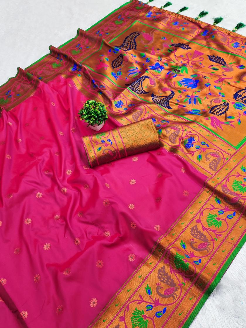❣️❣️Trendinng Collection❣️❣️ KC- 7009 Fabric Detail :- Saree :- Soft Pethani silk saree with zari weawing Meenakari design and Meenakari weawing Rich 🦚 pallu with Meenakari weawing border & Tassels attached at Pallu end. Blouse :- Silk weawing blouse piece with sleeve border Rate : 1549/- 😊 |