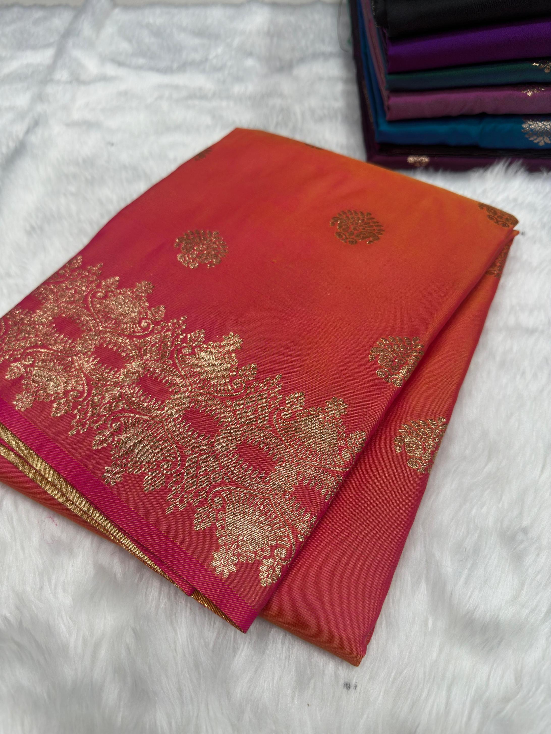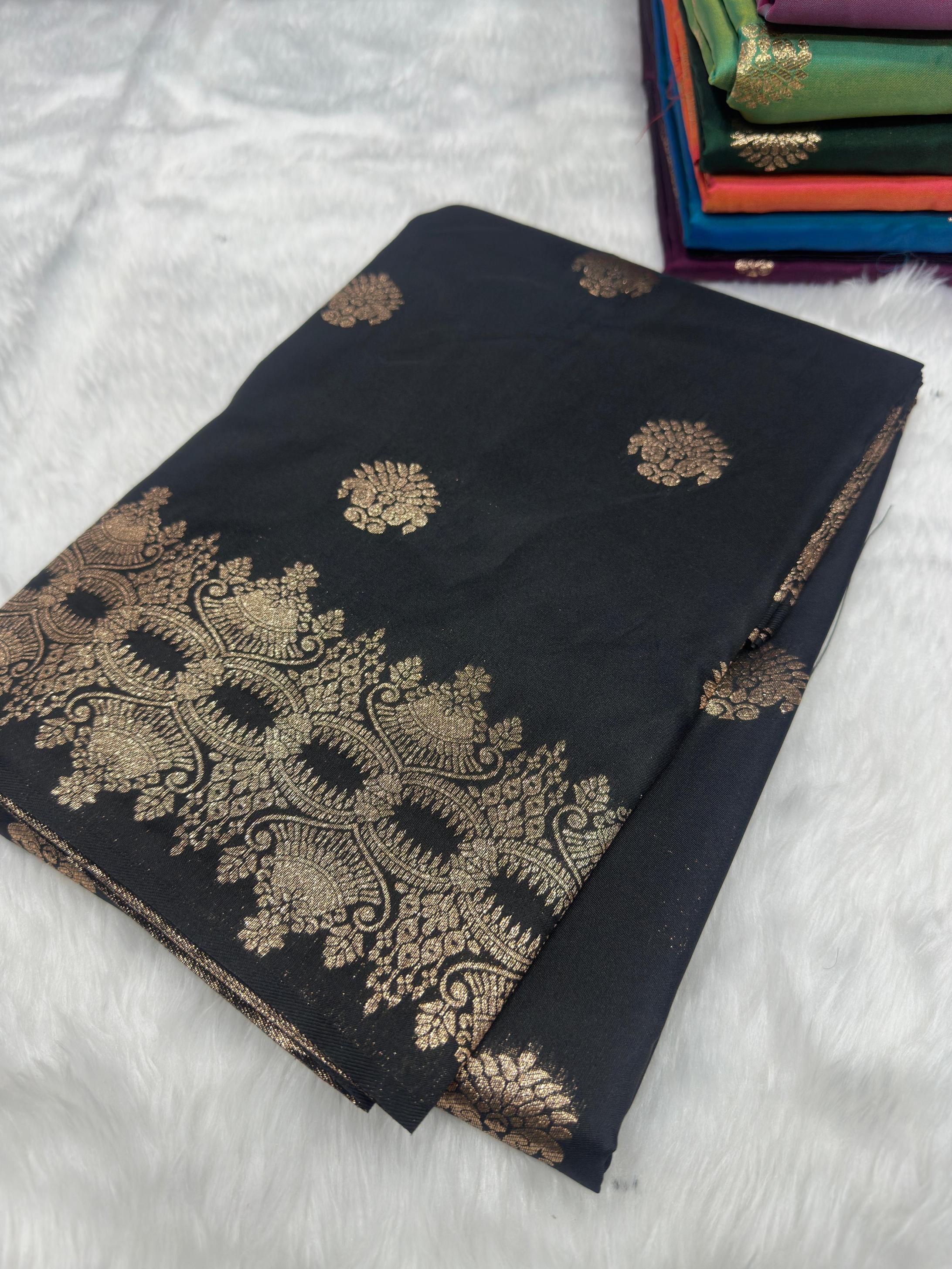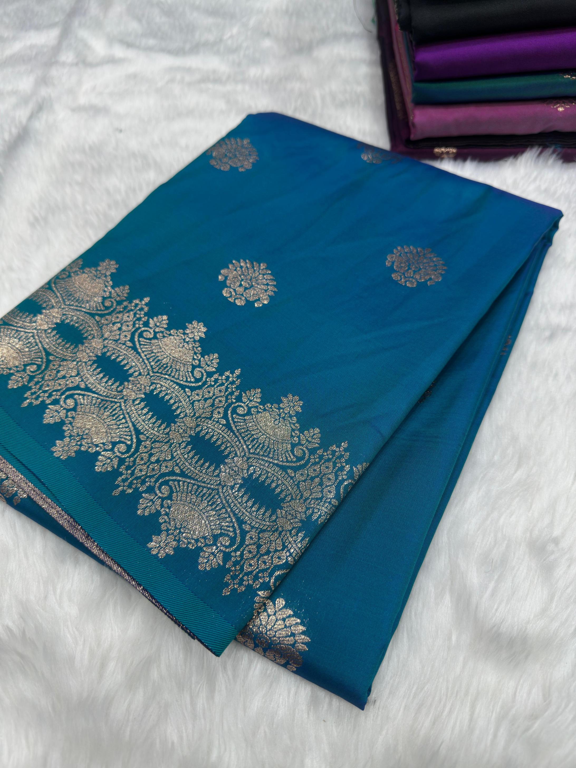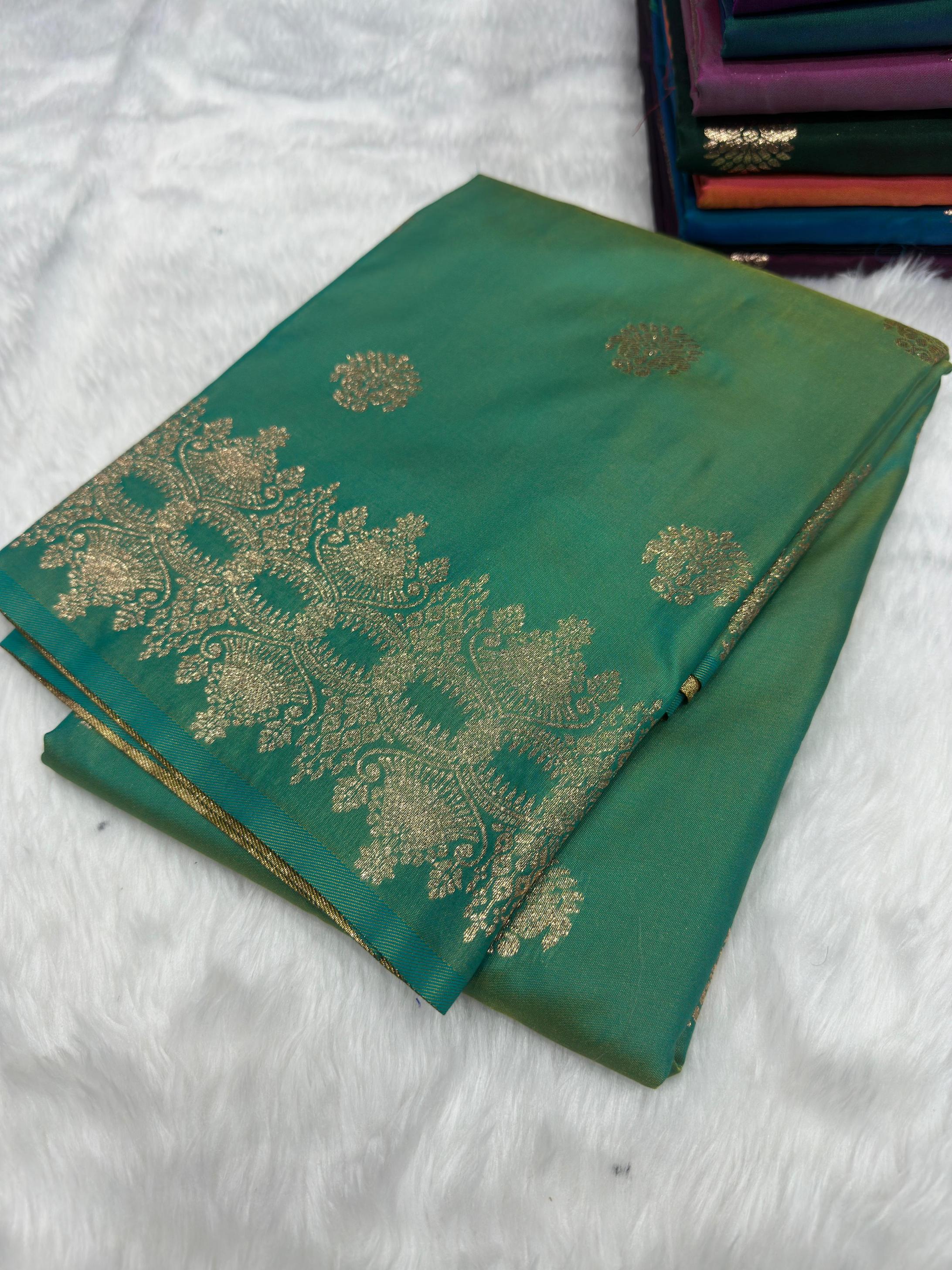 💖Fresh Arrival💖 KC-7018 Saree :- Soft And pure banarasi silk saree with self weaving design all over the saree & zari weaving Rich pallu with zari weaving unique border & heavy rich Pallu. Blouse :- Soft And Pure silk weaving unique blouse piece with small zari motifs & rich border. Rate : 1099/-😊 |