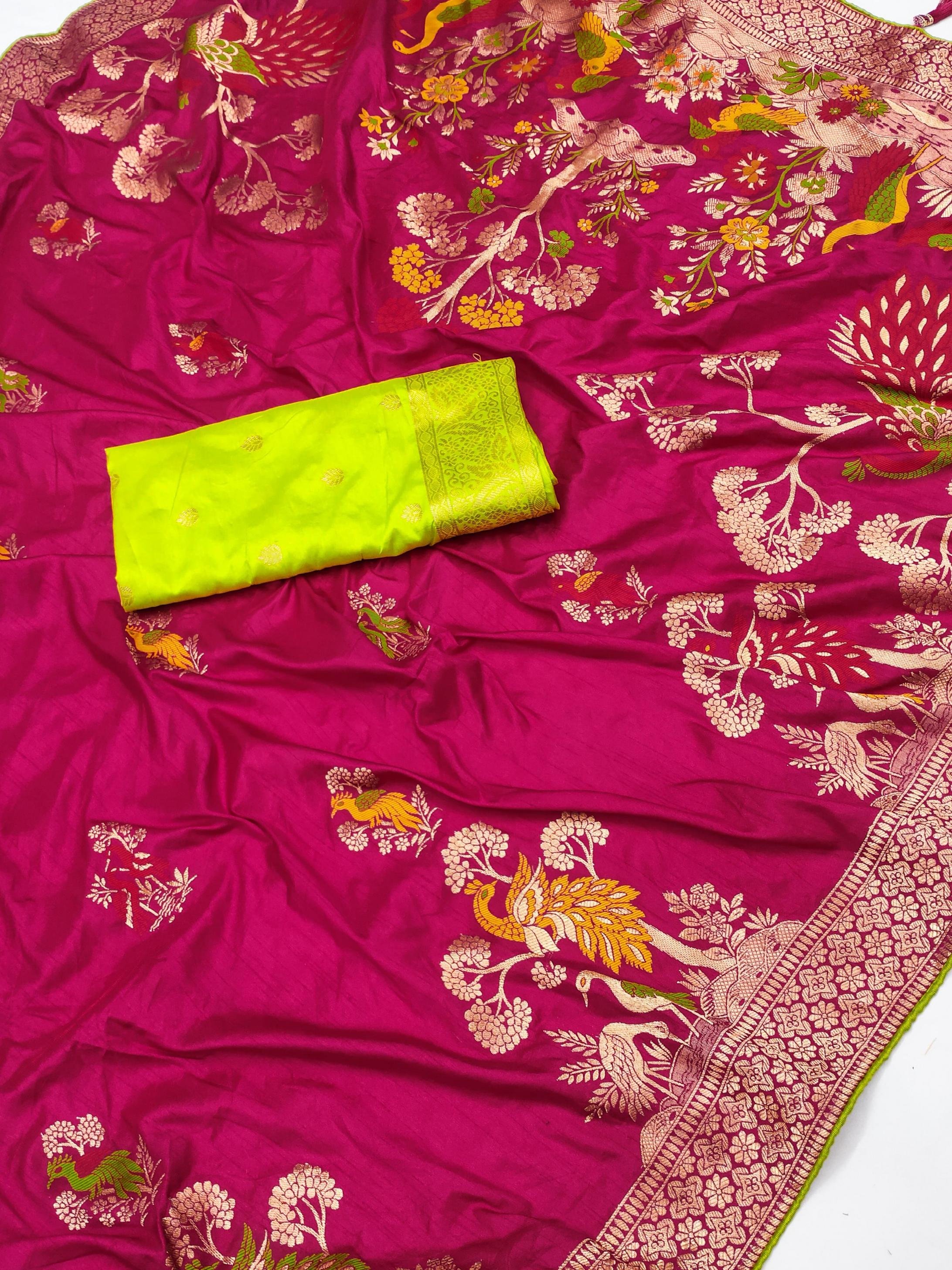 ❣️ Festive Collection❣️ KC-7021 Saree :~. Pure viscose Dolla Silk saree that makes u cool in this summer season. Blouse :~ Soft Silk zari weawing contrast Blouse piece* Price :~ 1549/- |