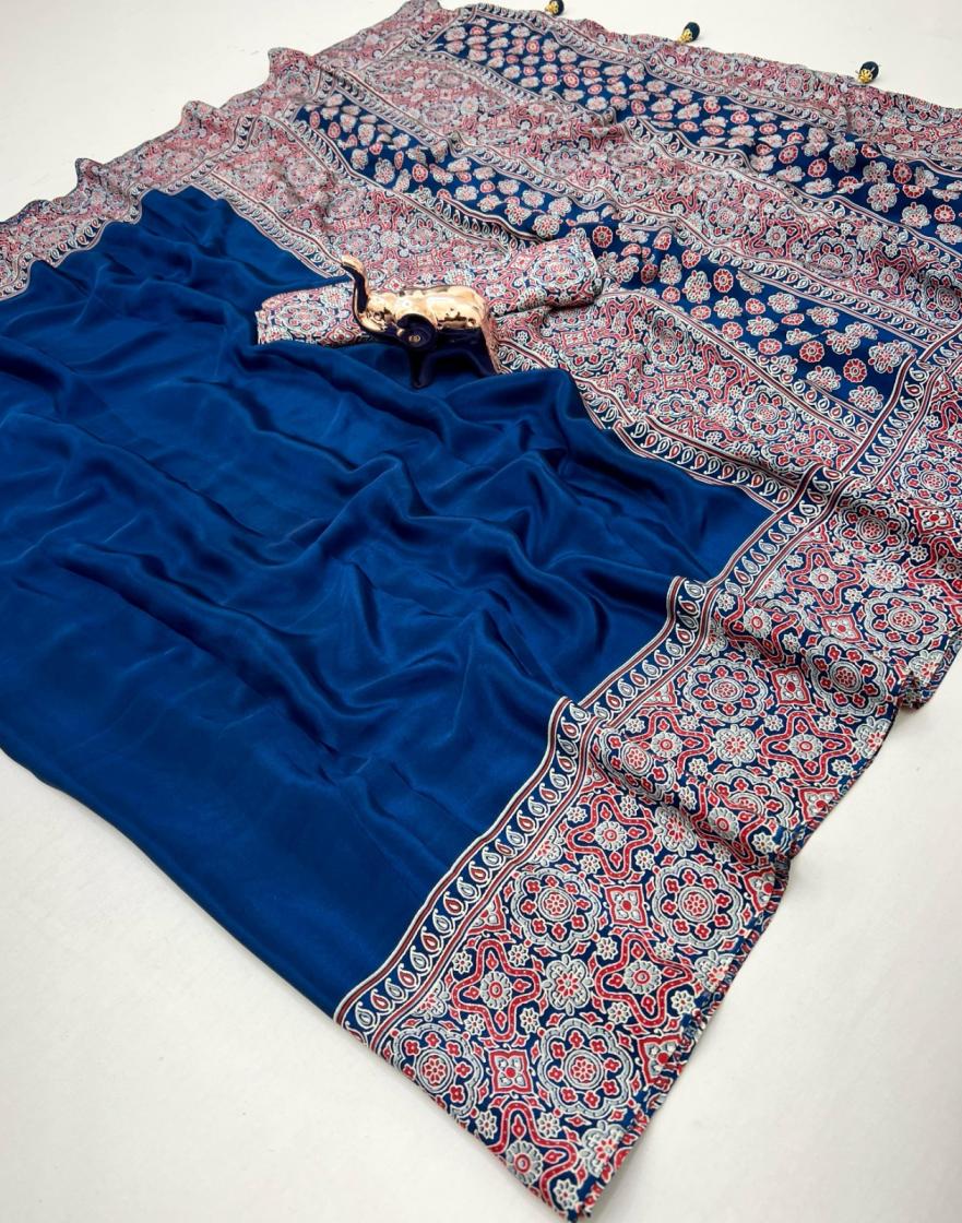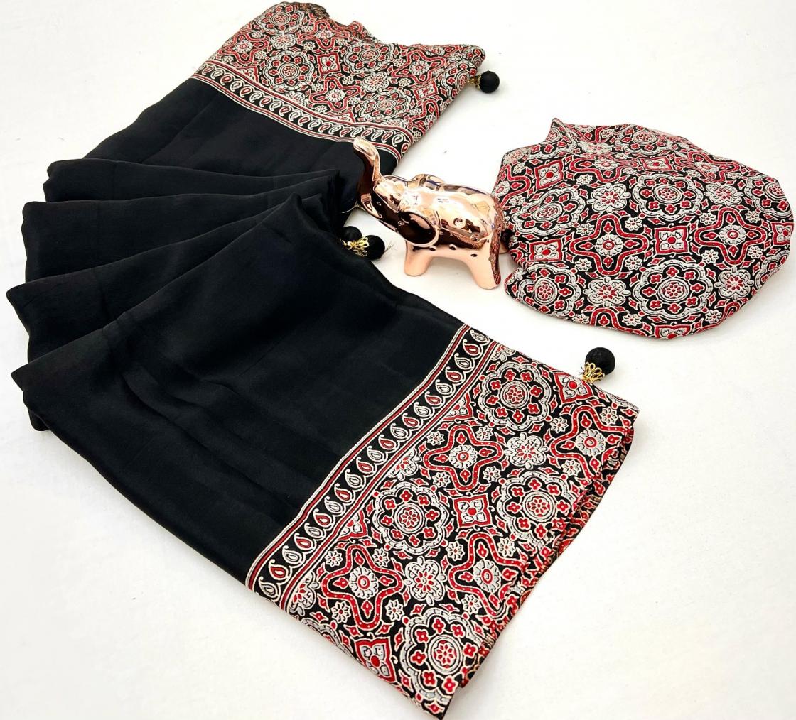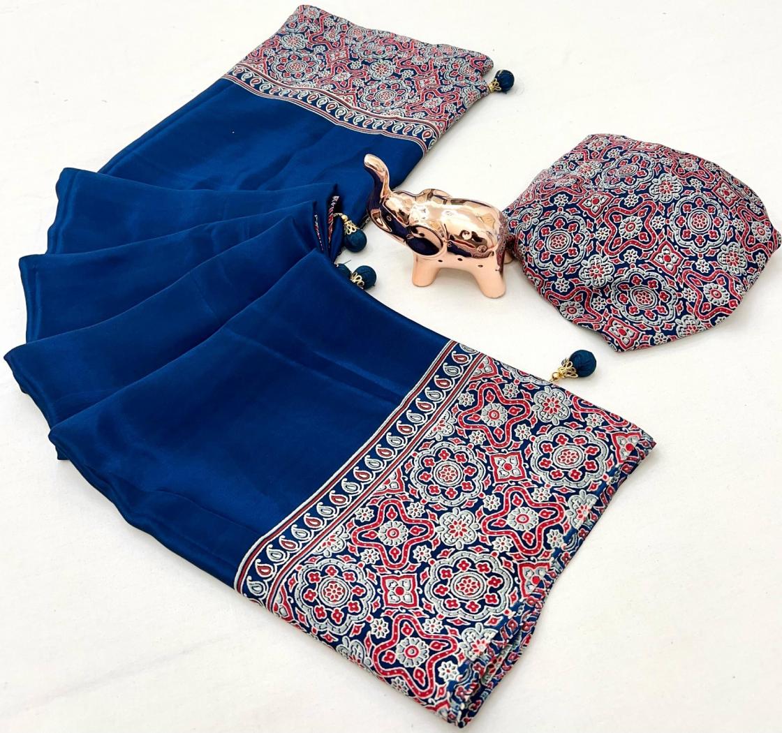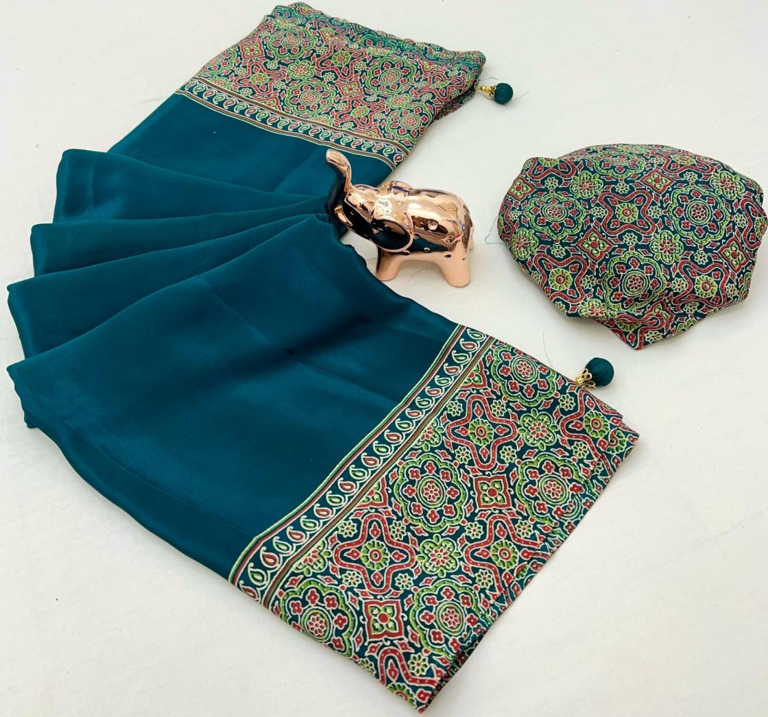 kc 8002 satin ajrak printed gorgeous look sarees online