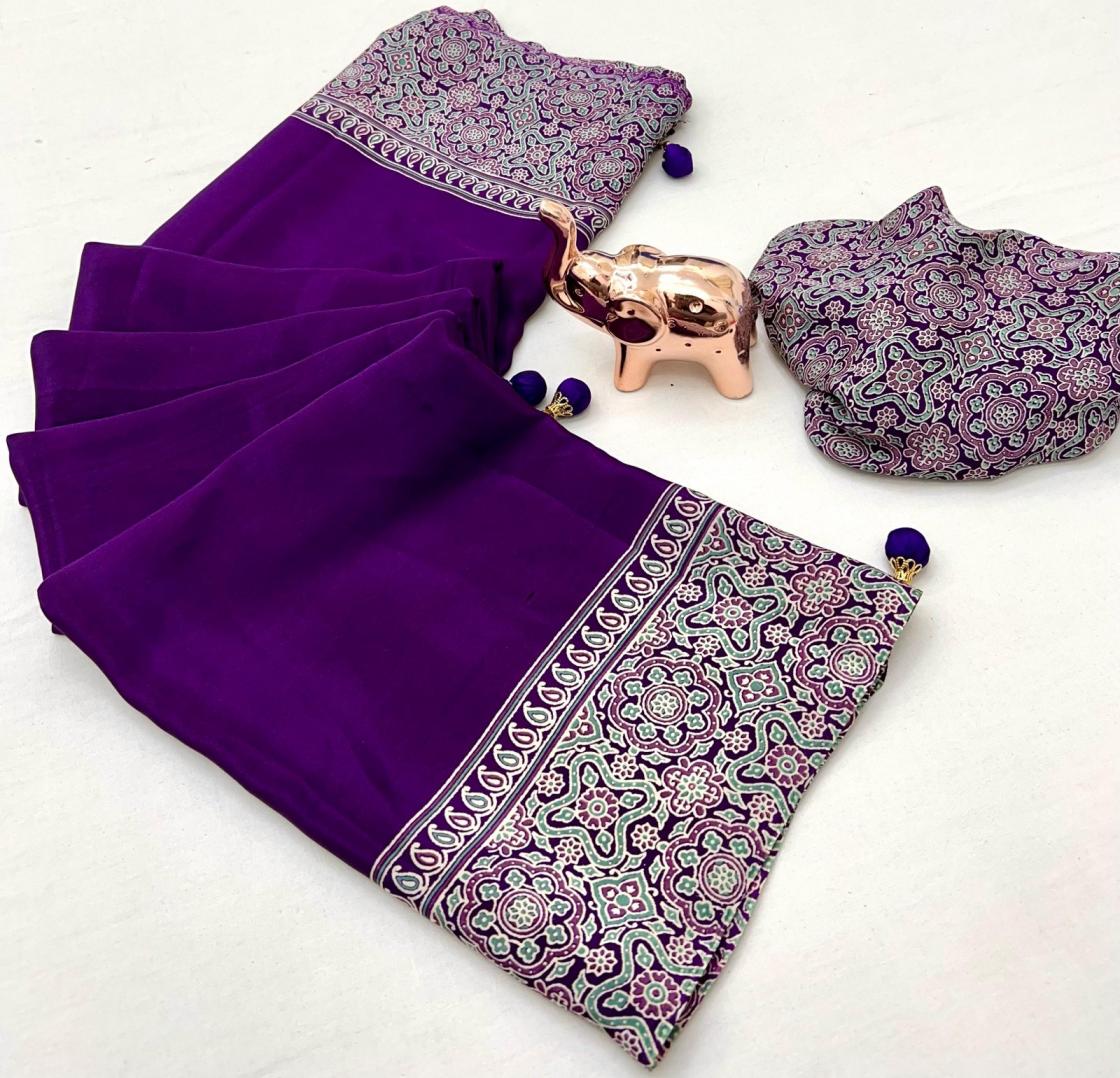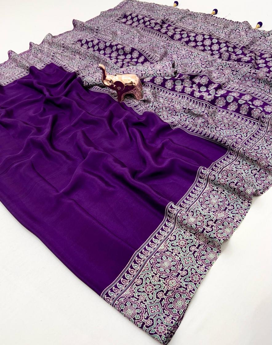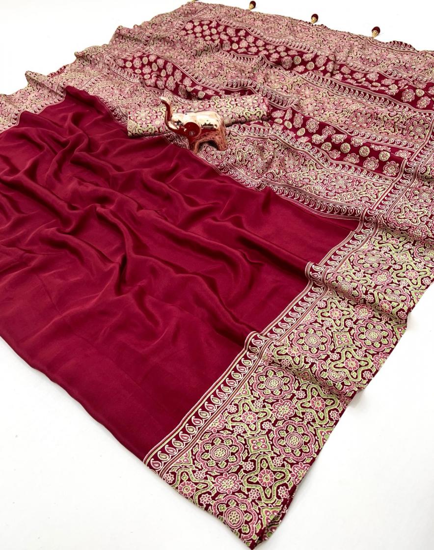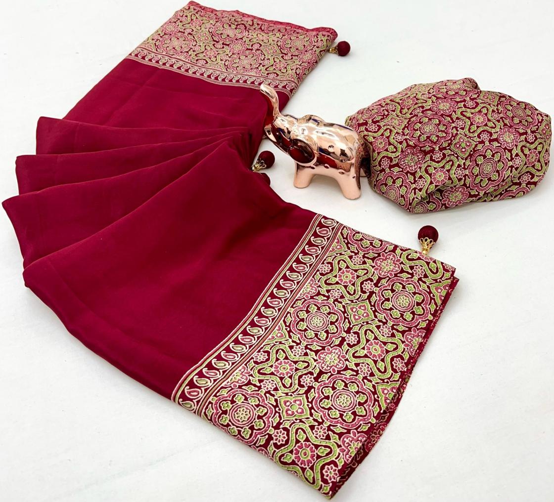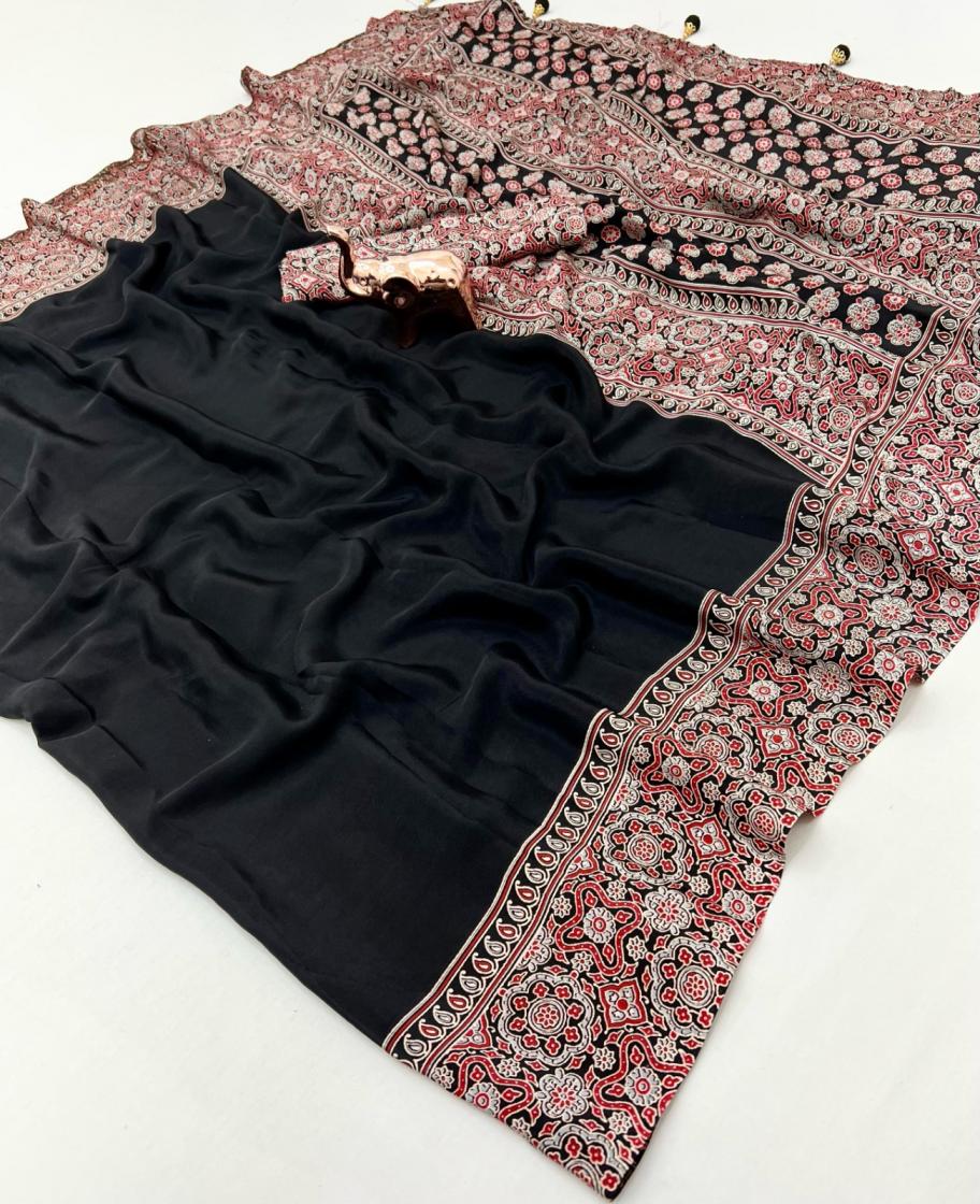 kc 8002 satin ajrak printed gorgeous look sarees online