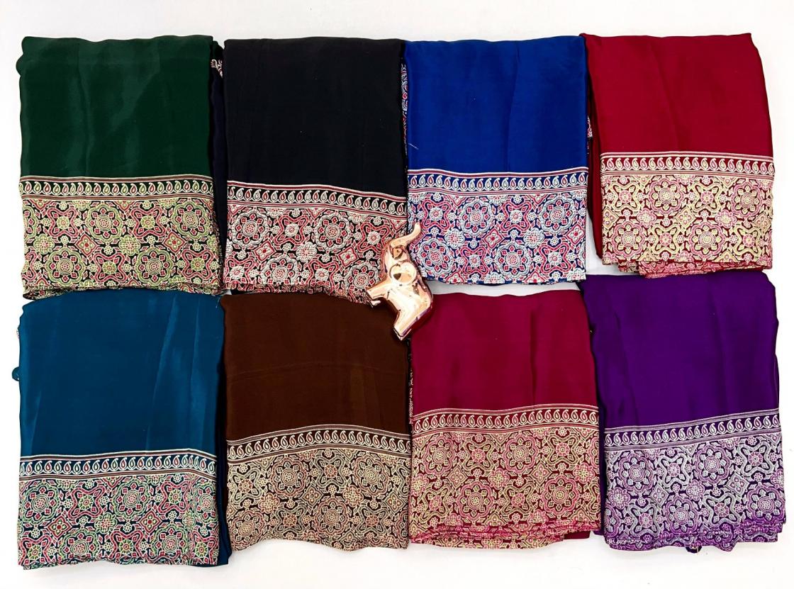 Launching Wonderful Catalogue 😍 KC-8002 Fabric - Pure Satin with Ajrak printed Sarees rich Pallu with heavy tussles Rate - 850/- Only We Always Trust in Quality |
