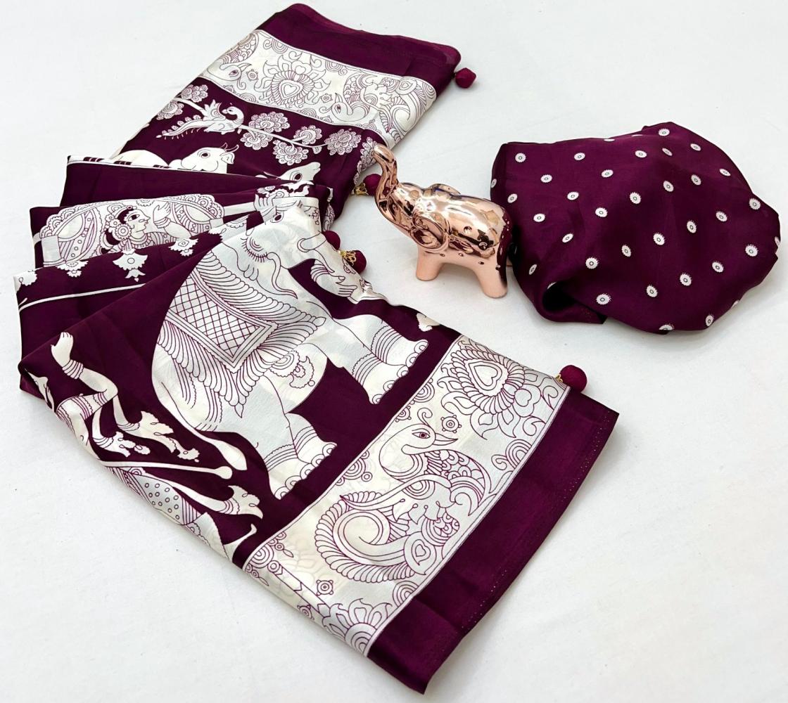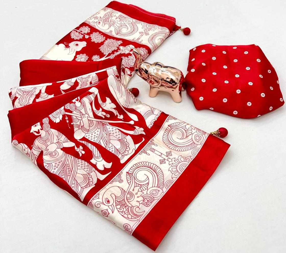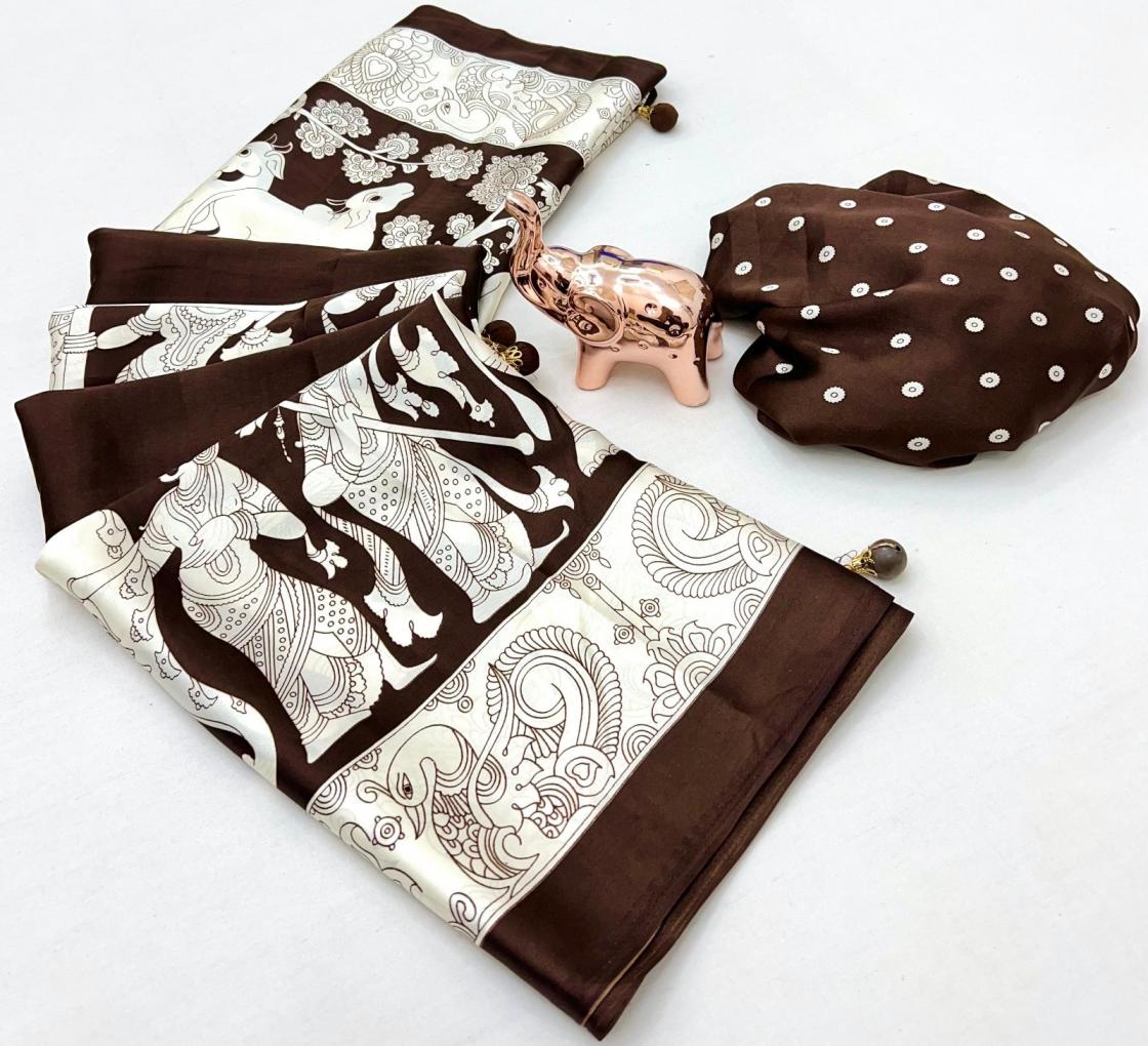 New Arrivals KC- 8003 Ajrak look saree with Kutchi ajarkh print Semi gaji original saree ajrakh Gajji bandhej Lagdi Gajji crepe Soft Silk saree Price :- 949/- We Always Trust in Quality |
