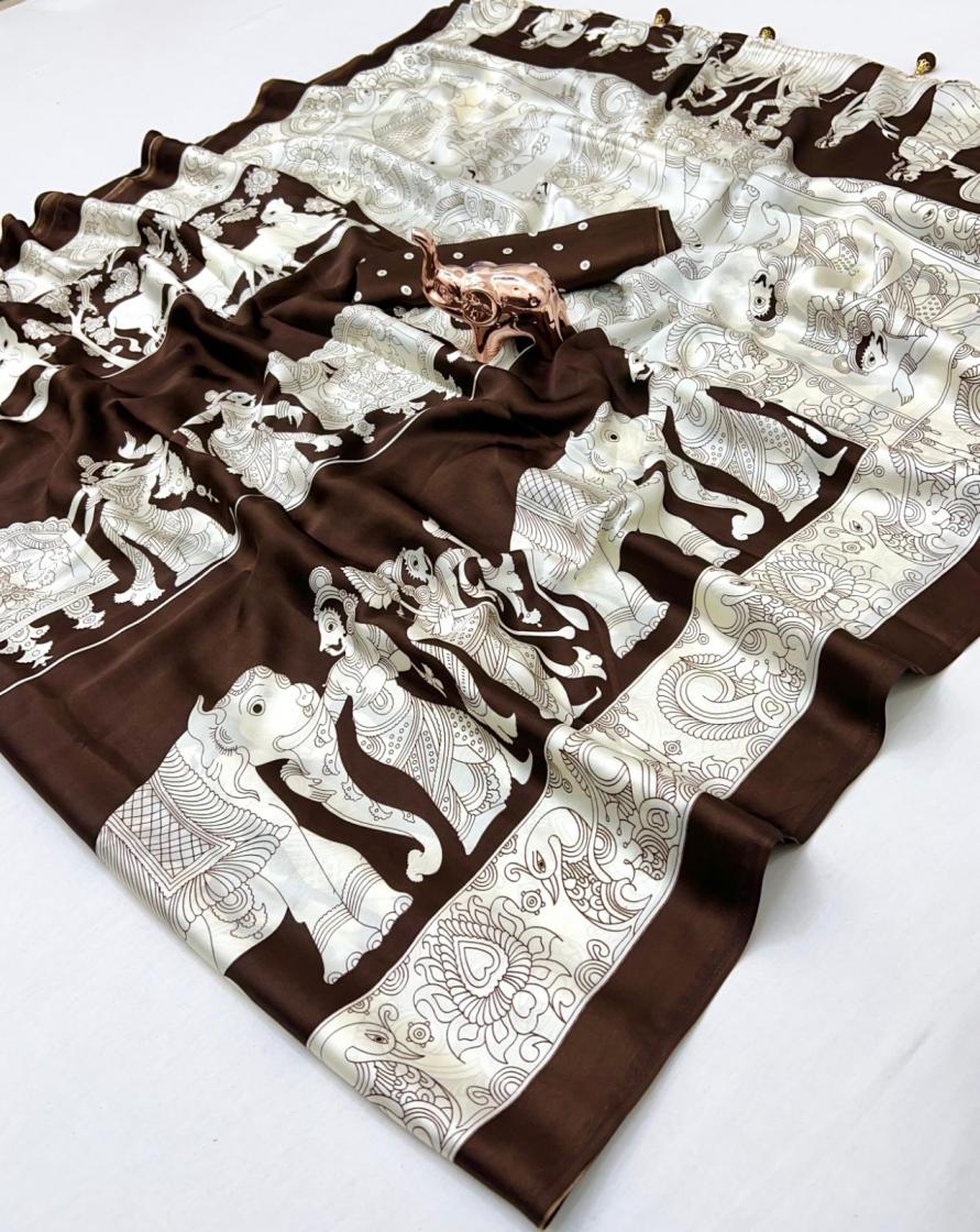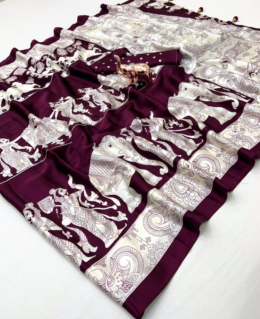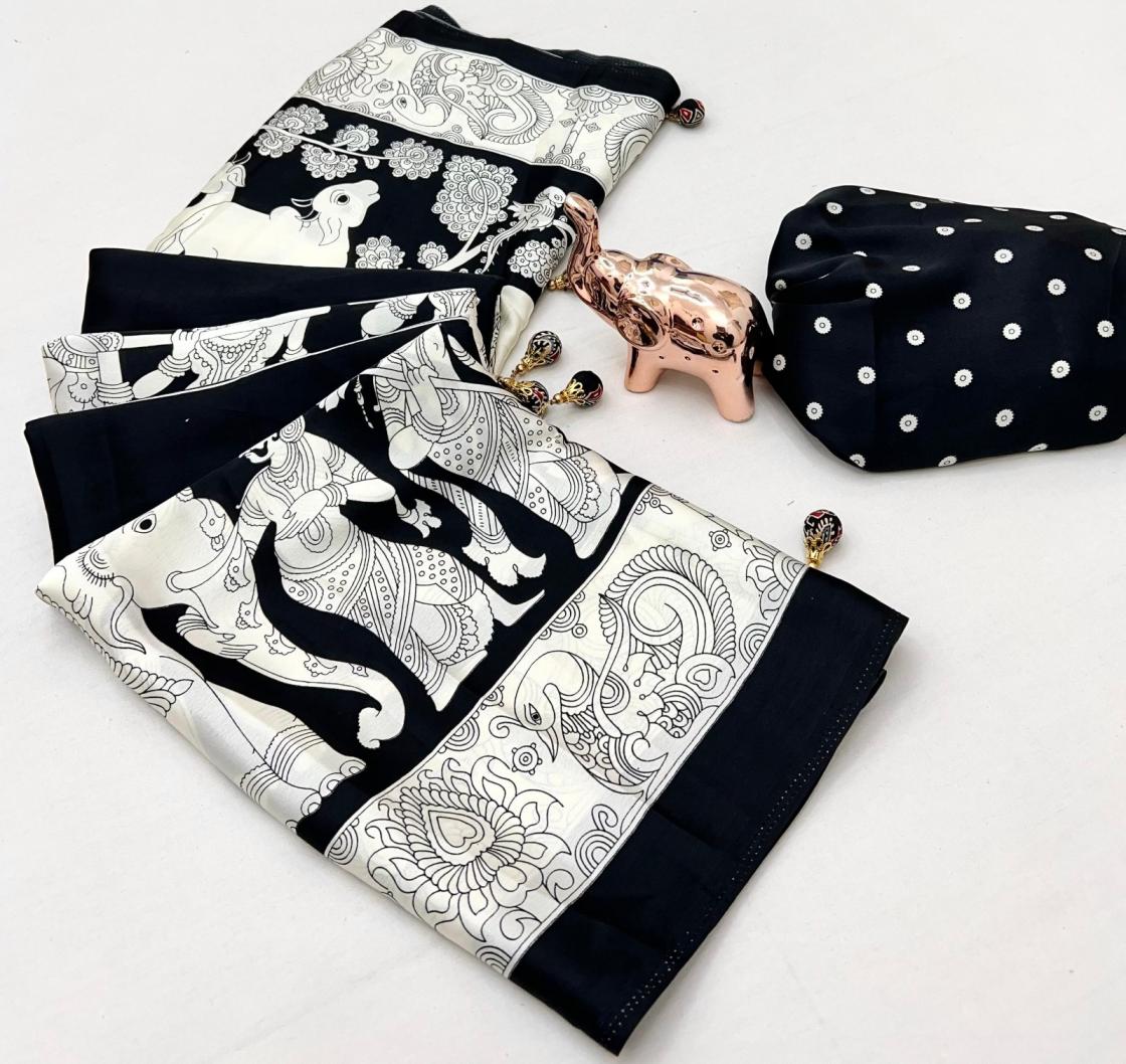 New Arrivals KC- 8003 Ajrak look saree with Kutchi ajarkh print Semi gaji original saree ajrakh Gajji bandhej Lagdi Gajji crepe Soft Silk saree Price :- 949/- We Always Trust in Quality |