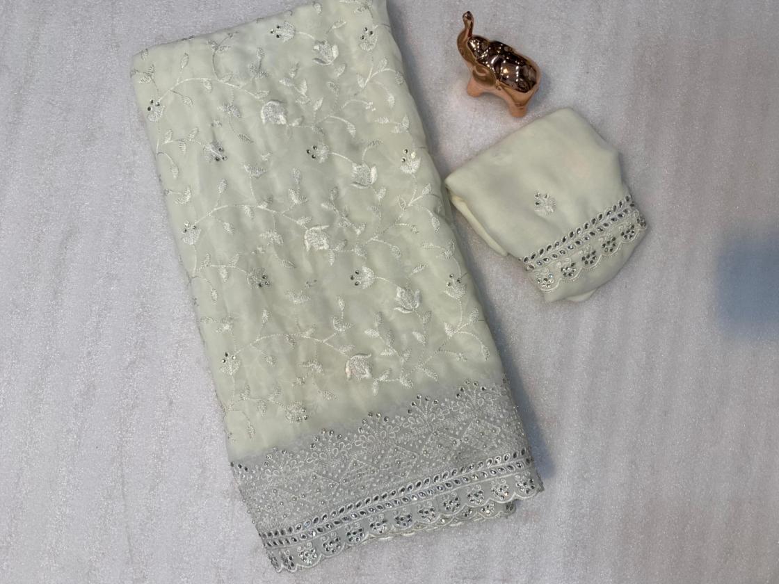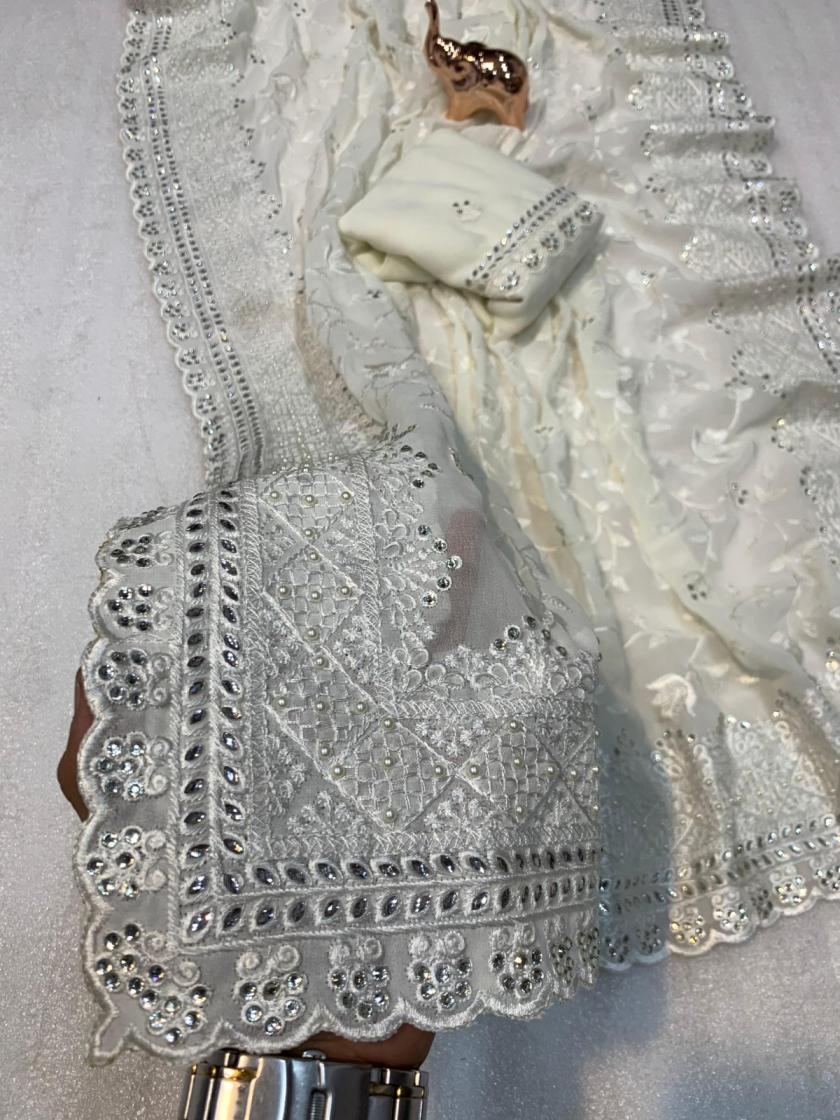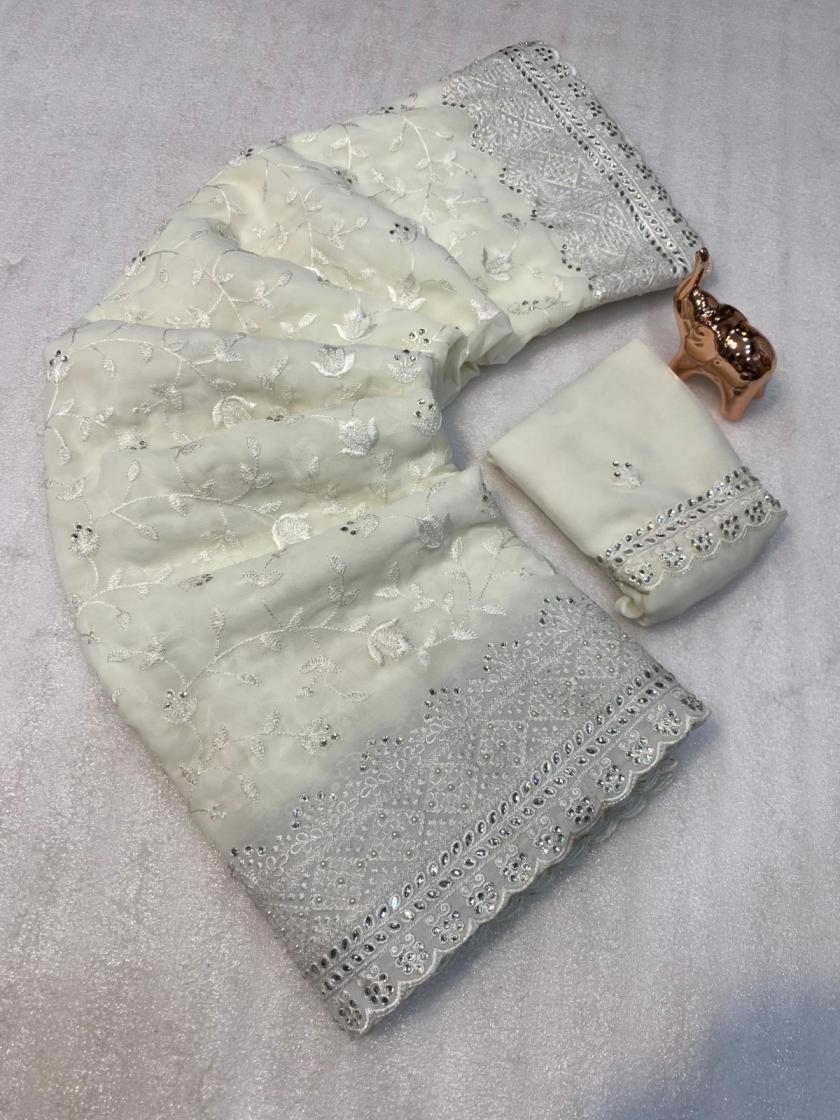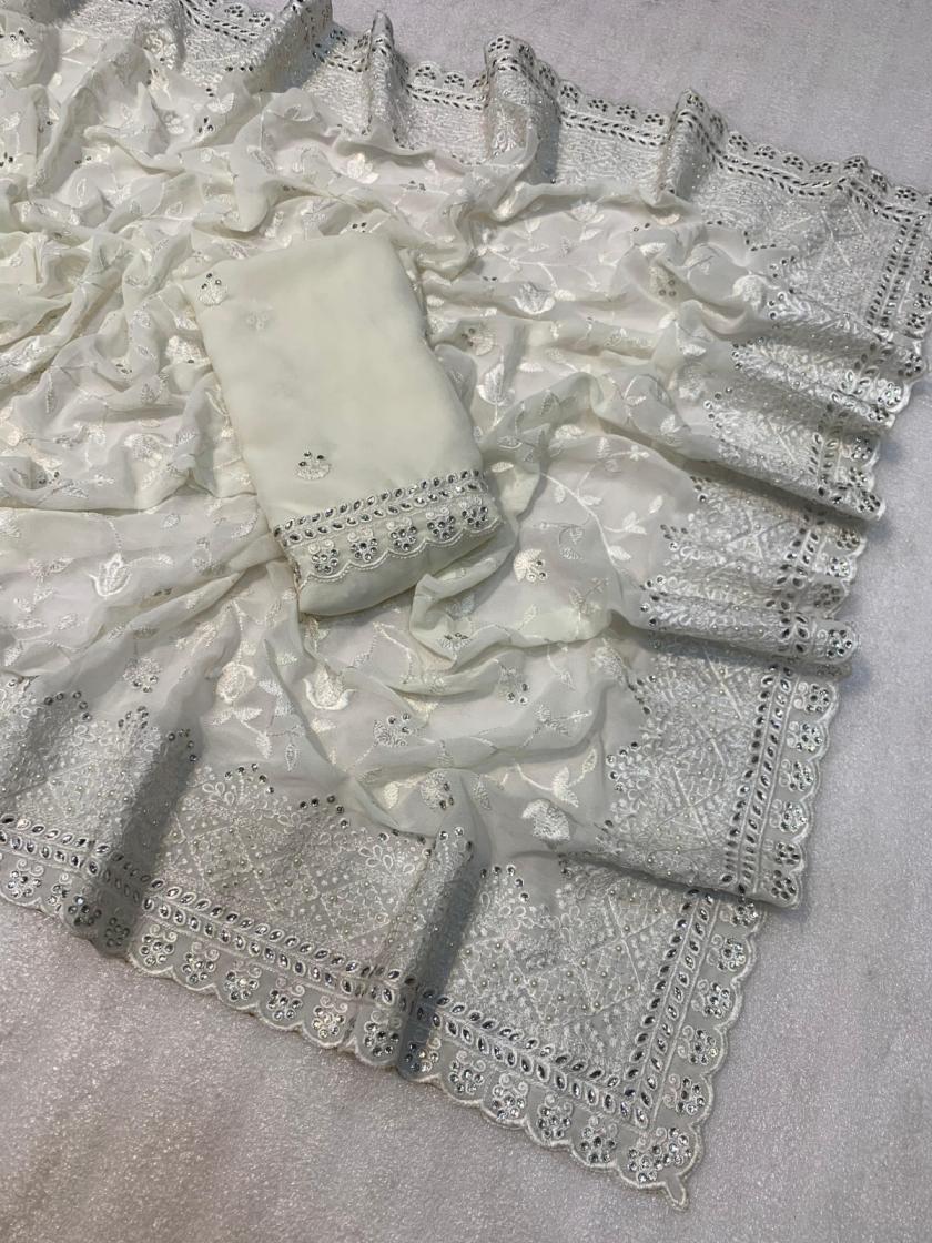 Presenting you most beautiful white chikankari lakhnavi embroidery saree primium collection KC-8010 👇 Fabric details 👇 SAREE FABRIC- Georgette SAREE LENGTH- 5.50 Mtr SAREE WORK- chikankari work and stone work BLOUSE FABRIC- Georgette embroidery and stone work RATE - 1549/- We Always Trust in Quality |