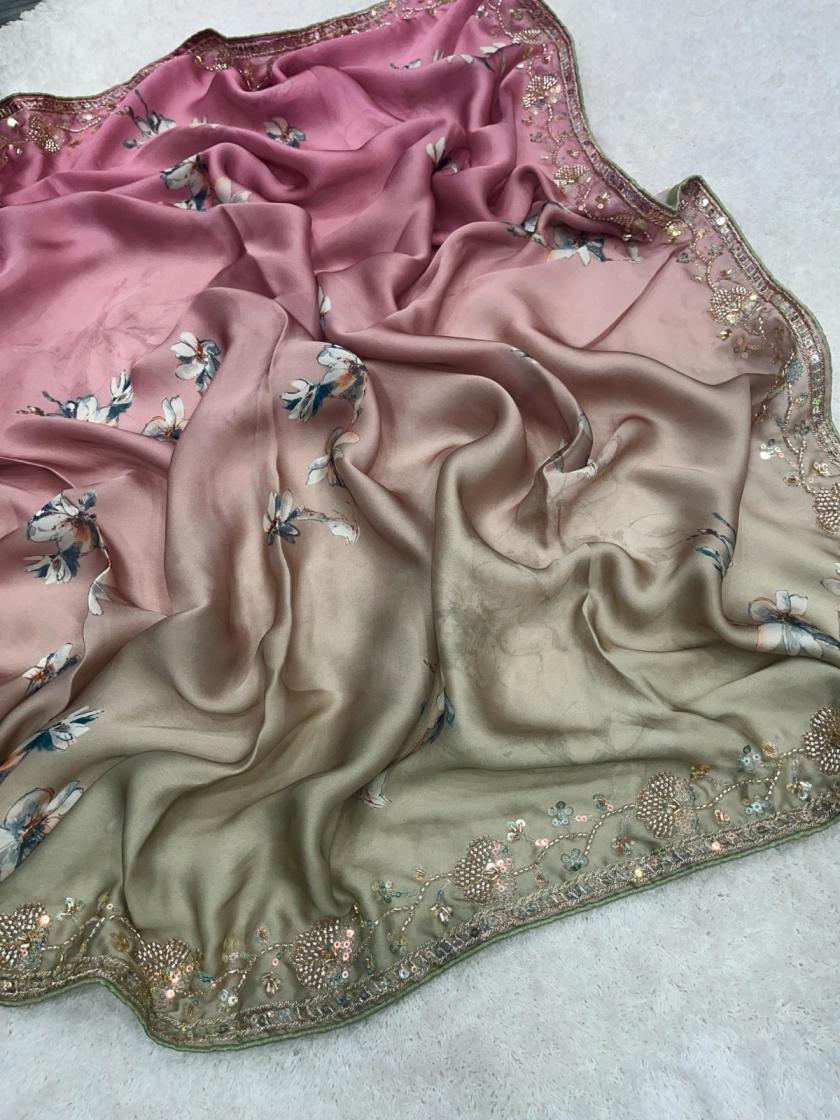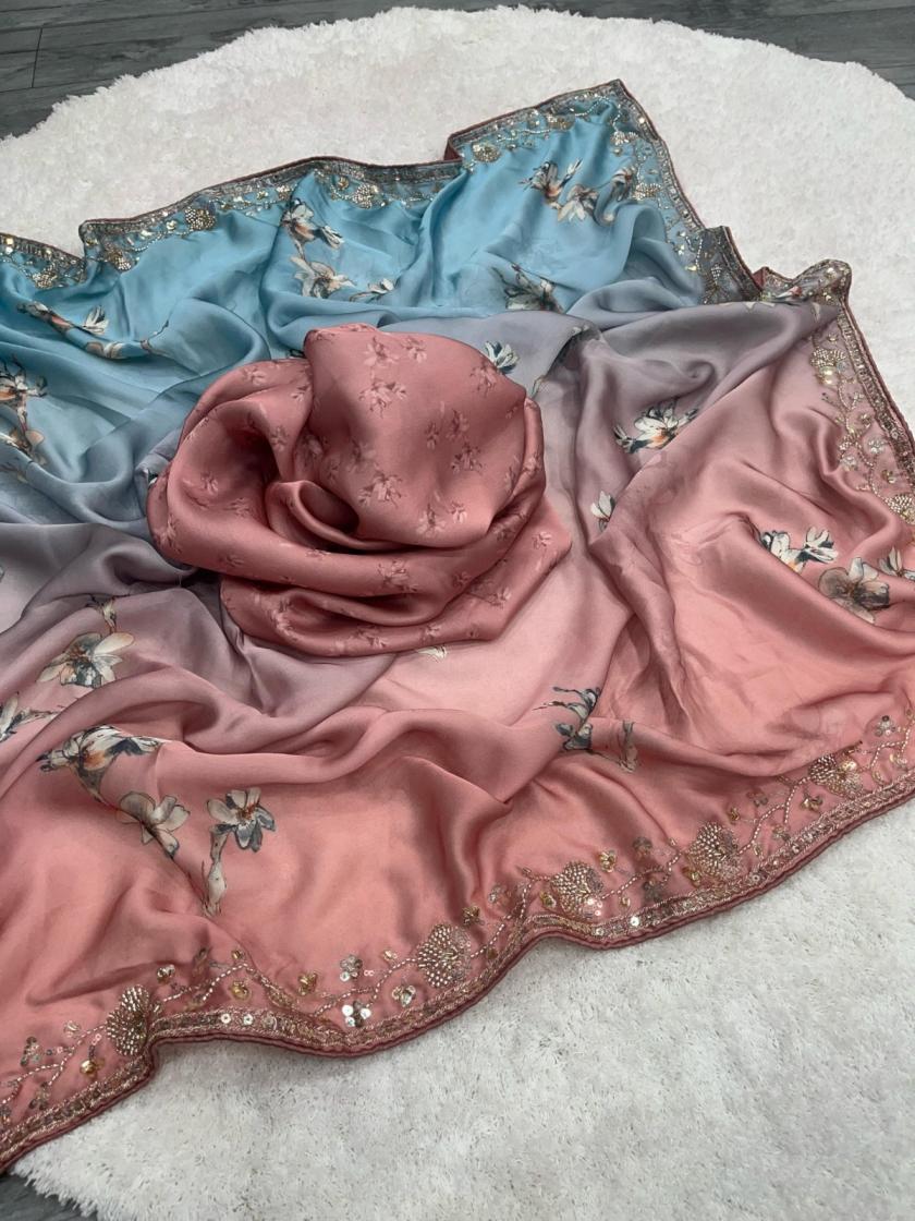 KC-819 🛑SAREE FABRIC- Satin georgette with digital print 🛑SAREE LENGTH- 5.50 Mtr 🛑SAREE WORK- Hand work 🛑BLOUSE FABRIC- Satin georgette RATE - 1650/-😍😍😍 |