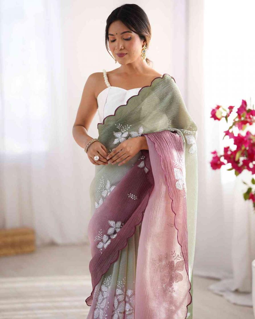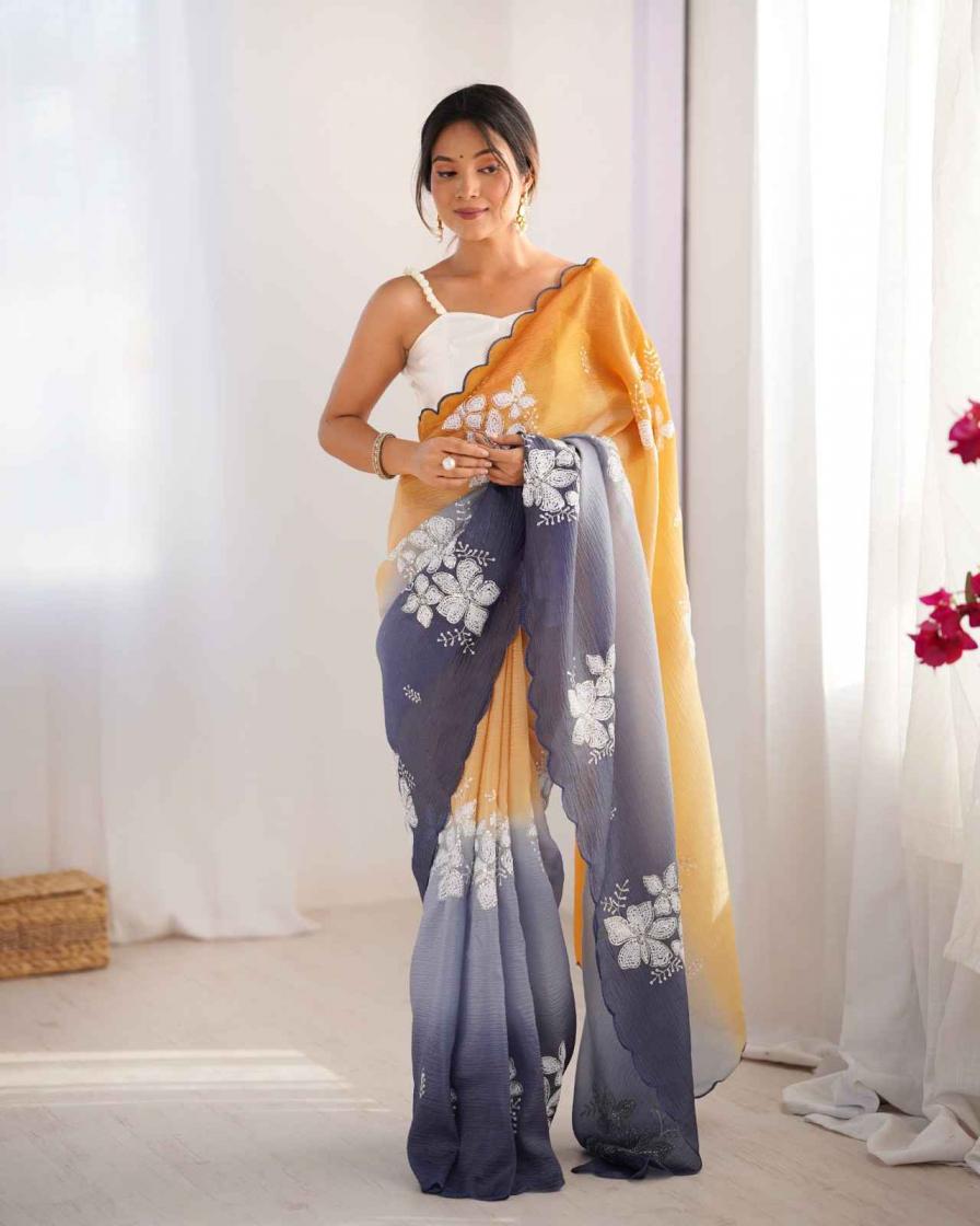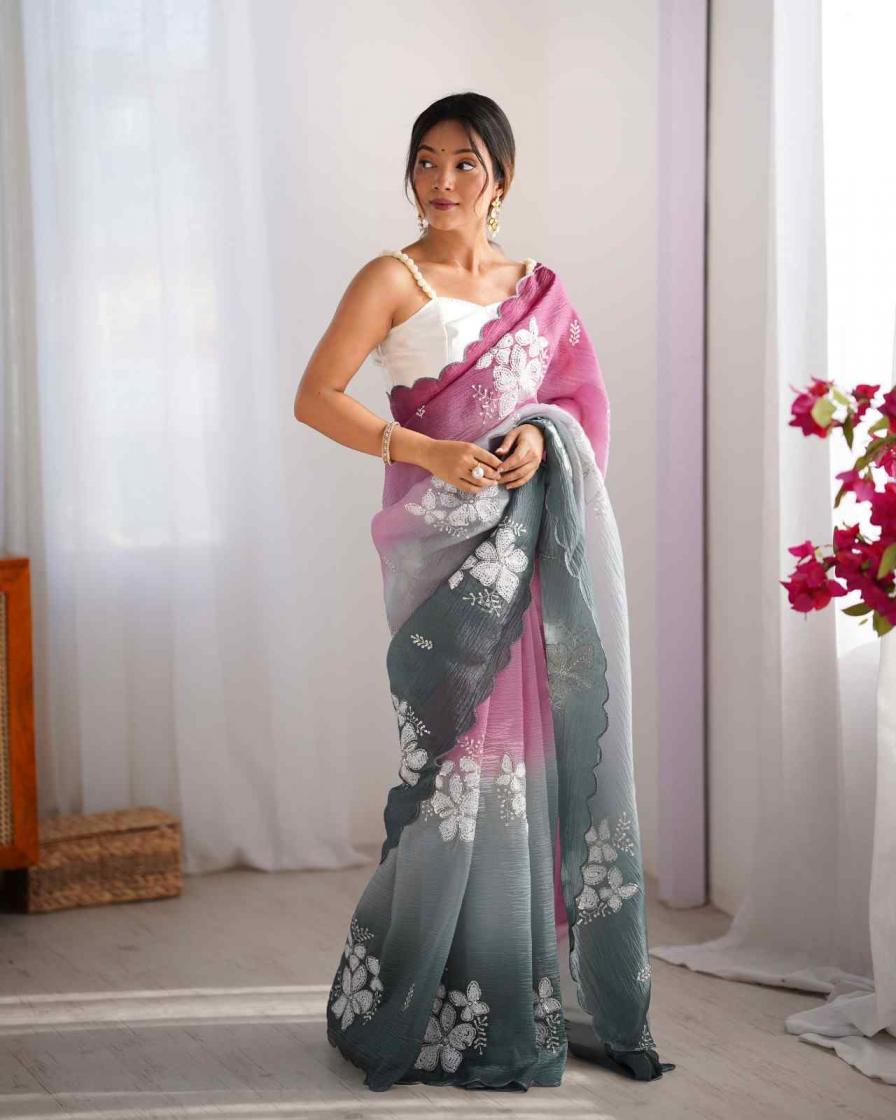 kc 870 gorgeous look crunchy crush dual sequins sarees