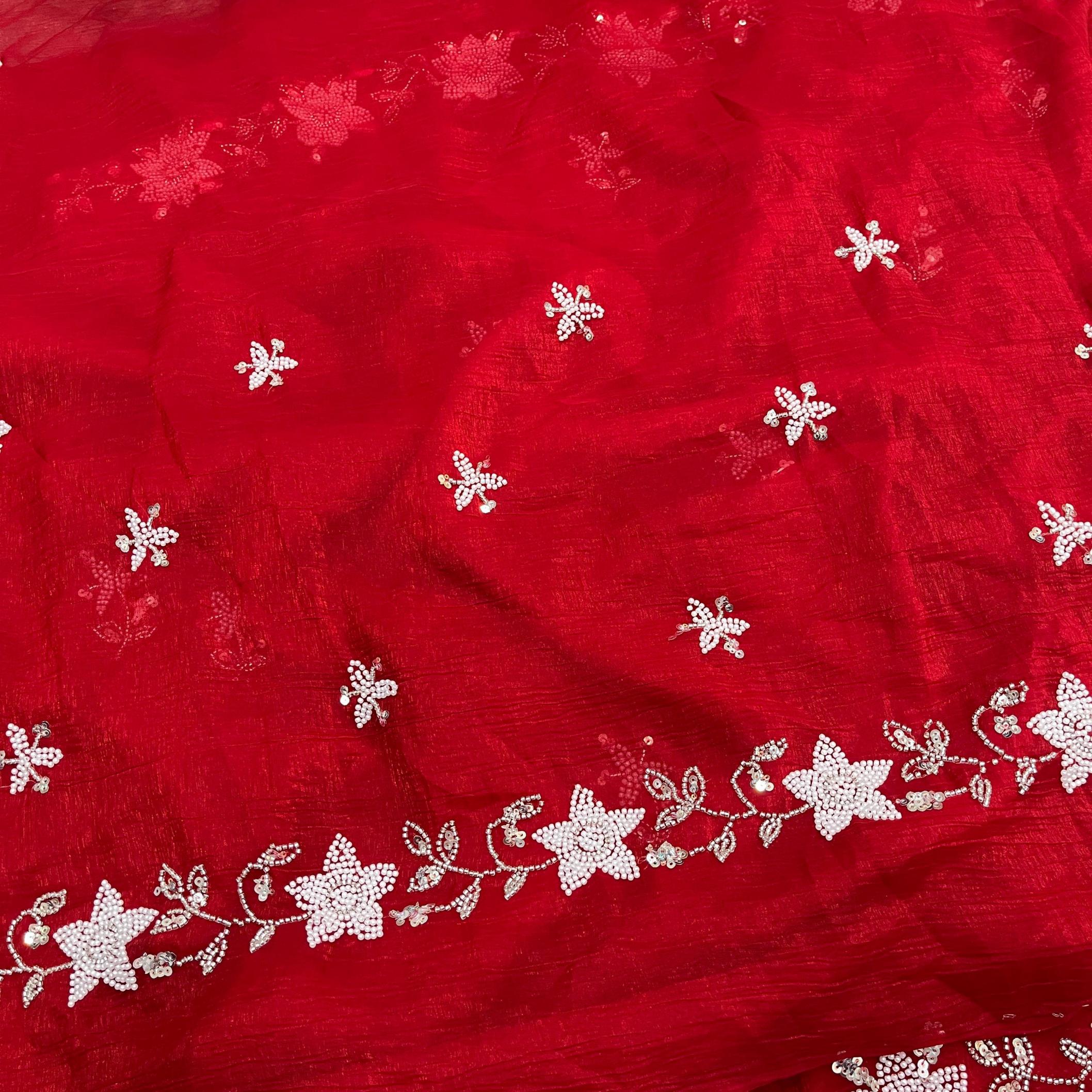 Presenting You Most Beautiful Sugar Beeds With Sequins Saree Collection😍😍😍 Wear a saree and make heads turn. KC-914 Fabric Details Blouse : Crunchy Crush With Moti And Sequins Work {1 Mtr}