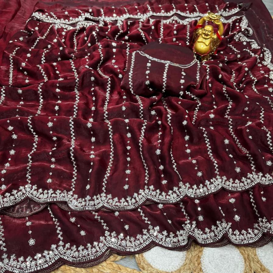 Presenting you the luxurious and glamorous trending hand work saree KC- 933 👇 Fabric details 👇 🛑SAREE FABRIC - Space silk 🛑BLOUSE FABRIC- Space silk with beeds work RATE - 2549/- |