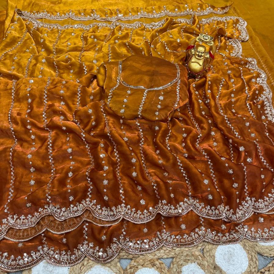 🤩Wait is over🤩 KC-933 padding Launch Grand party wear saree in original gold beeds work On pure space silk sarees in velvet shine adorned with sequence and cutdana delicate handwork 💞💞 Now just for🥳 2499/- |