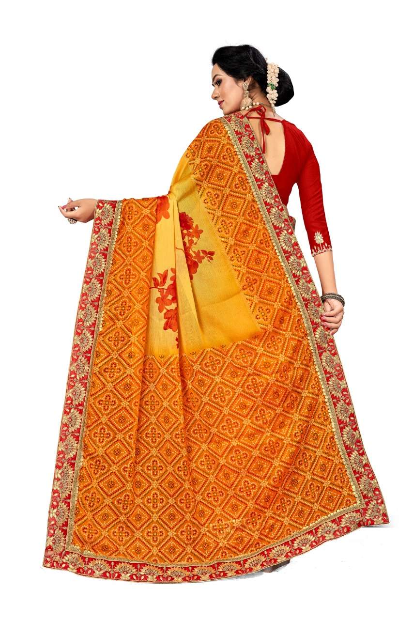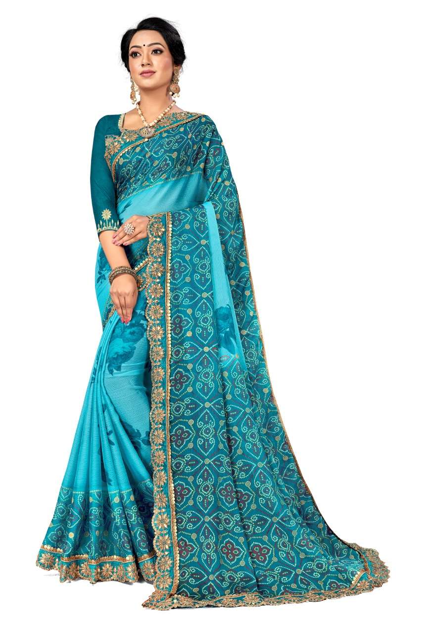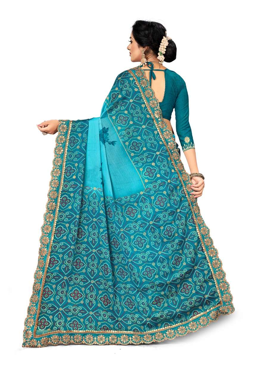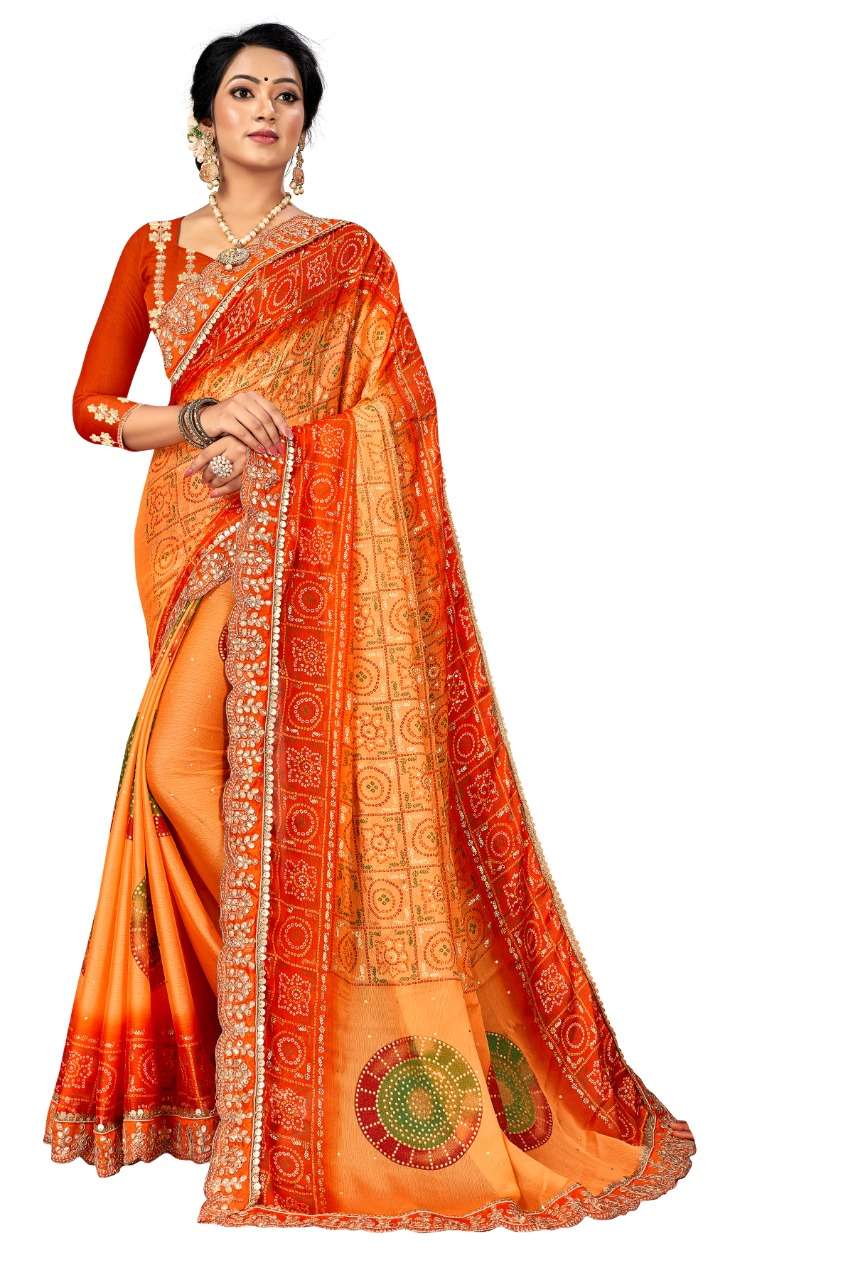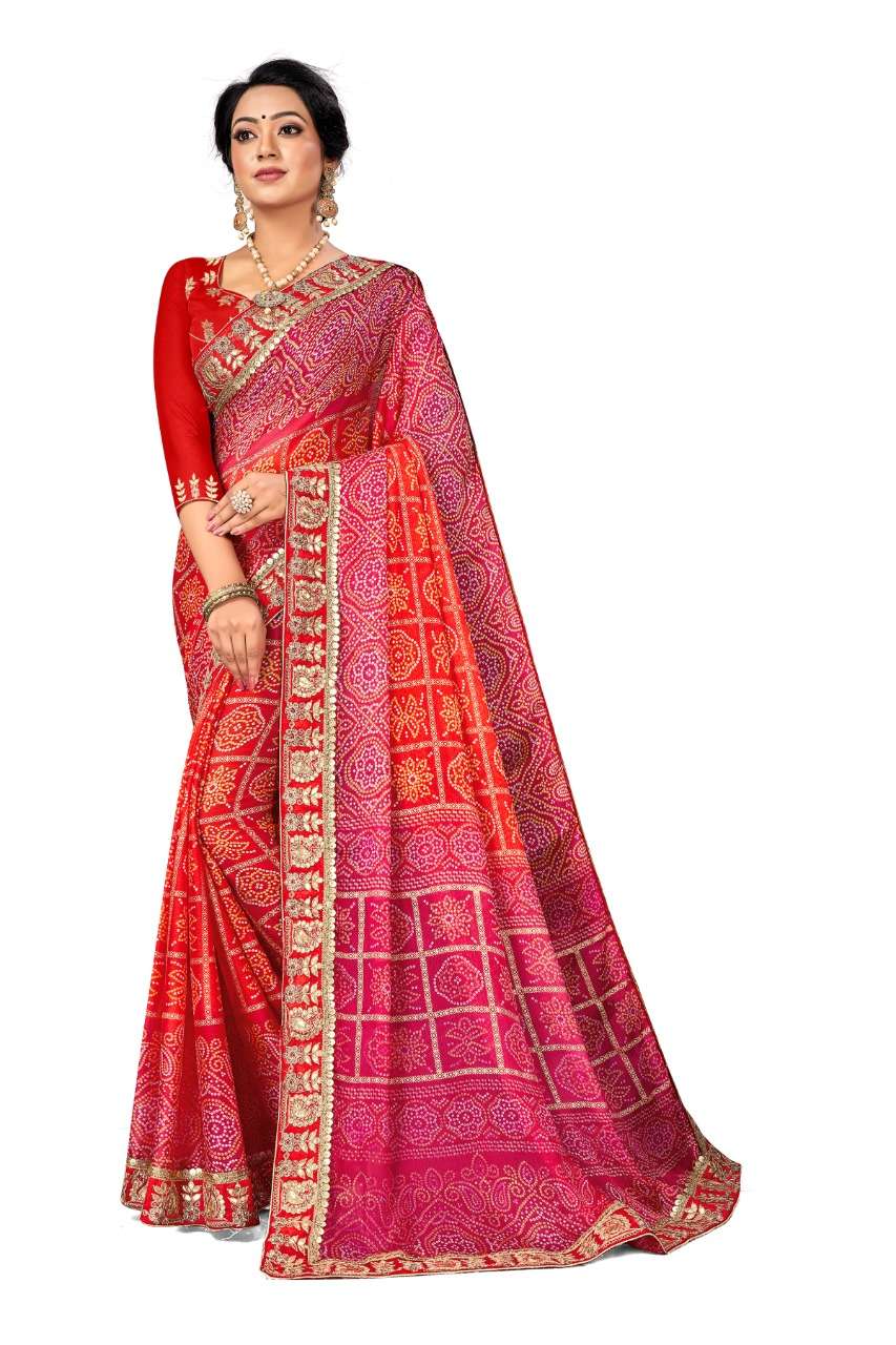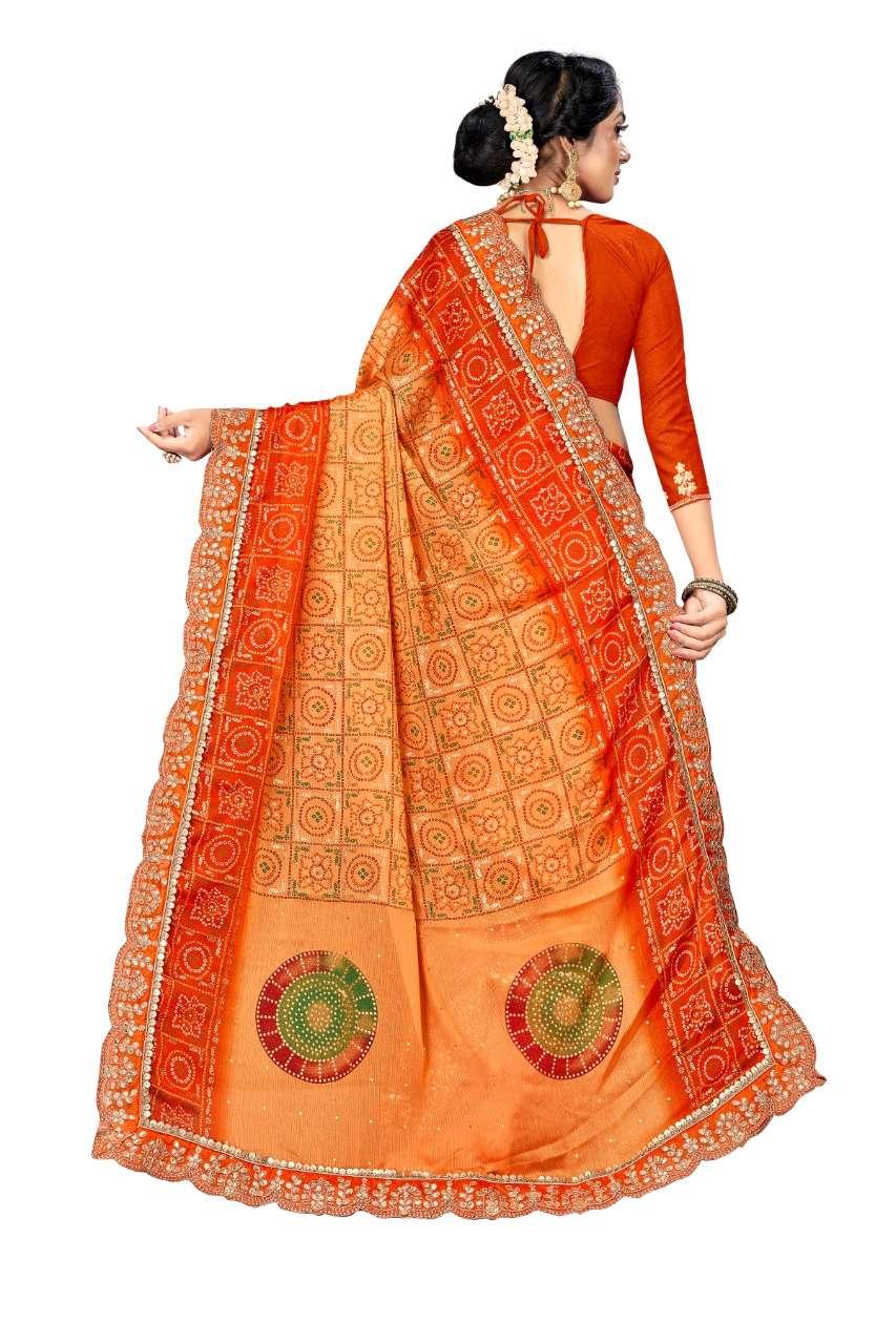 kc anamika moss chiffon fancy bandhani print sarees manufacturer