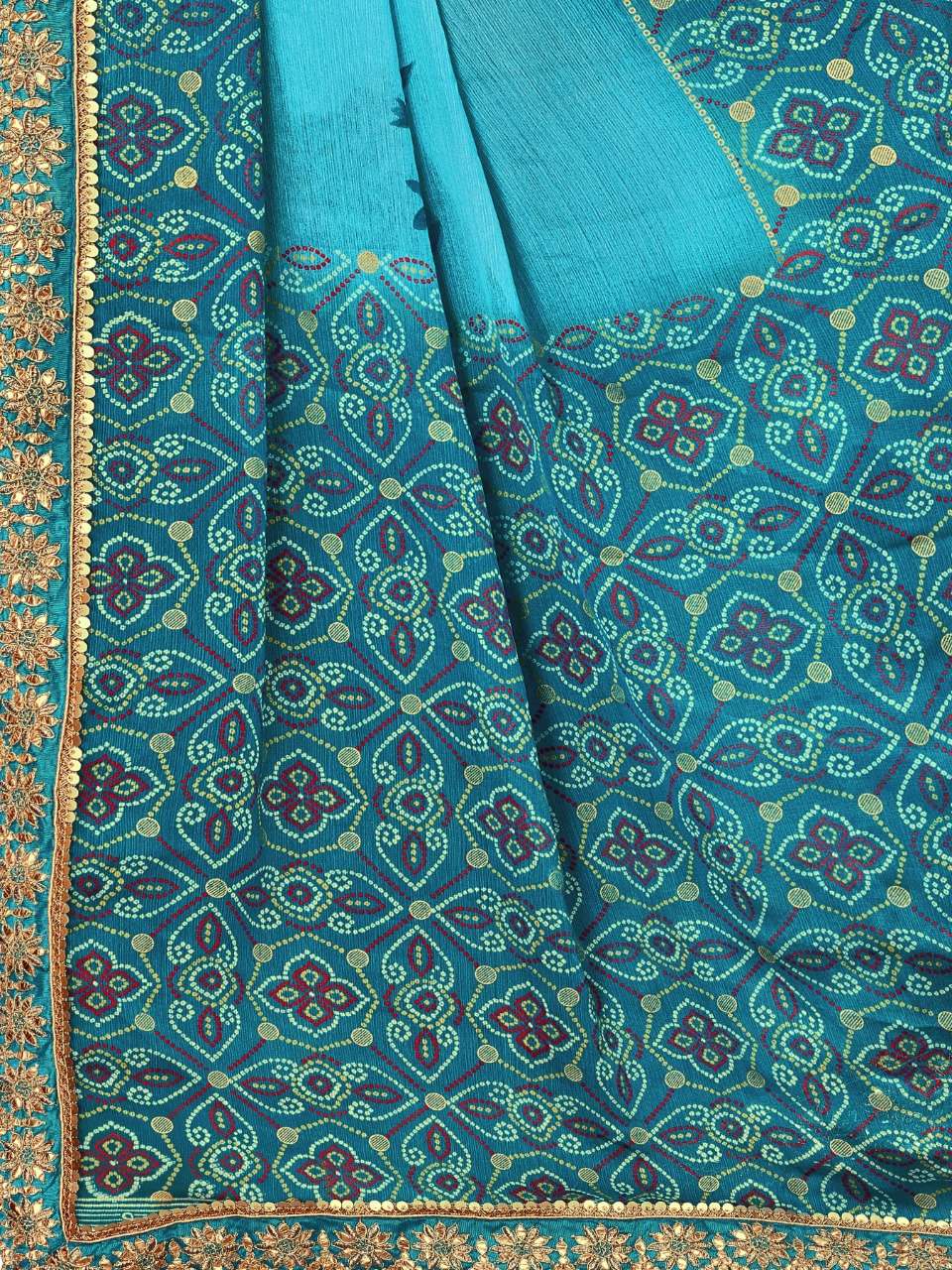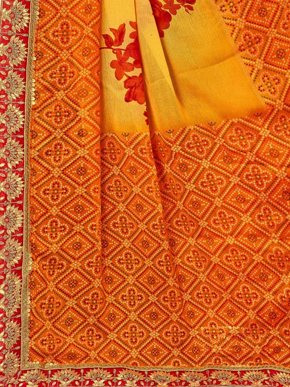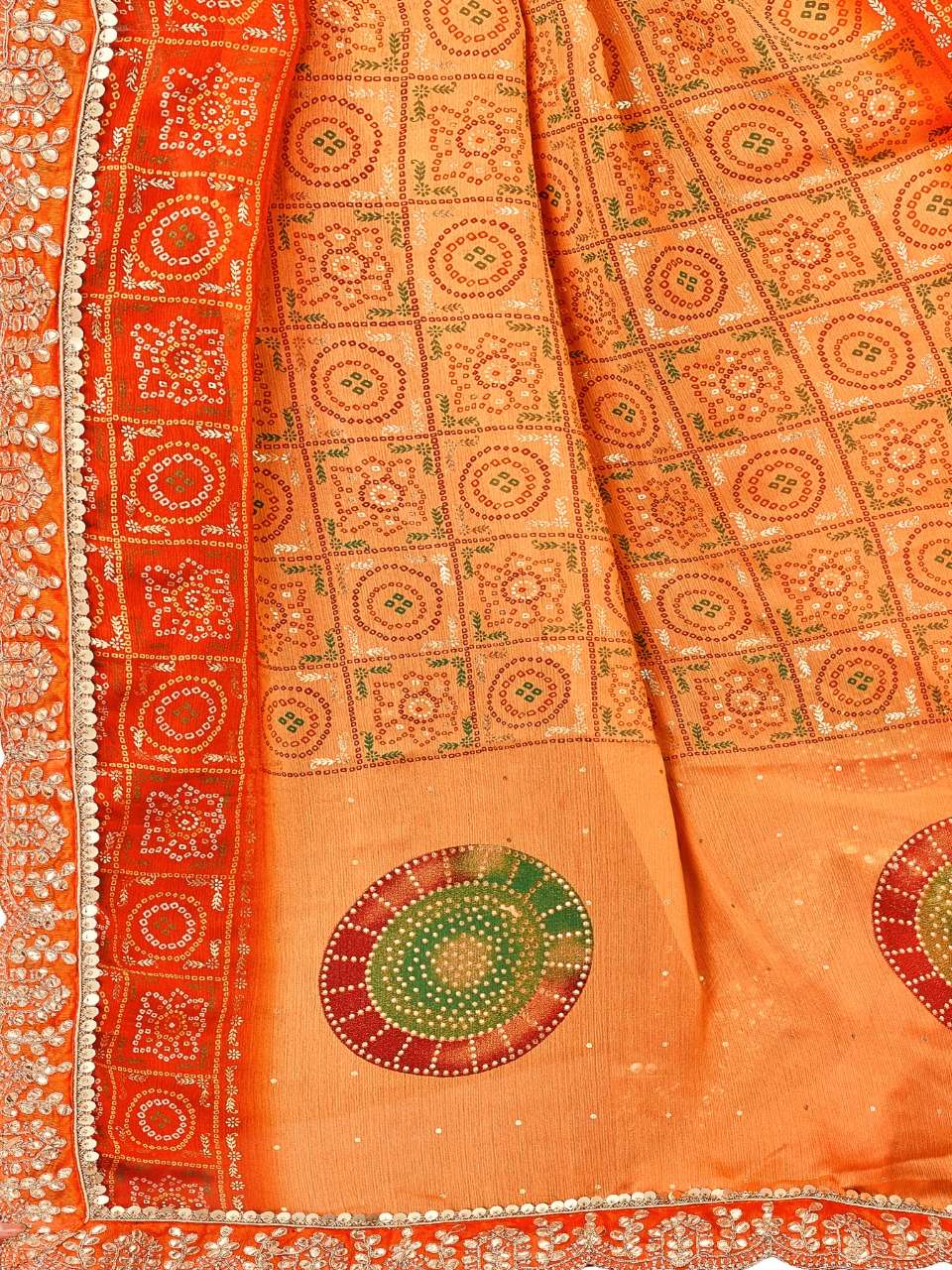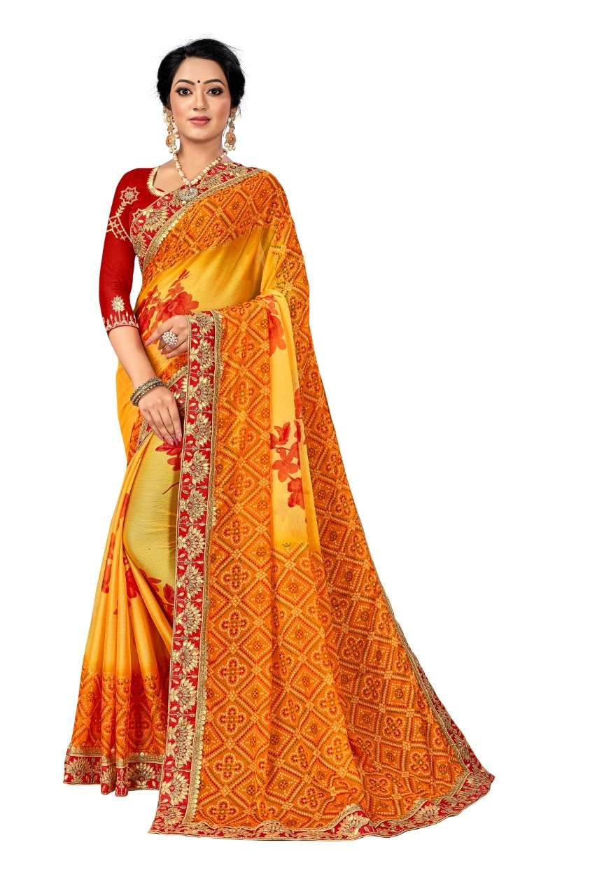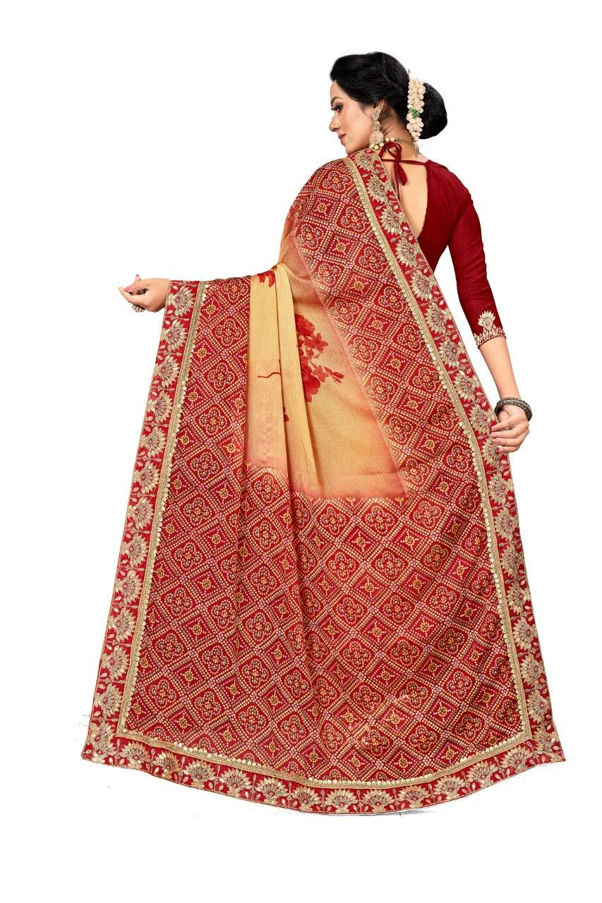 kc anamika moss chiffon fancy bandhani print sarees manufacturer